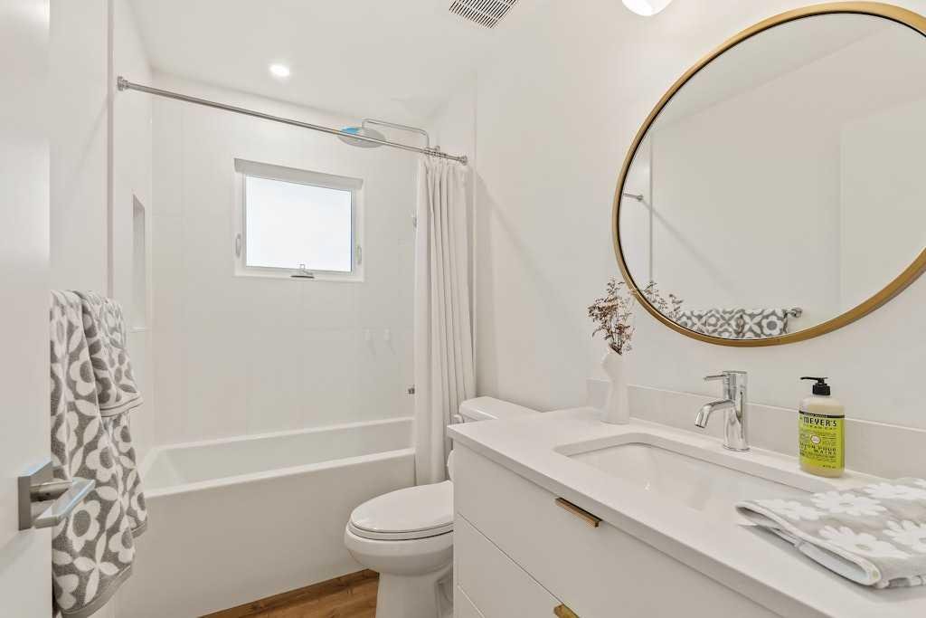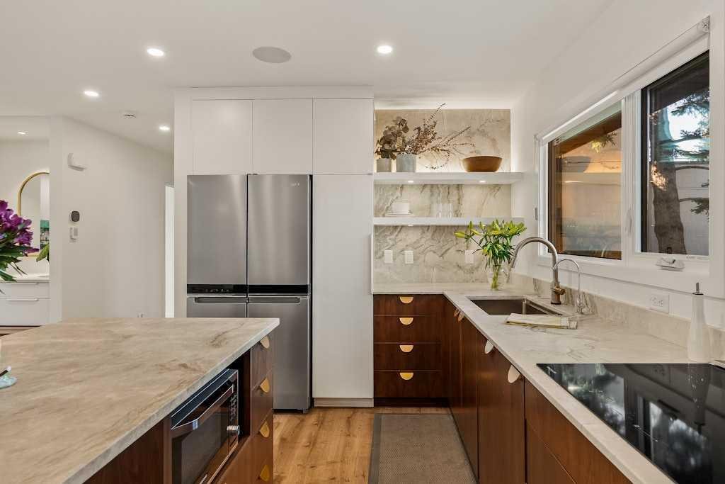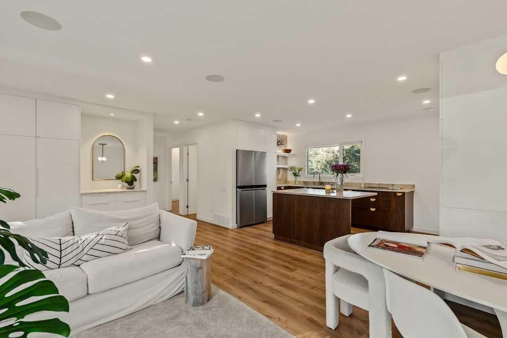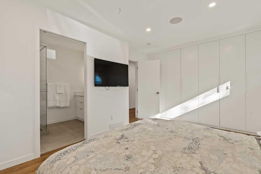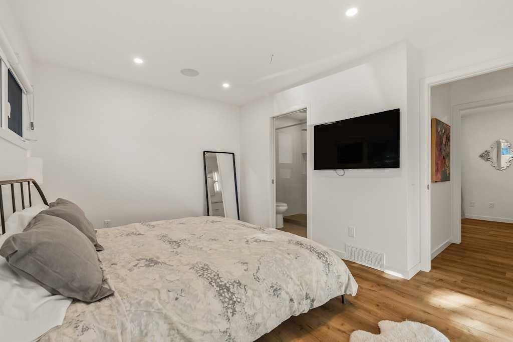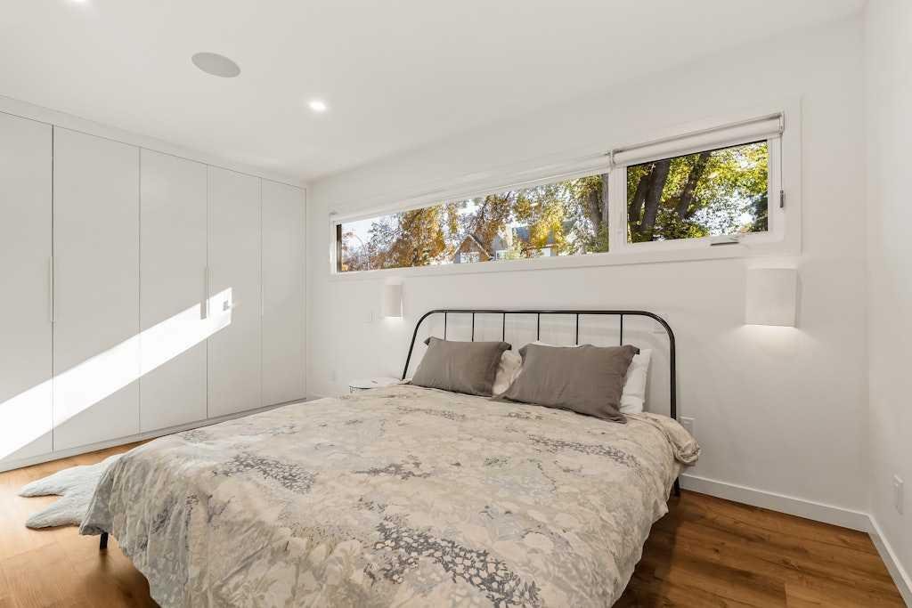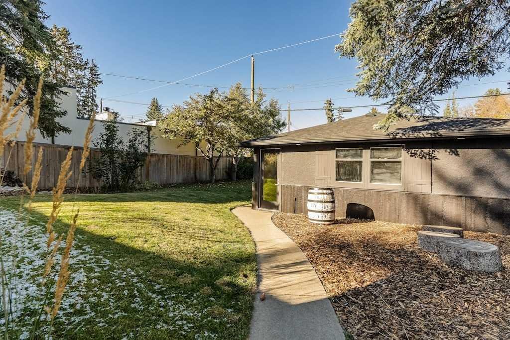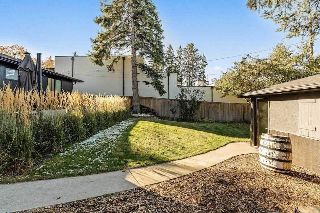 On one of North Glenmore’s most coveted, tree-lined streets, this fully reimagined bungalow pairs timeless design with modern innovation. Taken down to the studs and meticulously rebuilt in 2021, every element of this home reflects thoughtful craftsmanship and uncompromising quality. The striking, modern black façade commands attention, and is paired with premium landscaping and mature trees lines, setting the tone from the curb. Inside, an airy, oepn, wide-circulation floor plan expands the feel of its 1,000 sq. ft. main level, seamlessly connecting refined living spaces. Walnut cabinetry anchors the chef’s kitchen, complemented by Italian Renaissance Taj Mahal quartzite countertops, high-end fixtures, high end appliance package and reverse osmosis water filtration. A brick gas fireplace creates a warm ambiance in the living room, while integrated Sonos audio, and Lutron Caseta smart lighting speaks to the home’s elevated functionality. The primary suite is a private retreat, complete with spa-inspired ensuite featuring in-floor heating. The second bedroom is serviced by the stylish main bath. Downstairs, discover 2 additional bedrooms, and a full bath, as well as an expansive rec room, also warmed by a brick faced gas fireplace. Outside, the oversized, heated double garage is spray-foam insulated and offers a new roof providing unmatched utility. The expansive 50×120 ft lot is designed for both quiet enjoyment and entertaining, a sprawling patio, thoughtfully oriented for both sun and shade, invites al fresco dining. Whether morning coffee or evening gatherings, this space flows seamlessly from interior to garden. The ample yard, wired for a hot tub, is framed by mature trees and privacy fencing, giving the sense of a private urban oasis. Situated in North Glenmore Park, the property enjoys not just exclusivity, but access to one of Calgary’s most naturally immersive inner-city settings. The neighbourhood is bounded by Glenmore Athletic Park, the Earl Grey and Lakeview golf courses. Parks and recreation are woven into daily life, with North Glenmore Park only steps away, where you’ll find walking and cycling paths, tennis courts, playgrounds, picnic sites, and fire pits—plus skating trails and cross-country opportunities in winter. The park also houses the Calgary Canoe Club and Calgary Rowing Club along the reservoir’s edge, anchoring a vibrant outdoor community. The community association in North Glenmore is one of Calgary’s most active, hosting dance, yoga, and community events. You’re also walking distance from schools, shopping, transit, and Mount Royal University.