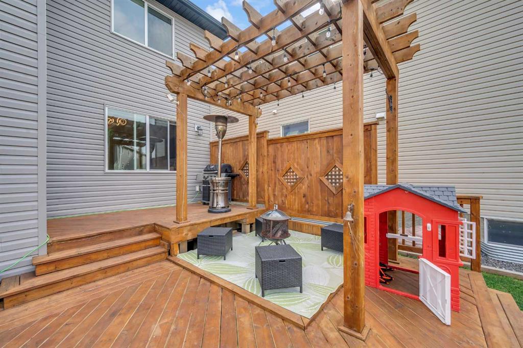 THIS ONE OFFERS MUCH MORE THAN COMPARABLE LISTINGS, BEST VALUE FOR YOUR MONEY! – Welcome to your next detached home in Skyview, TUCKED AWAY IN A QUIET CUL-DE-SAC, VERY WELL MAINTAINED by current owners and now ready for the next chapter. 2246.57 Sq. Ft. | 2 Bedroom Rented Basement Suite (Illegal Suite) | SPACIOUS 4,886.82 SQ. FT. LOT | OVERSIZED EXPOSED AGGREGATE DRIVEWAY | Ceramic Tiled Main Floor | Built-In Kitchen Appliances | Stone Fireplace Wall | Front Bonus Room | Full Width Balcony | Professionally Landscaped Backyard and much more. Inside, the main floor offers an open-concept layout with a WELCOMING FOYER and a thoughtful layout of living, kitchen and dining area. The living room features a COZY GAS FIREPLACE SET ON A FULL STONE FEATURE WALL, and a MODERN KITCHEN WITH QUARTZ COUNTERTOPS, BUILT-IN APPLIANCES, ELECTRIC COOKTOP ON ISLAND WITH STYLISH HOOD FAN, WALK-THROUGH PANTRY, AND UNDER-CABINET LIGHTING. Elegant details such as METAL SPINDLE RAILING and CONTEMPORARY LIGHT FIXTURES elevate the entire space. Upstairs you’ll find three spacious bedrooms, two bathrooms, A FRONT-FACING BONUS ROOM WITH BALCONY ACCESS, and a convenient upper-level laundry room. The primary ensuite is a retreat of its own with a SOAKER TUB, DUAL VANITIES, WALK-IN CLOSET, MAKE UP COUNTER WITH ADDITIONAL DRAWERS AND AN UPGRADED 2 SIDED GLASS STANDING SHOWER. The bright basement offers an excellent income potential or space for extended family, as it has been professionally developed to a 2 BEDROOM SUITE (Illegal Suite), featuring its own separate laundry, bathroom with upgraded standing shower and kitchen with cabinets to the ceiling. The PROFESSIONALLY LANDSCAPED BACKYARD is a true outdoor oasis, featuring a PERGOLA, TWO-TIER DECK, BUILT-IN POND, UNDERGROUND WATER SPRINKLERS, PERENNIALS, BBQ GAS LINE, AND HOT TUB PLUG-IN READY CONCRETE PAD for year-round enjoyment. ADDITIONAL FEATURES include a Central Vacuum System, Water Softener, Security Cameras with 360 view & Smart Doorbell, Smart Thermostat, Kitchen Insinkerator, Garage Gas Line, and a Motion Sensor Light. With nearby Prairie Sky School, Nelson Mandela High School, shopping across Country Hills Blvd, and quick access to Metis & Stoney Trail, this location offers unmatched convenience. Don’t miss this amazing opportunity, check the 3D tour and book your showing today.