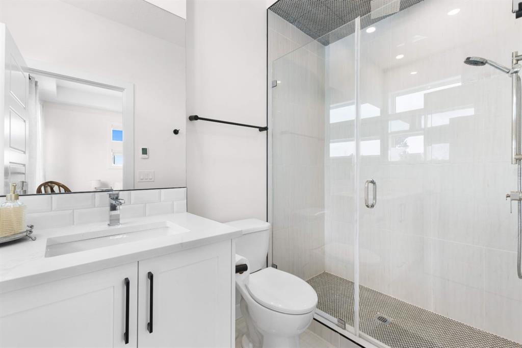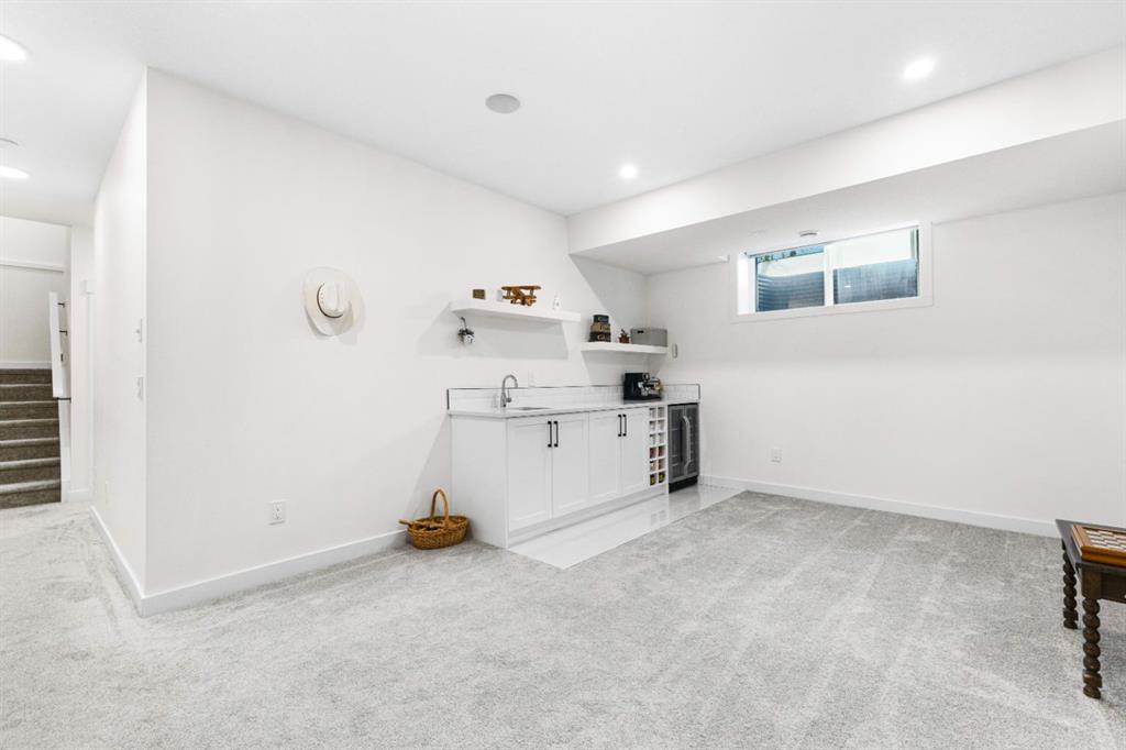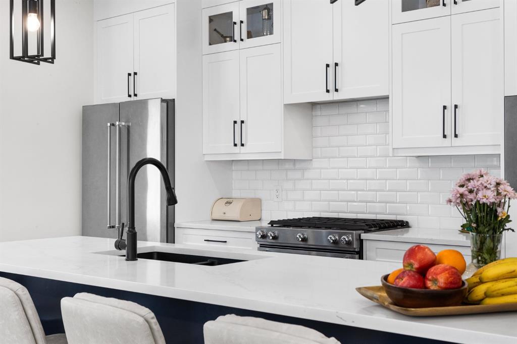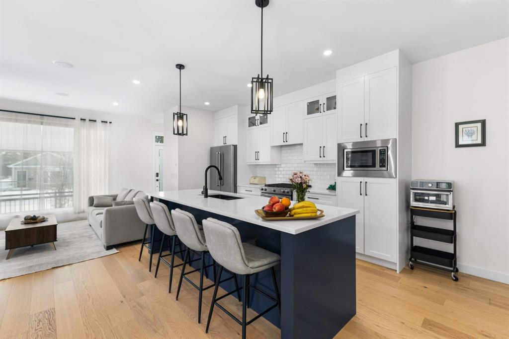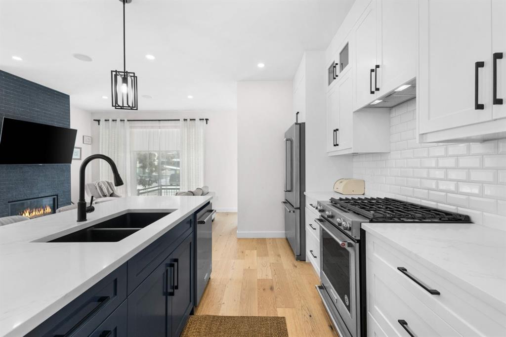 OPEN HOUSE SATURDAY, JANUARY 10TH FROM 1-4 PM. An absolutely pristine 3+1 bedroom corner unit townhome in the established community of Killarney offering over 1500 sq ft of developed living space. The bright & airy main level presents wide-plank hardwood floors & plenty of natural light, showcasing the living room anchored by a floor to ceiling fireplace, spacious dining area & kitchen that’s tastefully finished with quartz counter tops, Subway tile backsplash, crisp white cabinetry, island/eating bar & stainless steel appliances. A 2 piece powder room & mudroom with separate entrance complete the main level. The second level hosts 3 good-sized bedrooms, a 4 piece bath & convenient laundry facilities. The spacious primary retreat boasts a walk-in closet & private 4 piece ensuite with dual sinks & oversized shower. Basement development includes a family/media room with wet bar – perfect for game or movie night. A fourth bedroom & 4 piece bath are the finishing touches to the basement. Other notable features include central air conditioning, built-in speakers throughout, front gated patio & a single detached garage. This upscale townhome is conveniently located across from Killarney/Glengarry Community Centre & close to schools, shopping, public transit, Shaganappi Point Golf Course. There’s also effortless access to Richmond Road & Crowchild Trail.