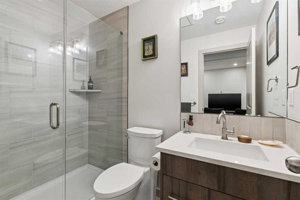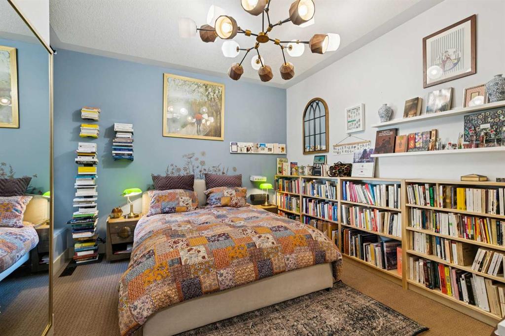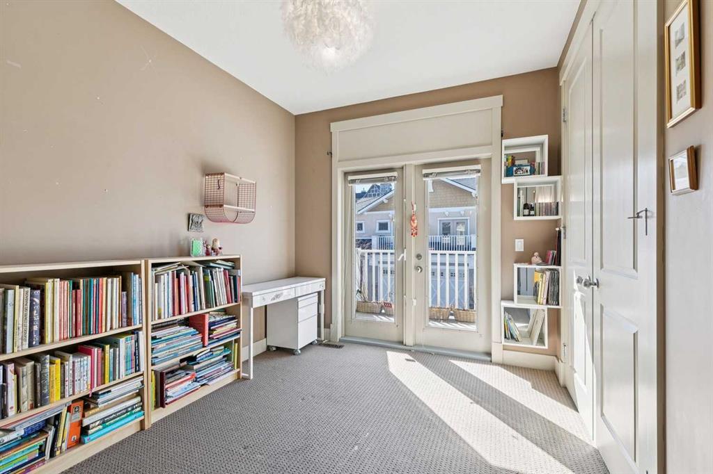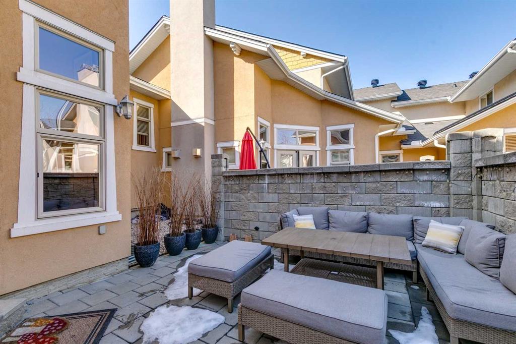 This well-located townhouse offers exceptional value and is perfectly suited to a couple and a family wanting a walkable location close to schools, parks and everyday essentials. Perfectly positioned just steps from Flanders Park and the playground, with Master’s Academy, Lycée International School and Dr. Oakley School conveniently close by. Spend weekends strolling to nearby Marda Loop for coffee, restaurants, boutique shopping and groceries, then return home to a quiet courtyard setting designed for relaxed outdoor living. Inside, the main floor welcomes you with an airy open-concept layout featuring hardwood floors, vaulted ceilings and a cozy fireplace that anchors the living and dining areas. The efficient kitchen offers abundant cabinetry and stainless steel appliances. French doors open directly to the private courtyard, creating an indoor-outdoor flow ideal for morning coffee or evening entertaining. The main-floor primary bedroom provides comfort and convenience with a spacious five-piece ensuite. Upstairs, a bright, open loft overlooks the living room. On this floor you’ll find a private second bedroom with its own bathroom and balcony as well as a large open flexible space, perfect for a home office or den, and a separate section that could easily be converted into an extra bedroom. The basement was updated in 2025 and expands your living spaces even further with a large family room and a media area divided by a double-sided fireplace, complete with built-in shelving. Air conditioning ensures summer comfort, while the double attached garage adds everyday ease. With thoughtful updates, versatile living spaces and an unbeatable location, this townhouse delivers low-maintenance living without compromising on comfort, convenience or style.