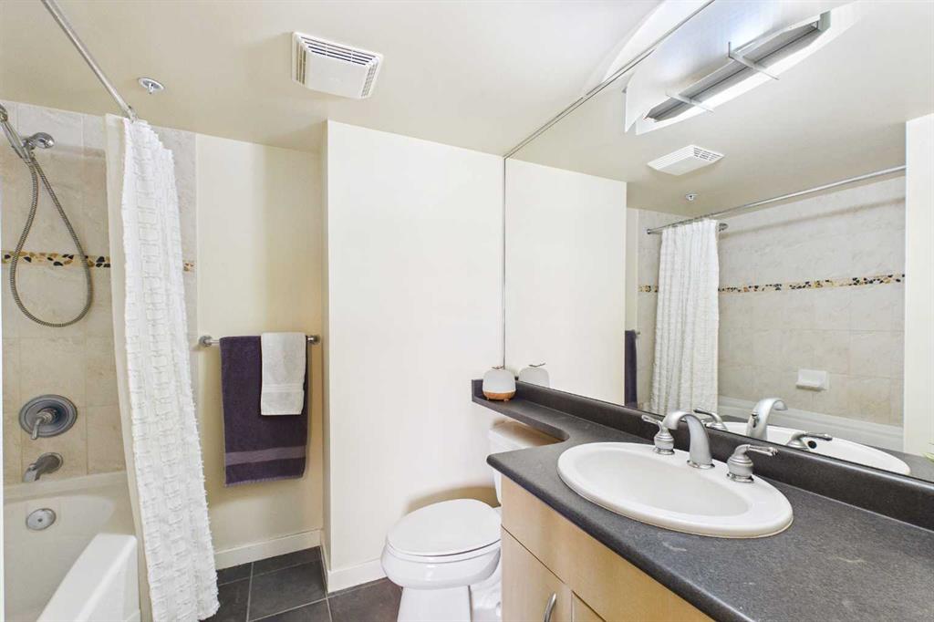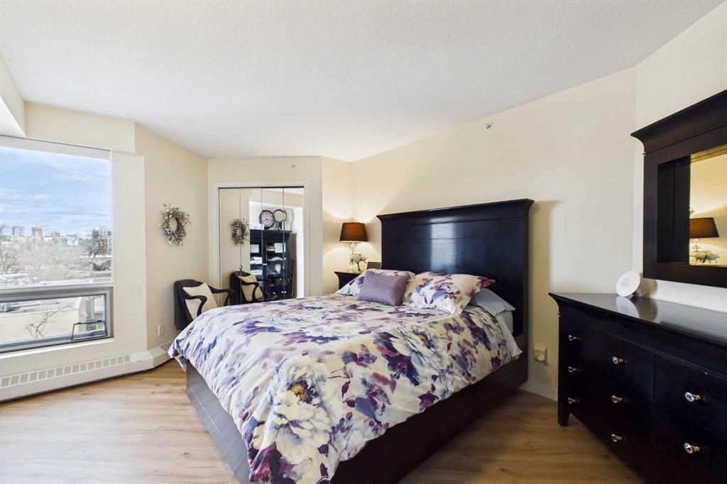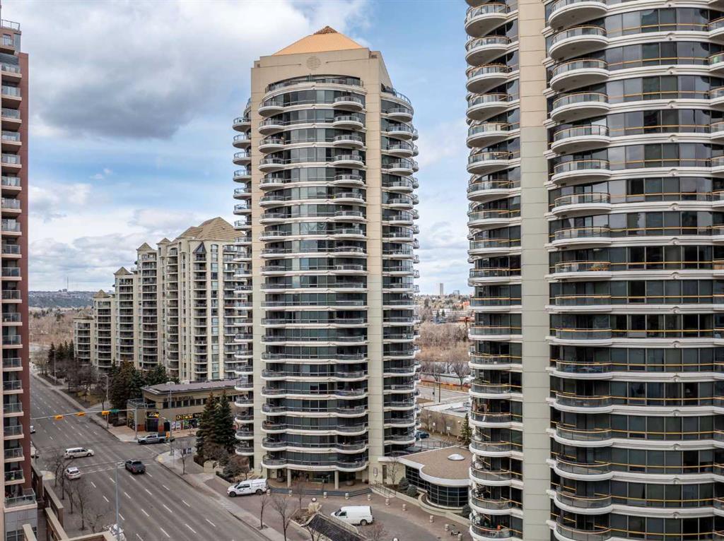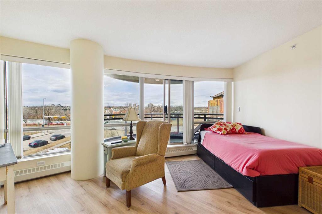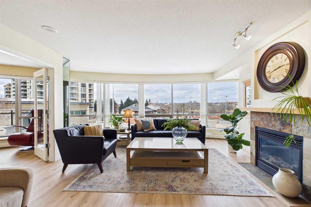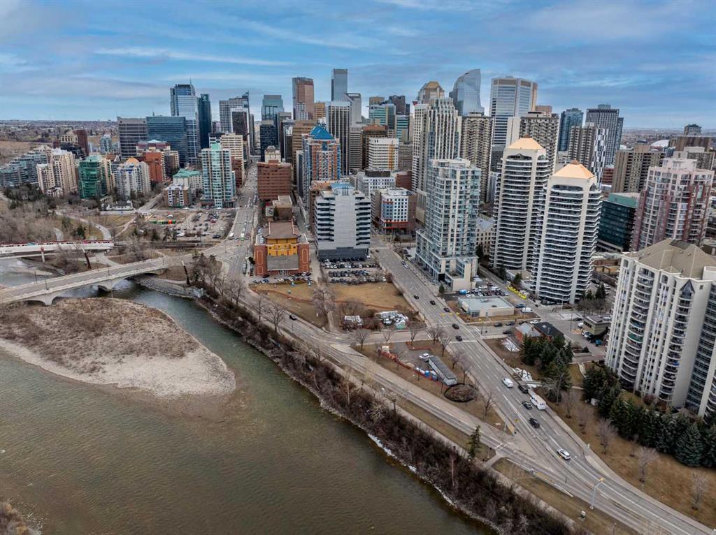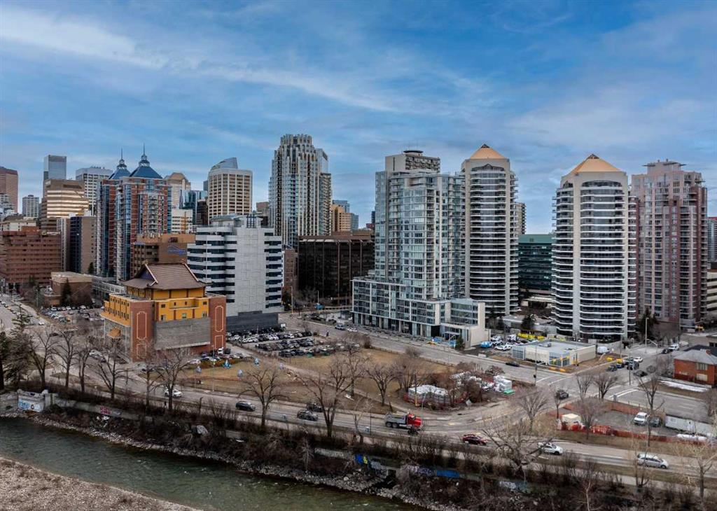 Welcome to this beautiful and spacious 2 Bedroom plus Den condo, boasting an exceptional layout with 1263 square feet of luxurious living space. All located in a quiet, pet-friendly, CONCRETE BUILDING with top of class amenities including a swimming pool. As you step inside, you’ll notice an abundance of natural light from the floor to ceiling windows with NW views of the Bow River. Enjoy the flow of this great floorplan with new vinyl plank flooring, high ceilings, upgraded appliances, granite stone countertops, ample counter space, generous cupboard storage, under-cabinet lighting, a large eat-up bar, and plenty of room for a dining table. The open and inviting living room is complete with cozy gas fireplace with mantle and stone surround. Down the hall, the primary bedroom boasts a full bathroom with heated tile flooring, bathtub and stylish vanity. The second bedroom is generously sized, perfect for family or guests. As well, there is a 3 piece bathroom with stand up shower. The bonus features of this unit are the 2 separate balconies and a large Den that allows for a multitude of uses, including a home office, yoga studio or even an extra bedroom. This condo also includes in-suite laundry, additional storage spaces and TWO Underground heated parking stalls! River West is one of the premier city-center complexes and one of the few offering a private swimming pool, hot tub, fully equipped fitness center, and a social lounge. Perfect for playing cards, birthday parties or family gatherings. Additional features include secured heated underground visitor parking and concierge. This safe building is in a prime location, only steps to the Bow River pathway system. You can enjoy the convenience of walking to work, hopping on the LRT, quick access over the bridge to the plentiful coffee shops and restaurants of Kensington, or take a stroll to Eau Claire. This solid, concrete high-rise, built by the renowned Bosa Developments, offers some of the lowest condo fees per sq ft in the downtown core, a well-managed condo board, full-time reception (Mon–Fri), and a controlled access security system. Whether you’re looking for a great place to call home or a fantastic investment opportunity, this property has it all!