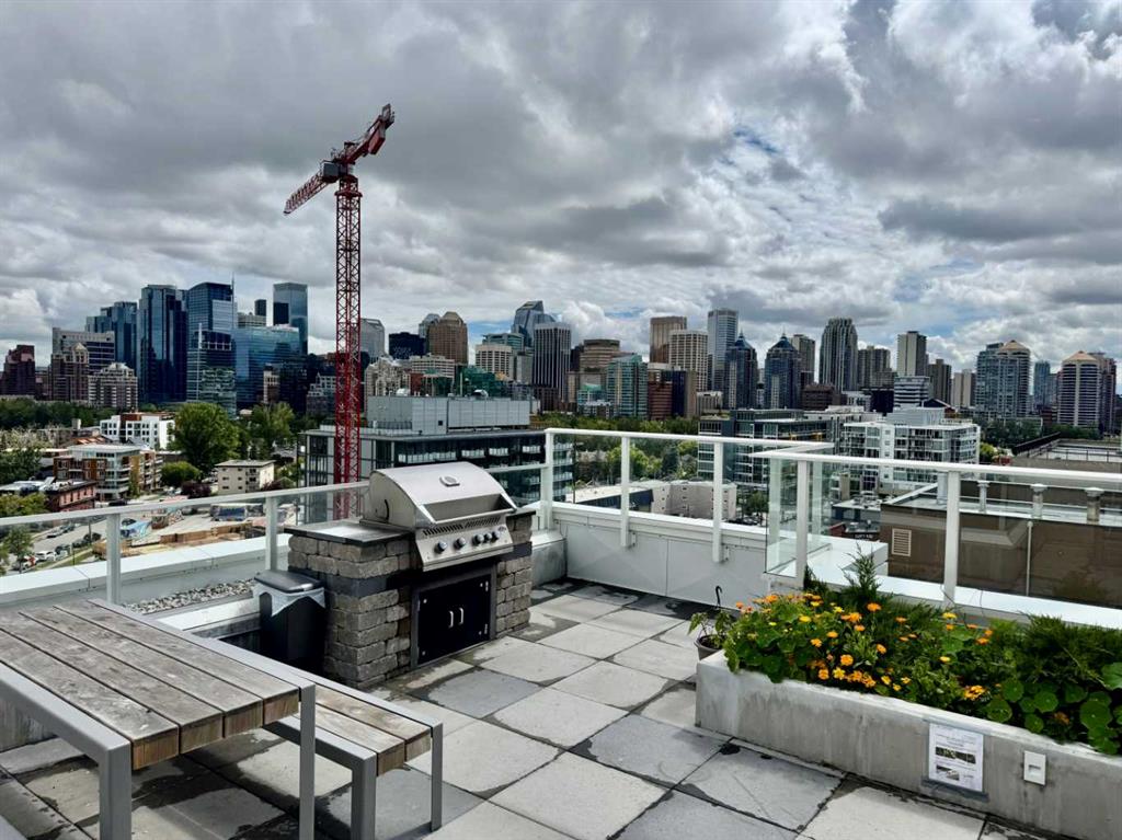Priced to Sell… Welcome to the Pinnacle of Urban Living at The Theodore! Nestled in the heart of Kensington and at almost 600 sqft., this meticulously designed west-facing unit offers a unique blend of luxury and convenience. As you step into this thoughtfully crafted residence, you’ll be greeted by an abundance of natural light flowing through expansive west-facing windows, showcasing the chinook arch to the west. The open concept space connects the living, dining, and kitchen areas, creating an inviting atmosphere for both relaxation and entertaining. The modern kitchen is a chef’s delight, featuring sleek countertops, top-of-the-line Fisher & Paykel stainless steel appliances, and central island. Whether hosting a dinner party or enjoying a quiet night in, this space effortlessly combines style and functionality. The primary suite is a true sanctuary with a west-facing window, bathing the room in afternoon, natural sunlight. Adjacent to the primary suite, the main bath is a full 4-piece spa with a deep, relaxing soaker bath, perfect for unwinding after a busy day in the city. The condo can be used as a legal 2 bedroom condo or have the bedroom used as a Den. This unit comes with an assigned parking stall right across from the elevator entrance to the garage. Enjoy panoramic views of the city and surrounding landscapes from the rooftop patio, complete with 2 outdoor kitchens, Adirondack chairs and fire table. Located in Kensington, one of the most highly desired neighborhoods in all of Calgary, residents enjoy easy access to the city’s best restaurants, shops, and cultural attractions, making every day an opportunity to experience the dynamic urban lifestyle.