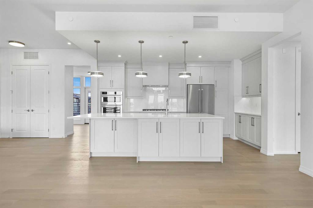 The Streams of Lake Mahogany present an elevated single-level lifestyle in our stunning Reflection Estate homes situated on the park Side on Mahogany Lake. Selected carefully from the best-selling, renowned Westman Village Community, you will discover THE CASCADE, a home crafted for the most discerning buyer, offering a curated space to enjoy and appreciate the hand-selected luxury of a resort-style lifestyle while providing a maintenance-free opportunity to lock and leave. Step into an expansive 1700+ builders sq ft stunning home overlooking a gorgeous greenspace adjacent to Mahogany Lake featuring a thoughtfully designed open floor plan inviting an abundance of natural daylight with soaring 10-foot ceilings and oversized windows. The centralized living area, ideal for entertaining, offers a Built-in KitchenAid sleek stainless steel package with French Door Refrigerator and internal ice maker and water dispenser, a 36″ gas cooktop, a dishwasher with a stainless steel interior, and a 30-inch wall oven with microwave; all nicely complemented by an Elevated Nordic Color Palette. All feature stunning Quartz countertops. You will enjoy two beautiful bedrooms, a generous central living area, with the Primary Suite featuring a spacious 5-piece oasis-like ensuite with dual vanities, a large soaker tub, a stand-alone shower, and a generous walk-in closet. The Primary Suite and main living area step out to a 39 ft x 15 ft terrace with a lovely view of the greenspace. Yours to enjoy and soak in every single day. To complete the package, you have a sizeable office area adjacent to the spacious laundry room, and a double-attached heated garage with a full-width driveway. Custom additions to this home include under-cabinet lighting, an upgraded Moen plumbing fixture package, air conditioning, a convenient laundry room with a folding table, a stunning electric fireplace, and an expansive covered terrace with access from the Living Room, Dining Room, and owner’s suite. Jayman’s standard inclusions feature their trademark Core Performance, which includes Solar Panels, Built Green Canada Standard with an Energuide rating, UVC Ultraviolet light air purification system, high-efficiency heat pump for air conditioning, forced air fan coil hydronic heating system, active heat recovery ventilator, Navien-brand tankless hot water heater, triple pane windows and smart home technology solutions. Enjoy Calgary’s largest lake, with 21 more acres of beach area than any other community.
