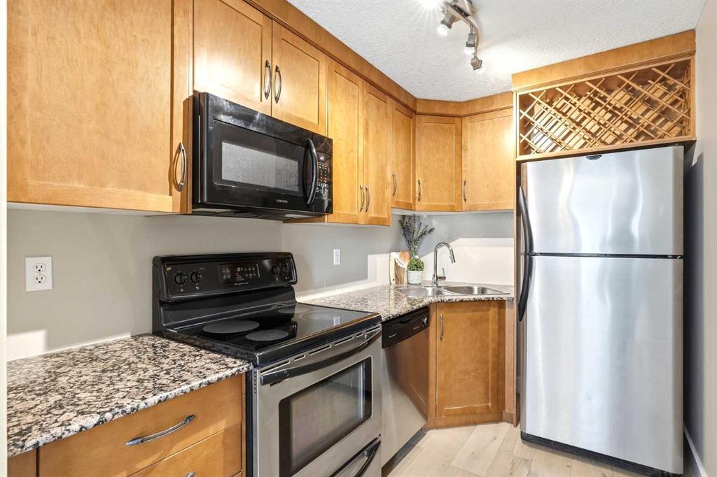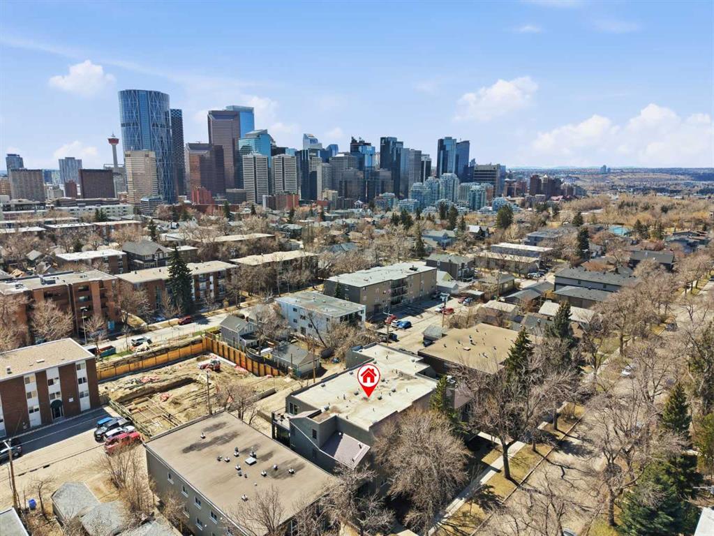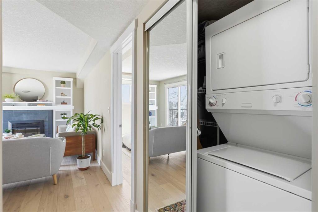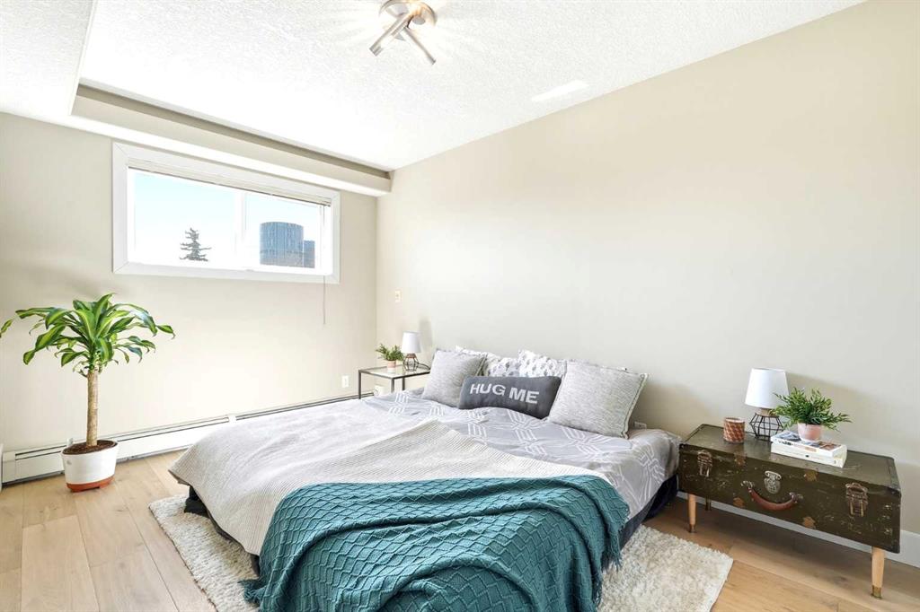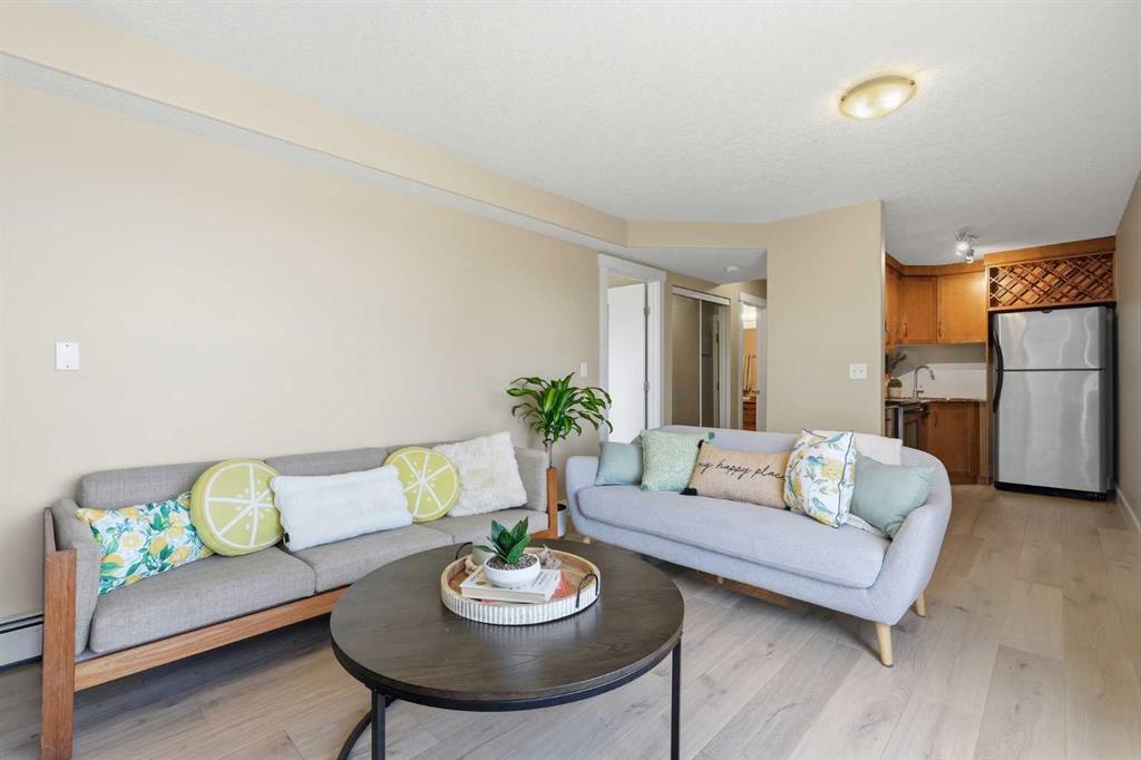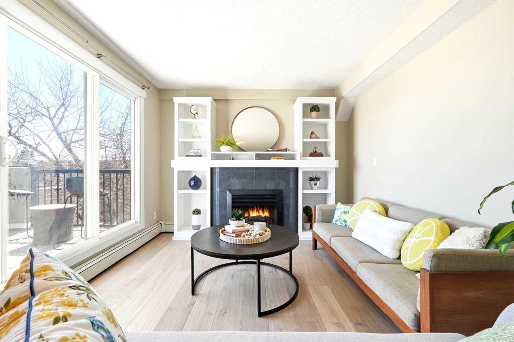 Welcome home to this top floor corner-unit in the heart of Crescent Heights—freshly renovated, move-in ready, and perfectly positioned on a quiet, tree-lined street. The interior has been thoughtfully updated with all-new hardwood flooring and fresh paint throughout, creating a clean and inviting space. The living area centres around a gas fireplace with stylish built-ins, and the open layout flows naturally into the dining and kitchen areas. Corner positioning means natural light pours in throughout the day. Step outside to a spacious south-facing patio—a rare find and a genuine extension of your living space, perfect for morning coffee or evening sun. The bedroom offers a peaceful retreat with a generous walk-in closet, and the 4-piece bathroom features a soaker tub. In-suite laundry, an additional storage locker, and an assigned underground parking stall round out the everyday essentials. Located minutes from downtown, Bridgeland, river pathways, and transit—with cafés, restaurants, and Rotary Park right at your doorstep. Your new home offers an ideal balance of inner-city lifestyle and neighbourhood tranquility.