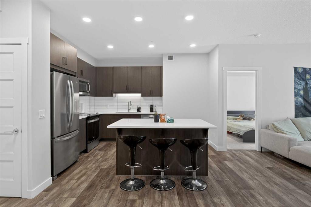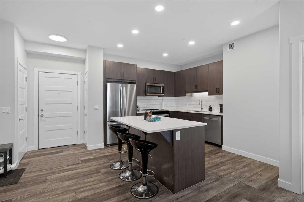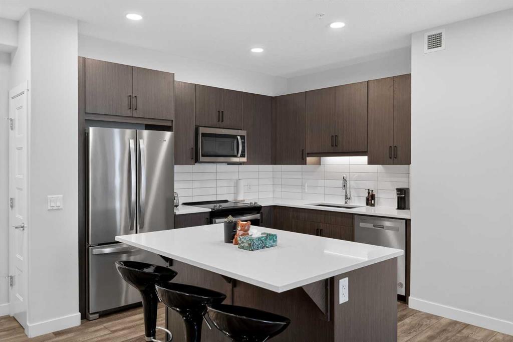 Experience elevated modern living in this exceptional third-floor condominium, perfectly situated in the vibrant new community of Wolf Willow. This home has been meticulously curated with premium upgrades, including soaring ten-foot ceilings and durable luxury vinyl plank flooring, creating a sophisticated environment that seamlessly blends high-end style with everyday convenience.