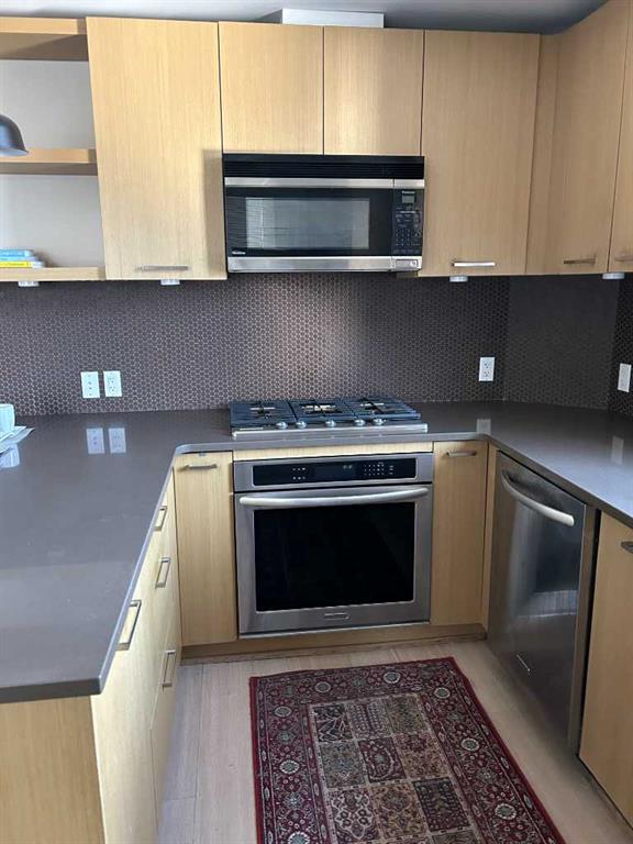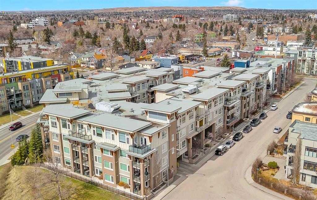 Step into this 2 bedroom and 2-bathroom corner-unit home and you will be greeting by a spacious kitchen with classic penny-round backsplash and quartz countertops, maple cupboards, stainless appliances including a built-in oven, and a countertop gas stove . A huge quartz peninsula has enough counter space to sit 3 people. Nine feet ceilings and large windows create an extra roomy feel. Windows blanket both the North and East sides of this unit The North – East patio has a gas hookup to take care of your ba4bequing needs. The master bedroom has a luxurious ensuite with a 3’ x 8’ glass shower and a walk-in closet. The second bedroom is more than generous with ample storage and a 2’nd 4-piece bathroom is just off the entrance to the unit. Apartment style in-suite laundry facilities enable you to take care of all your laundry needs. This unit also has a storage locker and a tandem parking stall for 2 vehicles. This desirable condo complex features a pet-wash, a car wash, 2 gyms, a bike storage room, visitor parking and a beautiful courtyard. The condo has very reasonable condo fees. Conveniently located near restaurants and shopping and minutes to downtown. This condo has a perfect balance for size and lifestyle for the inner-city dweller. This is a pet friendly building. NOTE: Vacant – easy to show. CREB LOBBYBOX at the front entrance of building 707 provides access to the building. Condo entrance lockbox on the unit door.