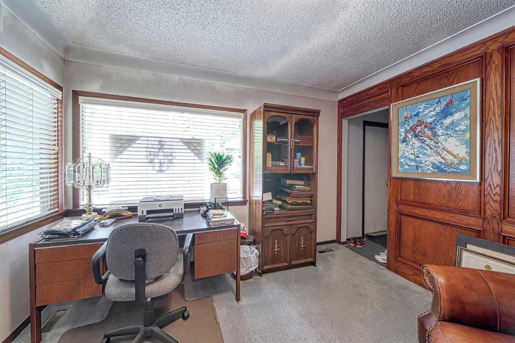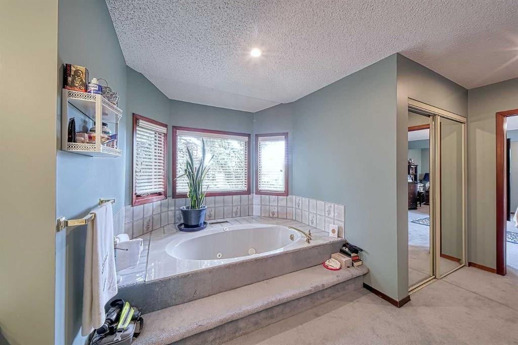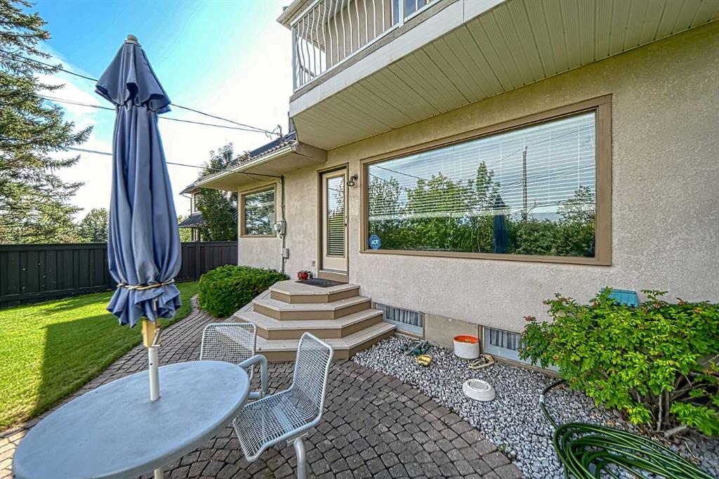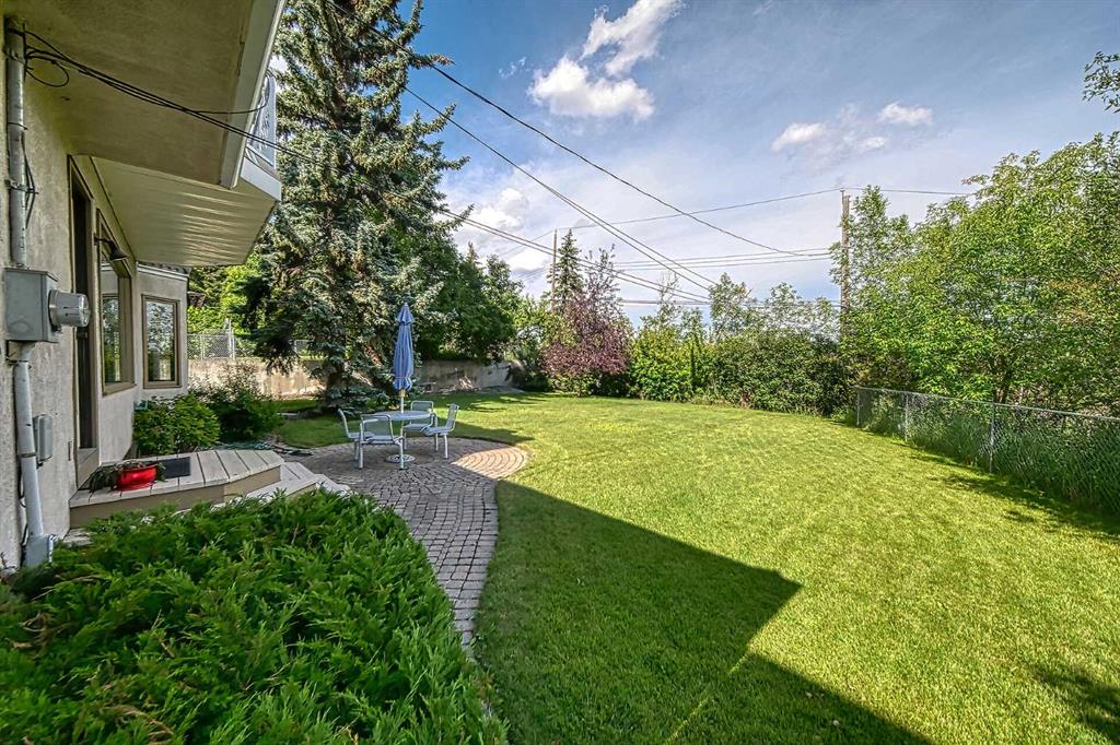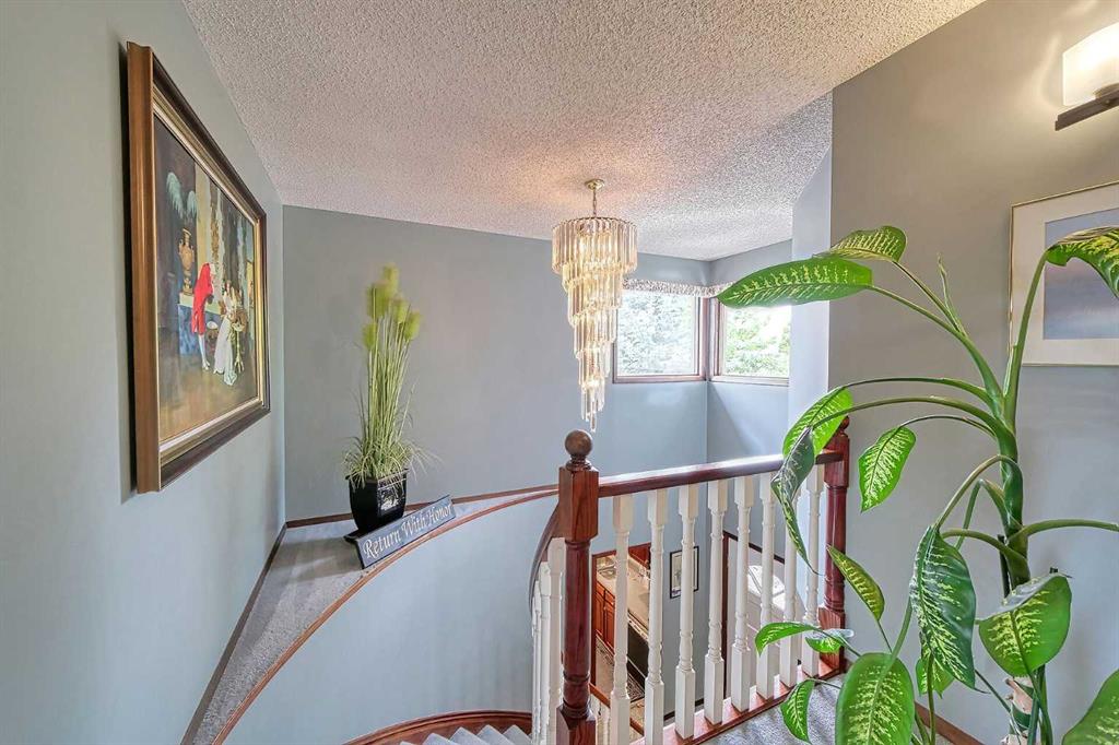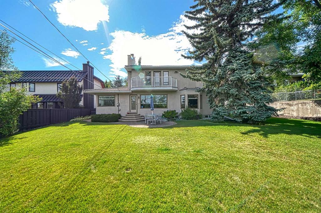 This property offers a Buyer the unique opportunity of updating the existing gracious one and one half storey home of almost 2700 s.f. which was totally gutted and renovated in 1985 from the exterior studs in, by this Seller OR building the brand new 4500+- s.f., two storey plan with a triple garage that is currently awaiting City of Calgary development permit approval. The current home sits on an incredible 9,321 sq. ft. lot with an environmental reserve behind it, which creates privacy to view the beautiful sunrises and city lights. The rear yard always has plenty of sunlight to enjoy. The main floor has numerous large windows on three sides, and if a renovation is in your plans this level can be conformed as you wish with plumbing already located in 3 separate areas. Currently the home has 4 generously sized bedrooms above grade and 4 full baths, with main floor laundry. Lower level has a recreation room, and 3 additional rooms that could be bedrooms with proper egress windows in place. Also, there is a Jack and Jill bathroom with two separate sinks and vanities, and a walk in shower. Unique to this home, a walk up from the lower level to an exterior door to the north side yard. Great access for a Nanny suite, or home business. The garage has a charging station for an electric vehicle.