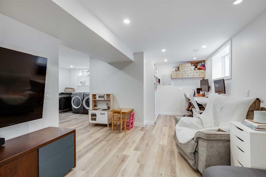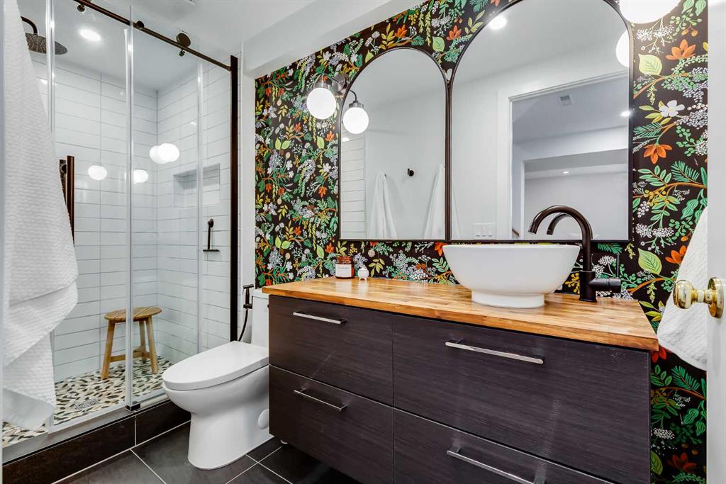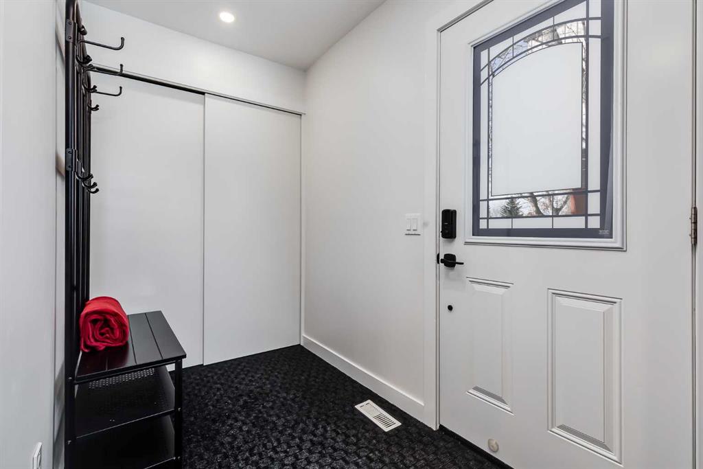 Located in the family-friendly community of Dover, this completely renovated two-storey home offers over 1,600 square feet of developed living space with three bedrooms and two full bathrooms. Positioned along a quiet city pathway with no street traffic, the setting provides both privacy and convenience. Mature trees line the walkway, which is cleared by the city so you don’t have to shovel snow. A side entry welcomes you inside to a spacious entryway with storage. Large windows and the open floor plan creates a bright modern feel, complemented by premium luxury vinyl plank flooring. The kitchen was fully renovated in 2021 with an updated layout, IKEA cabinetry with deep drawers, concealed dishwasher and pull out garbage for a clean look. The kitchen also features premium appliances, including an induction cooktop, solid surface counter top and lots of well designed touches. From the dining area doors lead outside to a covered back deck, while the living room opens onto a generous front deck with tall glass railings built carefully around a well established mayday tree. Upstairs, you’ll find three well-sized bedrooms and a fully renovated four-piece bathroom. Updated in 2023, the bathroom features a deep tub, in-floor heating, solid surface counter with modern lighting and refined finishes throughout. The basement offers a flex space with a large egress window, which is currently set up as a home office and rec space. Also in the basement is a laundry area with built-in bench and storage, along with a three-piece bathroom renovated in 2021 with a luxurious shower. Outside, the backyard includes raised garden beds, storage sheds, and a parking pad for three vehicles. While the front yard, adjacent to the walking path, also provides safe and quiet activity space with grassy areas and fruiting bushes. For buyers concerned about a garage space, the seller has obtained a recent quote indicating a double detached garage would cost approximately $40,000 to build in the parking pad area. Additional upgrades include a new water and sewer line with backflow prevention valve (2020), PEX plumbing (2021), new hot water tank (2023), two-stage high-efficiency furnace (2020), a 200-amp electrical panel, new windows and doors, upgraded insulation, and recessed lighting. The home is steps from West Dover Elementary, minutes from St. Damien School, and close to the Dover Community Association and outdoor rink. Valleyview Park is within walking distance with volleyball courts, baseball diamonds, soccer fields, a spray park, and playgrounds. There are plenty of walking and biking paths including the Southview area with stunning views of the mountains and city skyline. Shops, restaurants, and everyday amenities are nearby, as well as off-leash areas and Inglewood Golf Course. Residents enjoy quick access to Deerfoot Trail, are 10 minutes from downtown, and near the Bow River pathways or The Max Purple express bus is also within walking distance for convenient transit. View the 3D Tour!