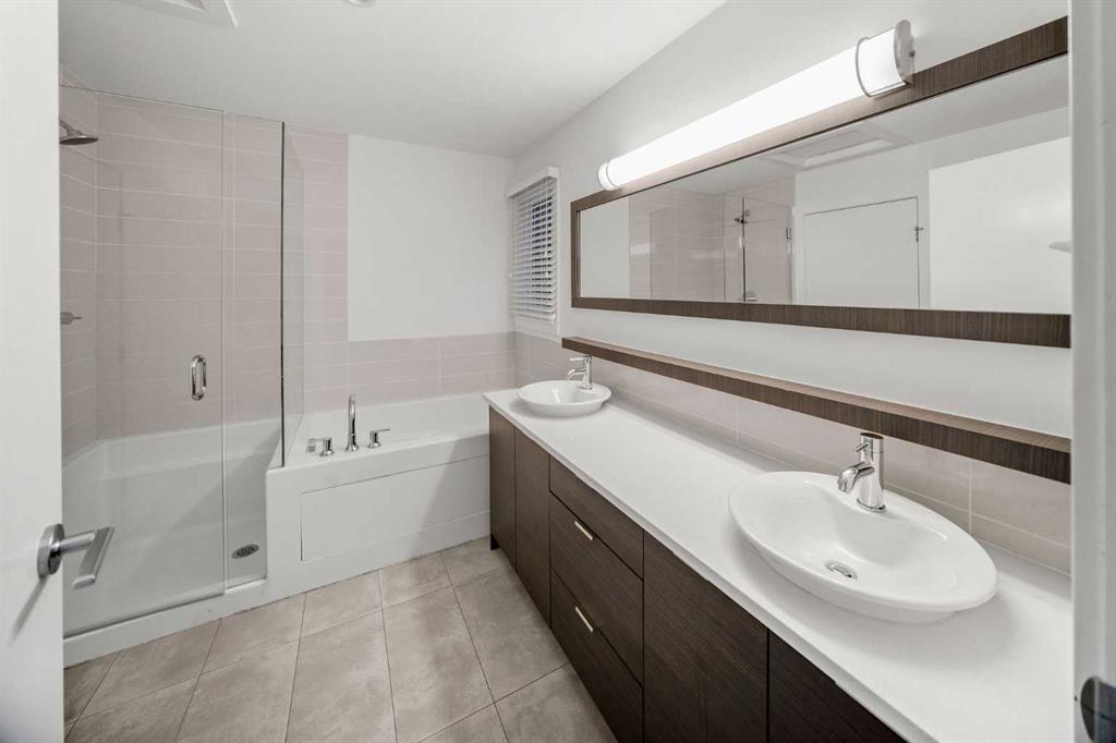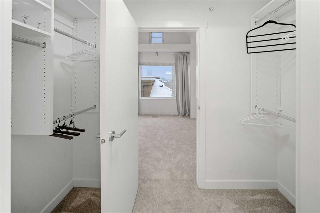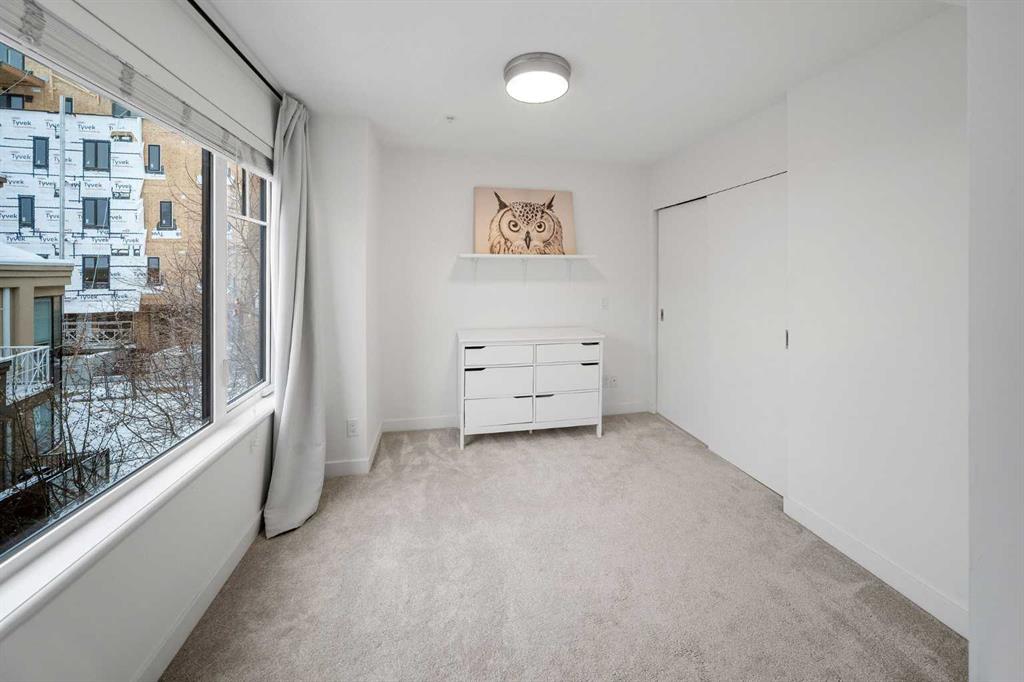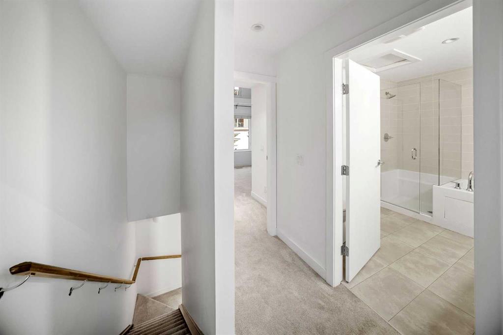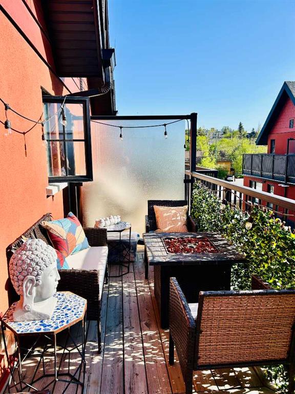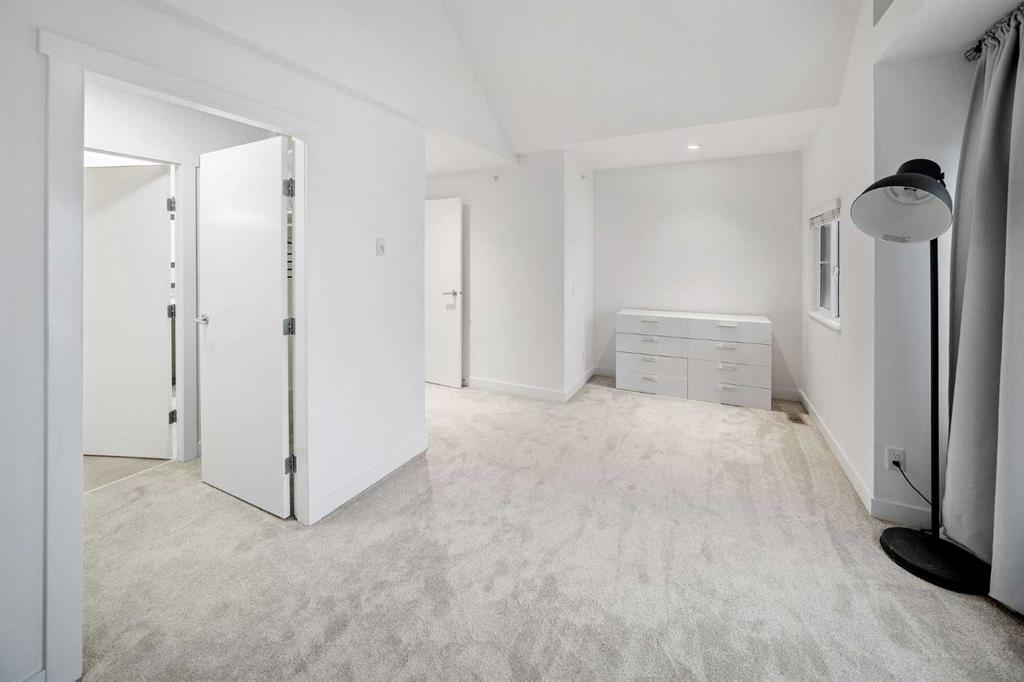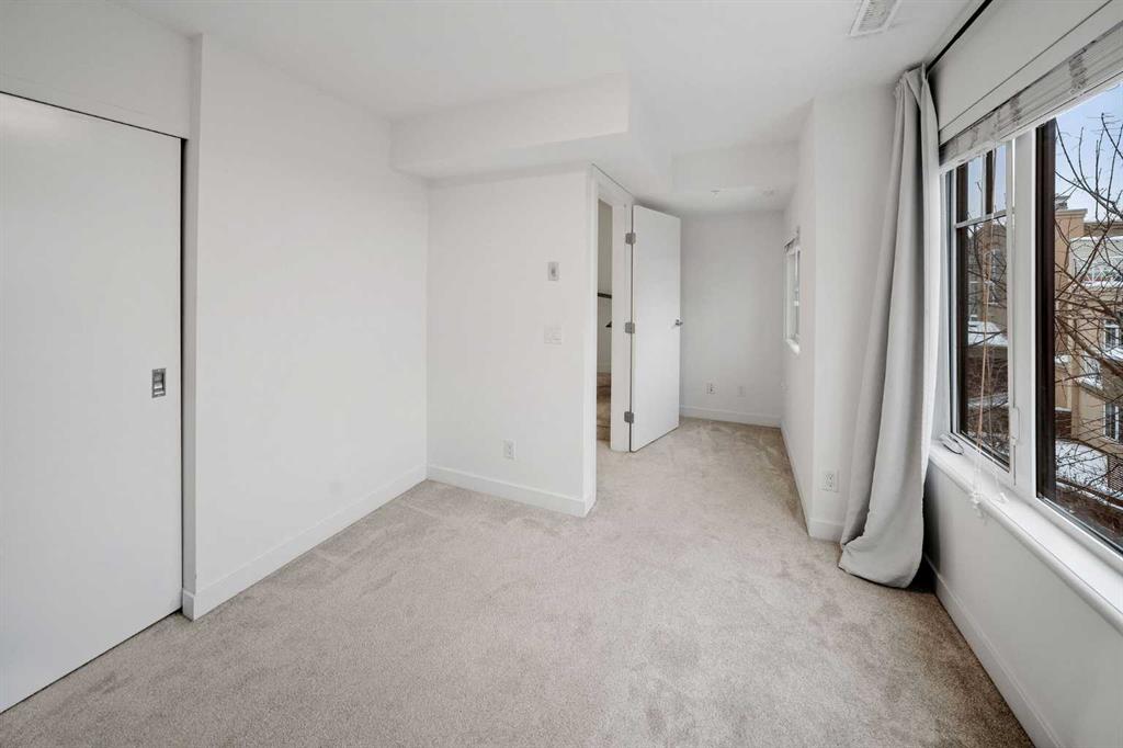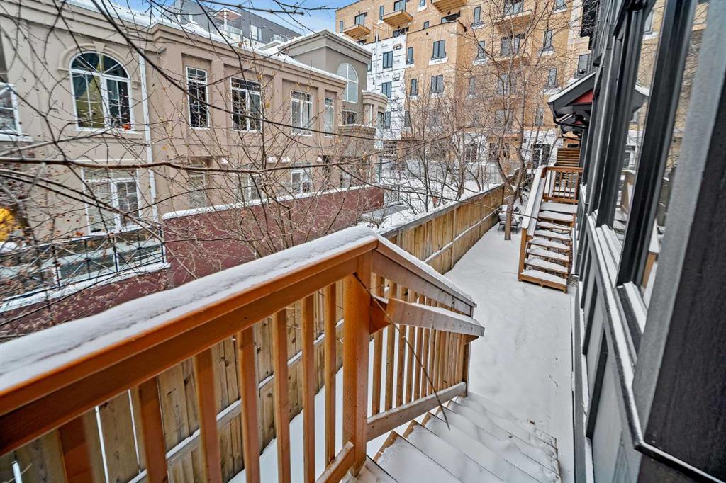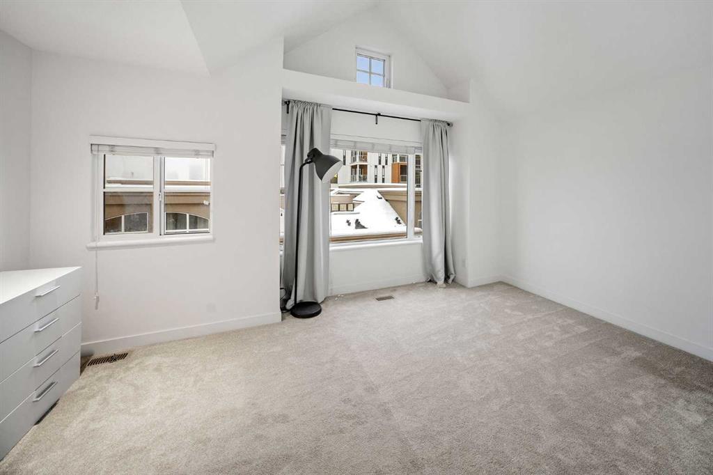 Three bedrooms, two bathrooms, dedicated storage, and titled parking come together in a boutique brick row building with subtle brownstone vibes and classic urban styling. This townhome blends vibrancy, privacy, and low maintenance living in one of Calgary’s most walkable locations. Just moments from the energy of 17th Avenue and the Beltline, you are surrounded by fabulous local dining, cafes, boutique fitness, and everything that makes inner city living so coveted. Tucked away from the street for added peace, the secure setting of the building creates an inviting atmosphere where, in the warmer months, neighbours often unwind on their own private terraces with barbecues or a glass of wine, adding a warm community feeling while maintaining personal privacy. Inside, this home offers the spaciousness of a traditional layout with the ease of condominium living. The modern kitchen features quartz counters, stainless steel appliances including a five burner gas range, generous cabinetry, a breakfast bar for casual meals, and the option to take dinner parties to the dining table that easily seats six. It all flows naturally into the inviting living area where a cozy gas fireplace anchors the room. The second level includes two comfortable bedrooms, a four-piece bathroom, and full size laundry. One more level up is the dedicated entirely to the primary retreat, the true showstopper of the home. This primary bedroom feels both serene and elevated with its soaring vaulted ceilings, wrapped in windows and offers a truly calming sense of space. A generous walkthrough closet offers abundant hanging space and leads to the relaxing spa inspired ensuite complete with double vanities, a glass shower, a deep soaker tub, and the added luxury of heated floors. Topping off this decadent level is the private balcony, perfectly positioned to overlook the front courtyard while capturing beautiful westerly views. The lower parkade entry level has a spacious flex or storage room which provides loads of shelving for effortless organization. This home also includes two additional outdoor lounging spaces; A charming backyard area offers a quiet spot for al fresco dining and relaxing, while the welcoming front terrace is ideal for morning coffee, evening wine, and summer barbecuing with friends. Small pets are welcome too (with board approval), and some owners have created a cute outdoor relief spot in their backyard – on leash or with board approved fencing, ideal for quick winter outings with your furry friend. Your secured and titled indoor/heated parking stall is conveniently located beside your parkade door with room for a bike. This beautifully maintained unit is also offered turn-key (move-in ready) with it’s furnishings & all kitchen items … for a seamless move. With only nine units in the building and close proximity to parks, schools, gyms, hot yoga, shopping, transit, and major routes, this home delivers elevated inner city living at its finest.