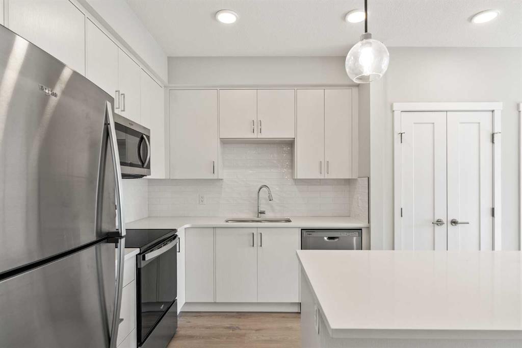 Welcome to your brand-new home in Shawnee Slopes, where modern design meets everyday comfort. This stylish 3-bedroom, 2-bathroom condo in the 2025 Fish Creek Exchange development offers 922 sq. ft. (builder size) of smart, functional living space. Inside, you’ll find high ceilings, luxury vinyl plank flooring, and a beautifully designed kitchen with quartz countertops, full-height cabinetry, and stainless steel appliances — the kind of kitchen that makes cooking feel effortless. The open layout flows seamlessly into the private south east-facing balcony, a perfect spot to unwind with morning coffee, enjoy summer evenings, or take in Calgary’s signature sunsets. Every detail has been considered for convenience and ease, including titled underground parking and a secure storage cage. Located just steps from the Fish Creek–Lacombe LRT Station and minutes from Fish Creek Provincial Park, you’ll enjoy the best of both worlds — city connectivity and nature at your doorstep. Whether you’re a first-time buyer, an investor, or someone looking to simplify without compromise, this home offers a refreshing balance of style, function, and lifestyle in one of Calgary’s most sought-after communities.