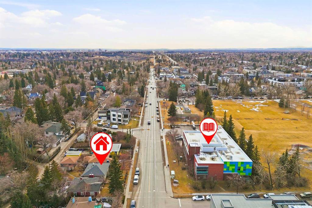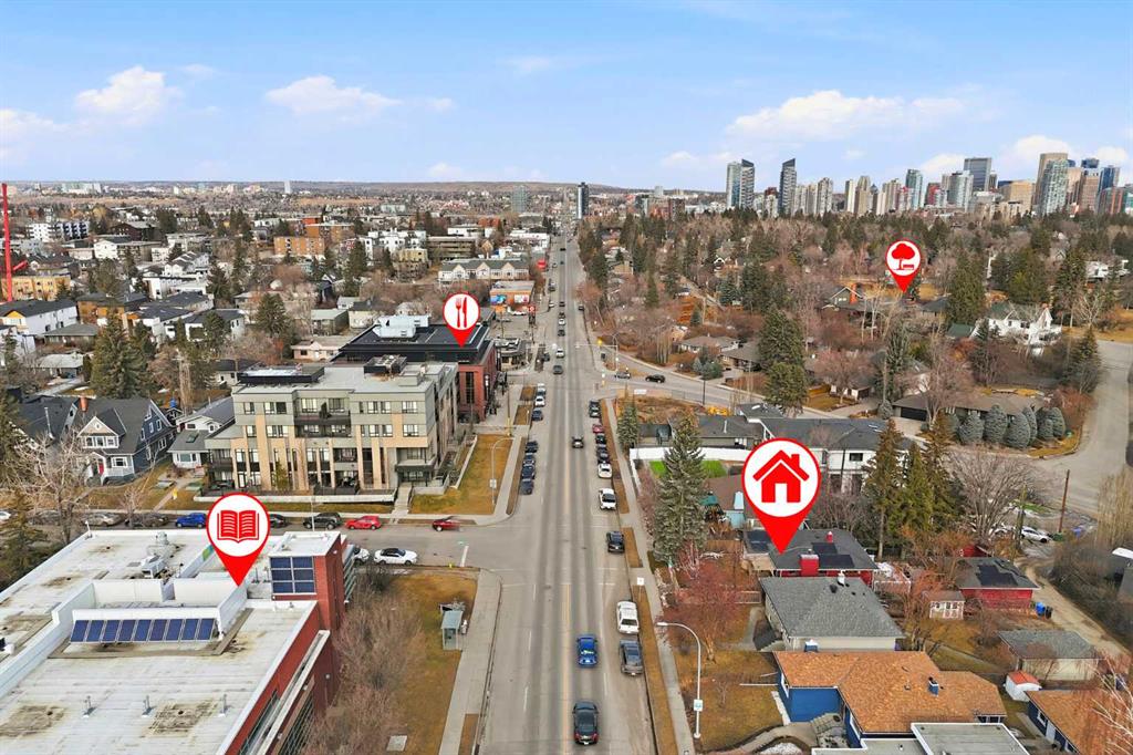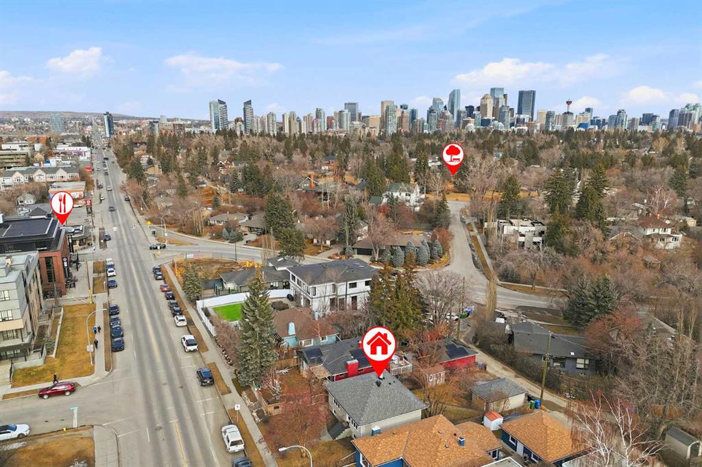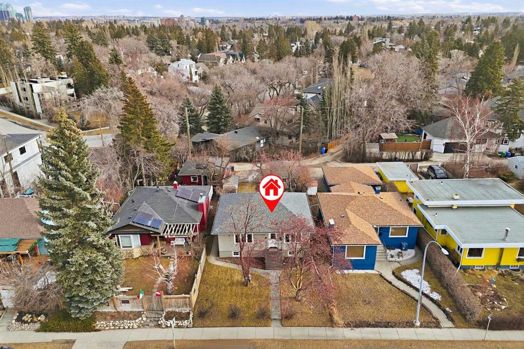 Modern luxury meets old world charm in this beautifully re-done 1949 character home. Situated on a LARGE 40’ x 119’ LOT, this UPPER MOUNT ROYAL BUNGALOW is perfectly located in the heart of inner-city Calgary. OWNER OCCUPIED and lovingly cherished, this home has been tastefully updated over the years. Many of the ORIGINAL CHARACTER FEATURES remain, making this a charming space full of history. The smartly laid out floor plan includes a total of 902 square feet above grade and a FULLY DEVELOPED BASEMENT, including 3 BEDROOMS AND 2 FULL BATHROOMS. Perfect for a professional couple or small family! Upon entering, you’ll find original oak hardwood flooring, professionally refinished in a dark wood tone, a light and bright living and dining area upgraded with colour drenched walls and modern lighting. The kitchen has been transformed to modern standards with beautiful shaker cabinetry, granite countertops, and a stainless steel appliance package including a new dishwasher. Proceed through classic arched doorways to the bathroom, updated with a marble countertop and refinished wood vanity, plus dual sinks. Completing the main floor are two generously sized bedrooms. The basement, completed in 2013 with permits, features a large recreation space – full of light from four windows. There is a third bedroom and a full bathroom – a great guest space. Heading outside into the landscaped yard, you’ll find a large lawn, perfect for the kids or pets to play. Completing the yard is the sturdy storage shed, single garage, plus a two car parking pad – plenty of off-street parking for visitors! Upgrades include: newer roof approximately 2018, furnace 2021, hot water tank 2021, A/C 2021, dryer 2025, Hunter Douglas blinds 2021, and interior paint. With a park and library right across the street, easy access into the heart of downtown via 14th street, and situated in the William Reid School catchment zone – this is an excellent purchase at only $699,900! Tired of builder basic homes? Own a piece of history in this adorable, craftsman-made, classic bungalow!