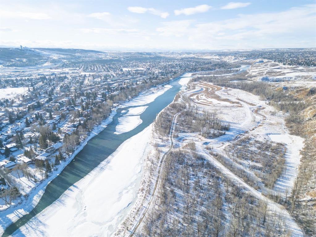 TOP FLOOR. SUN-FILLED. WALK EVERYWHERE. LOCATION LOCATION LOCATION!!! Market Mall is ACROSS the Street = groceries, shops, restaurants, services, coffee shops, theatres. 5 minute drive to U of C or walk in 25 minutes or 2 minute walk to bus stop = arrival at U of C in 10 minutes! Bow River Pathway is a block away – extensive, year-round paved and multi-use trails for walking, running and cycling! Rare opportunity to own in this quiet, well-kept building. NO sales have occurred here since 2024 – makes this a great opportunity to find the perfect place to live – and a solid stable community to live in. This BRIGHT – CORNER 1-bedroom, 1-bathroom unit sits on the TOP floor, meaning no one above you. Exceptional East-South-West natural light throughout the day. Enjoy a large private SOUTH facing balcony off the living room, unobstructed sunshine into both the open concept living/dining space and the bedroom. PLUS enjoy mountain views from your kitchen window! The layout offers generous in-suite storage (bikes, boxes, or use as pocket office area) and ample closet space. IN SUITE LAUNDRY. This unit is VACANT and move-in ready. LOW condo fees that include assigned PARKING, HEAT & WATER – keep ownership affordable. This is an exceptional opportunity for a first-time buyer, someone looking for a quiet haven in the city or an investor ( NO Short Term rentals under 28 days allowed. ) Have a PET?! Board approval necessary but no weight, breed, size restrictions. Own for less than many rental payments – while building equity in one of Calgary’s most connected communities! Quiet building. Top floor privacy. Sunshine all day. Location that works for real life. Faces Christine Meikle School – so many days/months of the year – you have no neighbours! Plus the road is blocked right in front of this unit (can’t drive straight thru on 50 St) – so LIMITED traffic noise below! Perfect QUIET space to study or relax. Varsity gives you inner-city access without inner-city chaos! Close to major roadways. Airport is 25 mins away and drive Downtown in 10 mins (without traffic of course!) Get out of the city quickly – Canmore is an hour away! Mature trees, strong schools, walkability and long-term value. Varisty is one of Calgary’s most popular communities. Some photos are virtually staged. Call today to view – or book a showing!