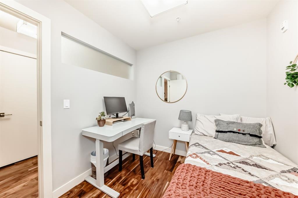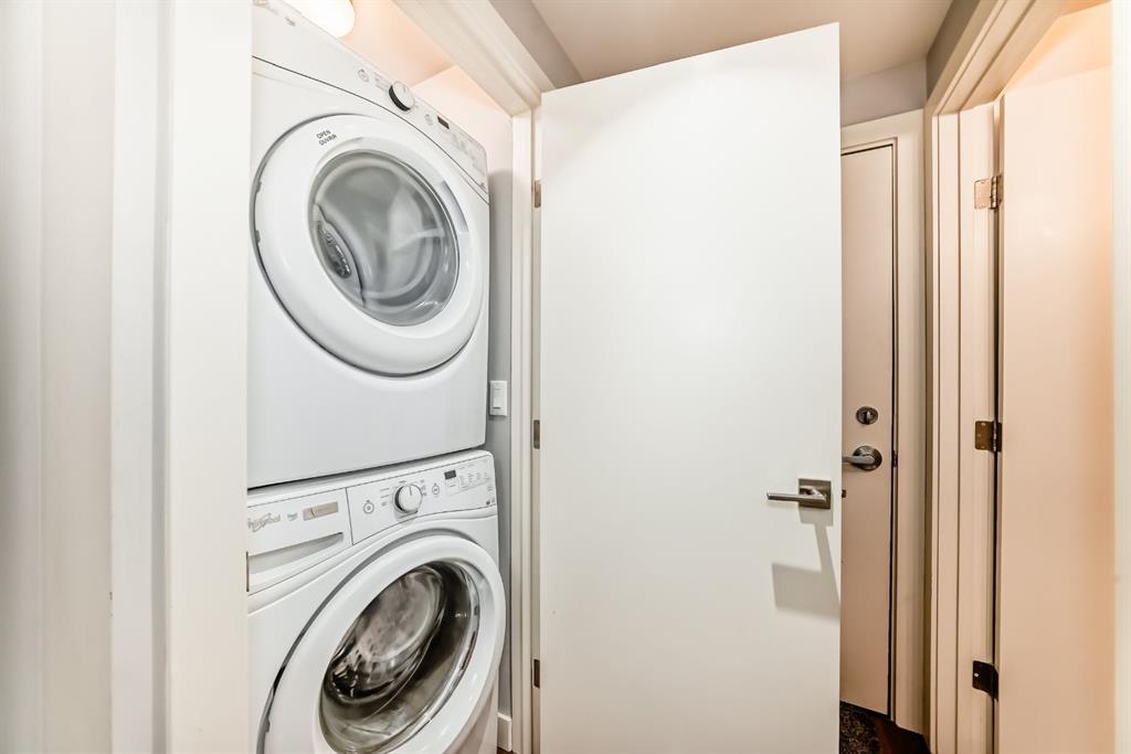 “” OPEN HOUSE: SATURDAY, MARCH 21, 2:00 – 4:00 PM. “”. Excellent professional and or investor condo ((short term rentals allowed) in a prime area of Connaught/Beltline. Sunny south unit direction with air conditioning ($10000 option). Two bedroom, two full bathrooms (Ensuite and guest bathrooms), spacious living room, kitchen with dining, eating bar area, upgrade features include: quartz countertops, engineered hardwood flooring, spacious open plan, 9 foot ceilings, in suite laundry, spacious deck, one rear lot parking stall, beside rear access door. Bedroom 2 fits a bed. No exterior window and closet is in hallway. Extra storage locker in parkade area Location is close to everything downtown: restaurants, coffee shops, etc. but location is still quiet at night – away from the noise of the nightlife.