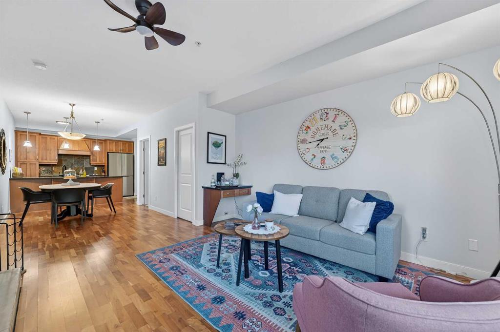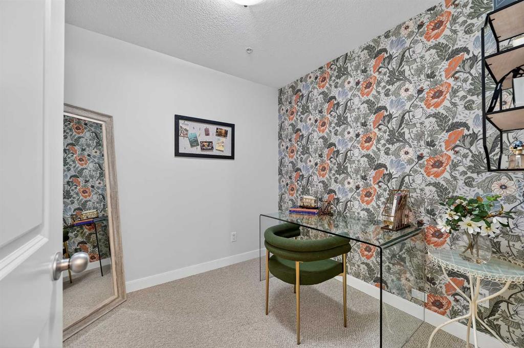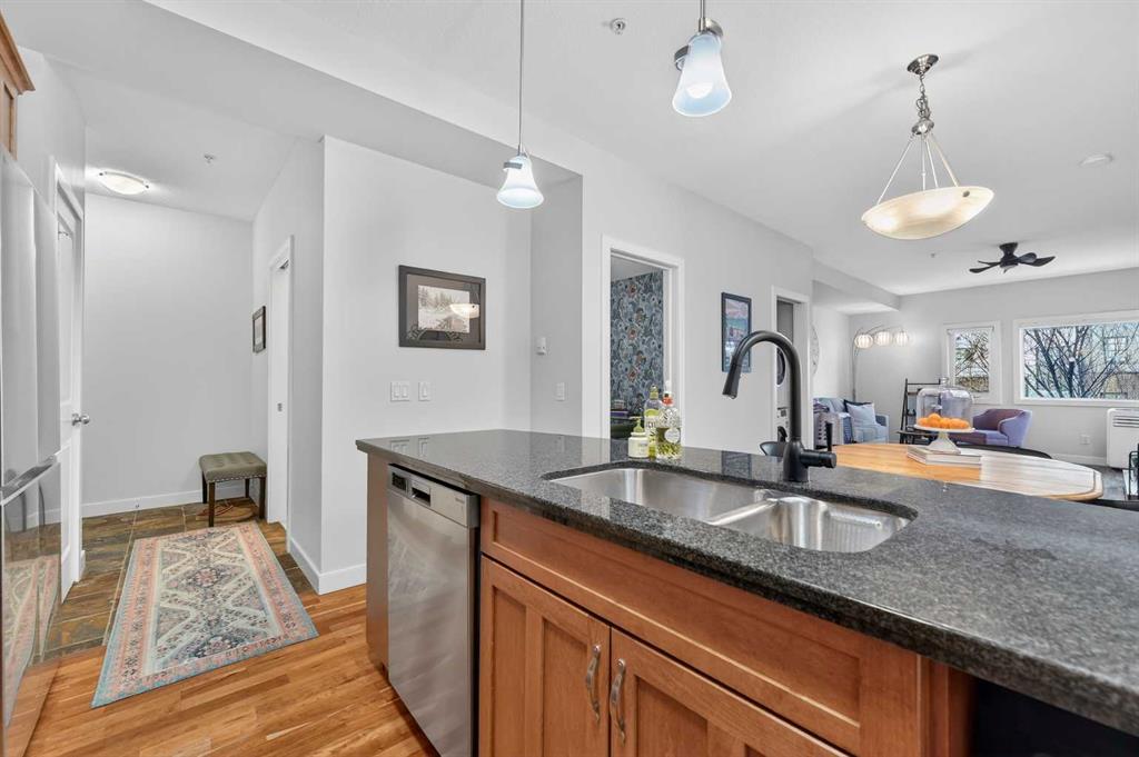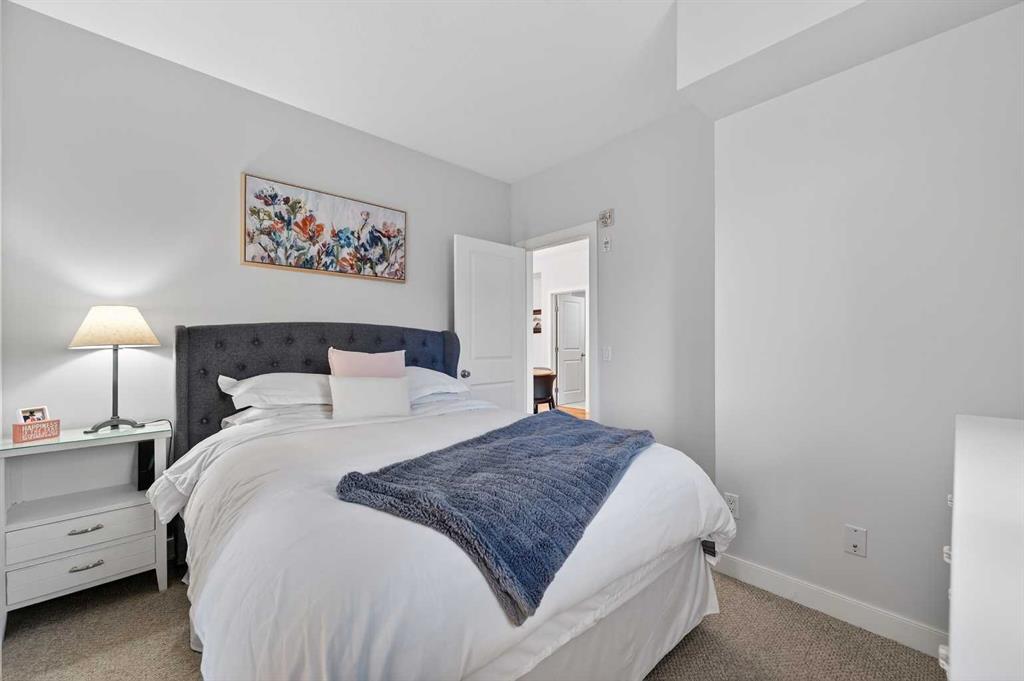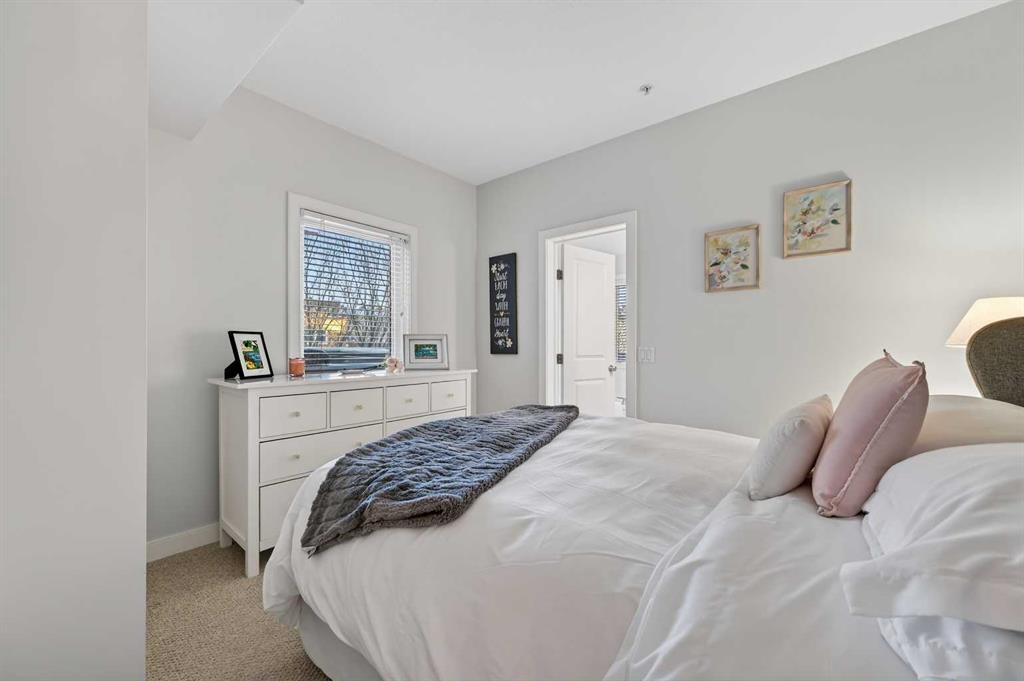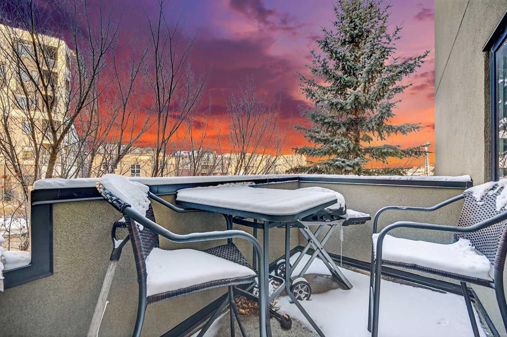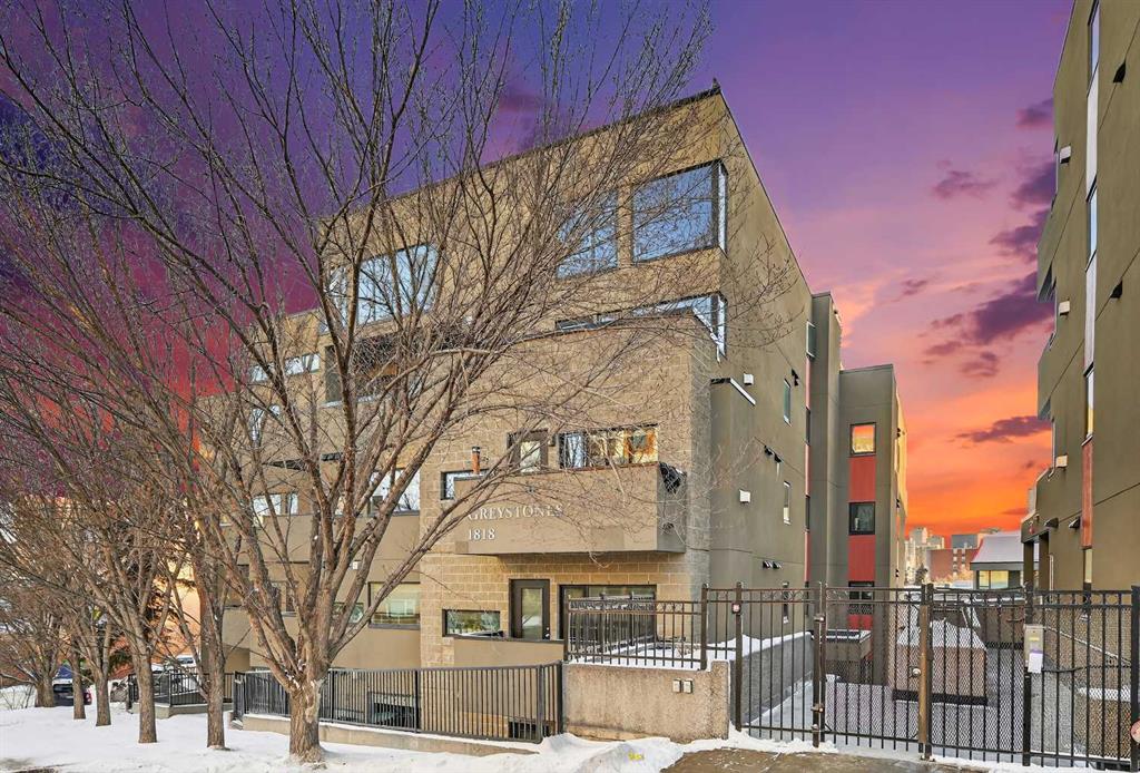 Welcome to The Greystones, a timeless and highly sought-after residence nestled in the heart of Lower Mount Royal, one of Calgary’s most desirable inner-city neighborhoods. Just steps from vibrant 17th Avenue SW, this exceptional location places you at the centre of it all. Enjoy world-class dining, boutique cafés, charming shops, green spaces, schools, and effortless access to public transportation, all right outside your door. This beautifully appointed 1 bedroom plus den, 1.5 bathroom home is located on the third floor and showcases a thoughtfully designed open-concept layout filled with warm west-facing natural light throughout the day. From the moment you enter, you’ll appreciate the sense of space, comfort, and quality. The kitchen is both elegant and functional, featuring granite countertops, stainless steel appliances, a gas range, and rich cabinetry that flows seamlessly into a spacious dining area. Just off the kitchen, the dedicated den offers the perfect space for a home office, reading nook, or creative studio, ideal for today’s work-from-home lifestyle. The inviting living room is anchored by a striking concrete-mantle gas fireplace, creating a cozy yet sophisticated atmosphere for relaxing or entertaining. Step outside onto the private west-facing balcony, where mature trees provide a lush summer canopy and a tranquil setting to unwind at the end of the day. The generous primary bedroom is a true retreat, complete with a walk-in closet and a beautifully finished four-piece ensuite bathroom. Recent updates include fresh paint throughout and brand-new carpeting, ensuring the home feels move-in ready and impeccably maintained. Additional conveniences include a titled underground parking stall and an oversized storage locker, adding exceptional value and everyday practicality. This is inner-city living at its finest. A rare opportunity to own a refined home in an unbeatable location. Come view today and experience it for yourself.