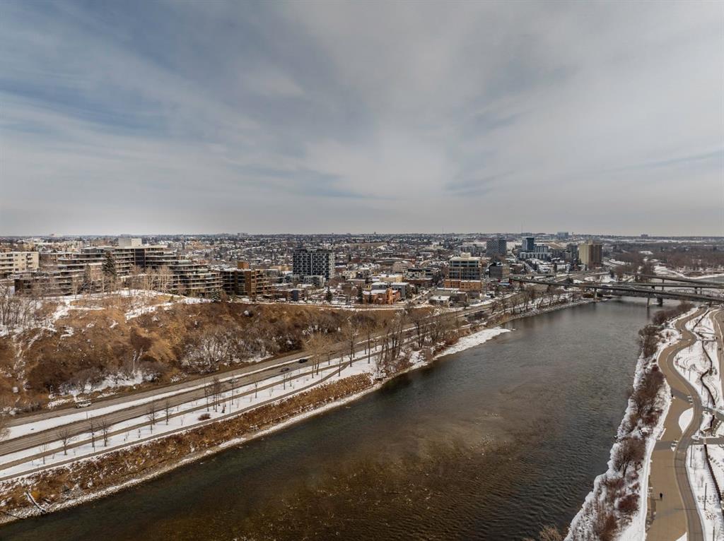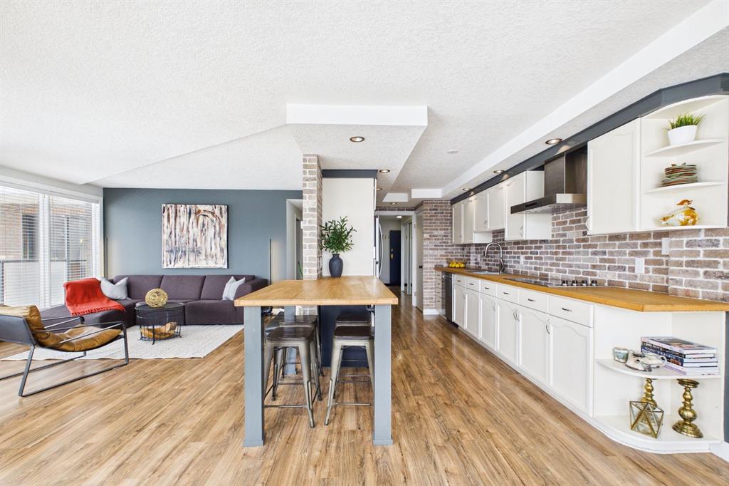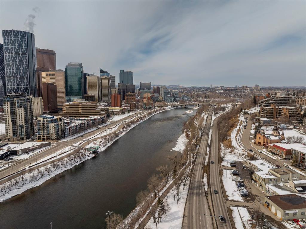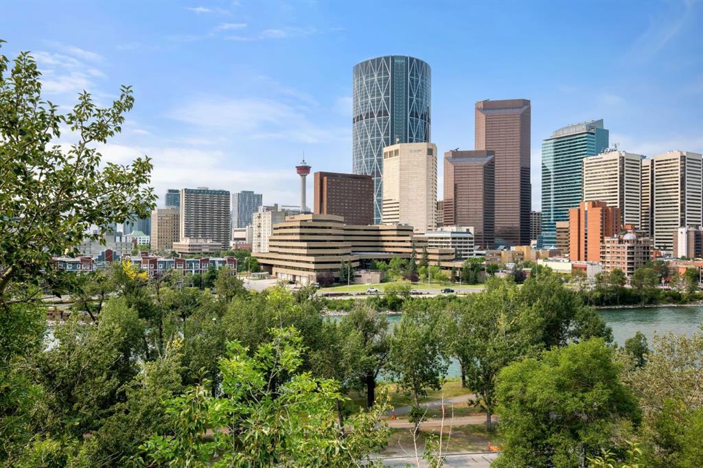 Experience elevated urban living in this stunning, updated one-bedroom sanctuary located in the prestigious Holly Park building of Crescent Heights. Boasting breathtaking panoramic views of the Bow River and the downtown skyline, this residence radiates pride of ownership through its modern finishes and unique, entertainer-friendly layout. Sun-drenched living and dining areas feature warm laminate flooring and expansive windows that open onto a massive wrap-around balcony, while the renovated kitchen impresses with custom tile work, bamboo countertops, and sleek built-in appliances. The generous primary suite offers a wall-to-wall closet and seamless access to the four-piece bath, but the true hidden gem is the ultimate convenience of same-level parking—your vehicle is located just across the hall. Beyond your front door, enjoy amazing amenities including an indoor pool, sauna, fitness centre, squash courts, and library all within walking distance of the city’s best biking trails and the downtown core.