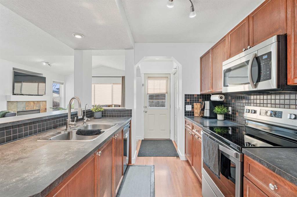 The lower level offers a 1 bedroom, 1 bathroom illegal suite with a separate entrance. This space is ideal for extended family, guests, or as a private area for older children. It provides functional living and adds valuable flexibility to the home. Outside, the property continues to impress with an oversized double detached garage and two additional parking spaces, making it easy to accommodate multiple vehicles or recreational equipment. The yard is designed to be low maintenance while still offering room for outdoor enjoyment. The community of Drake Landing provides walking paths, parks, and a welcoming neighbourhood environment. This home combines comfort, practicality, and character, creating an excellent opportunity for both families and investors. If you are looking for a property that offers space, flexibility, and an inviting atmosphere, this Drake Landing gem is ready to welcome you.