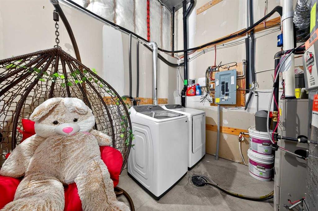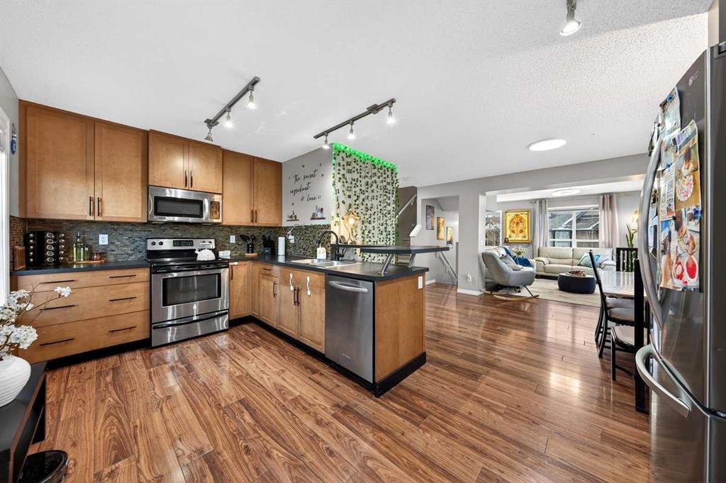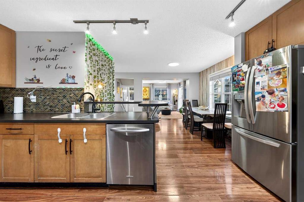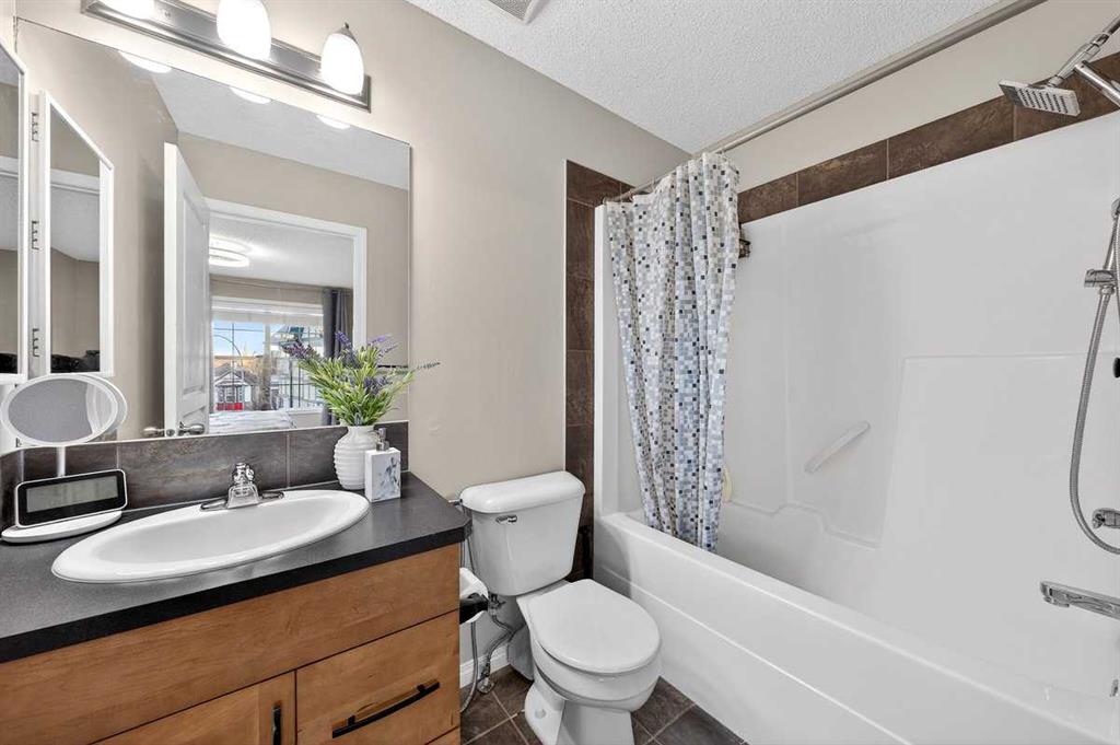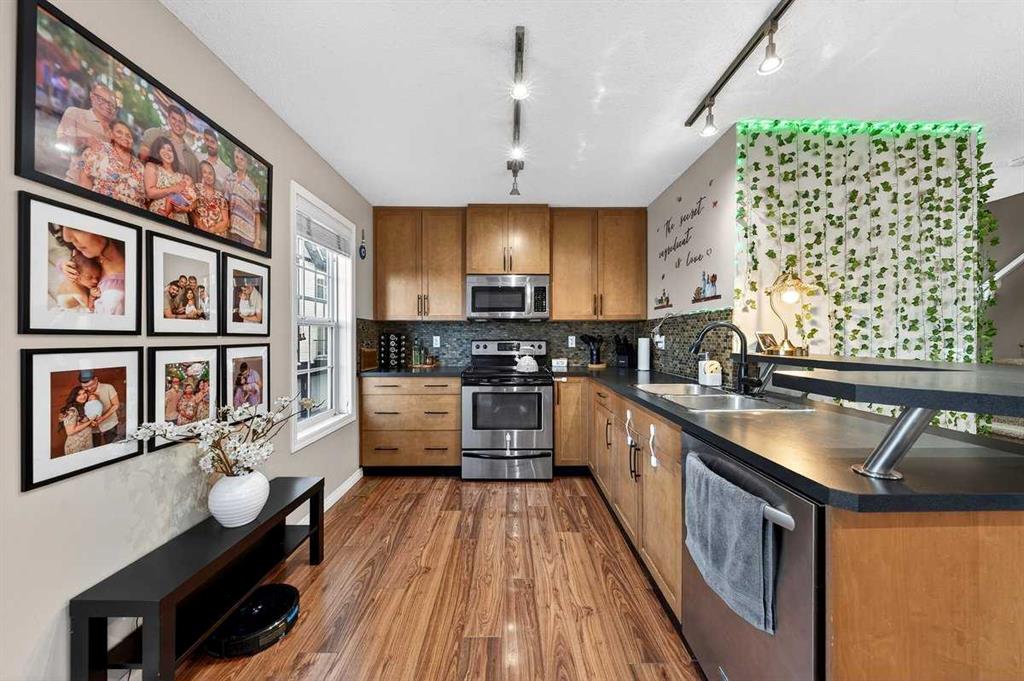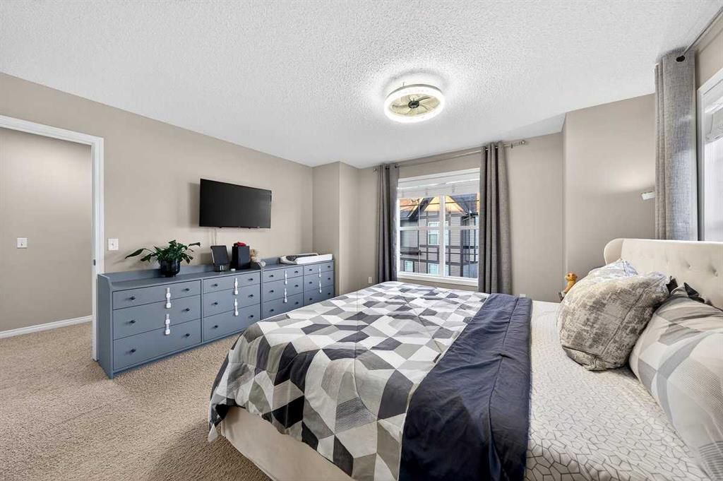 *** OPEN HOUSE SATURDAY JANUARY 10TH AND SUNDAY JANUARY 11TH 12-4 PM *** Welcome to your new home at 303 New Brighton Villas SE! A truly impressive and majestic end unit townhome that immediately captivates right as you enter with its high ceiling, tiled entryway, stunning chandelier, and an abundance of natural light streaming through the extra windows that only an end unit like this can offer. The bright, airy, and thoughtfully designed open concept main level is ideal for both everyday living and entertaining, featuring a spacious living room that flows effortlessly into a dining room and beautiful kitchen with ample cabinetry, generous counter space, and a convenient breakfast bar. A 2 piece bathroom completes the main floor, while air conditioning ensures year round comfort throughout your home. Adding exceptional value and convenience is the fully drywalled double attached garage, perfect for secure parking that can fit 2 bigger SUV’s and additional storage. Upstairs, the home truly shines with two impressively large primary bedrooms, each designed as its own private retreat, both complete with a walk in closet and a full ensuite bathroom, a rare and highly desirable layout that offers outstanding comfort, flexibility, and privacy. Pride of ownership is evident throughout with numerous updates including a new hot water tank (2022), dishwasher (2022), microwave hood fan (2023), hand held shower head (2023), washer and dryer (2023), and all lighting upgraded in 2023. The well managed complex has also seen a full roof replacement approximately three years ago, offering peace of mind while maintaining impressively low condo fees. Enjoy the charming front patio for relaxing mornings or evenings, and take advantage of the unbeatable location in the vibrant community of New Brighton, close to playgrounds, schools, walking and biking paths, and nearby shopping plazas. This is a home that feels special from the moment you arrive and continues to impress at every turn. Make it yours today!