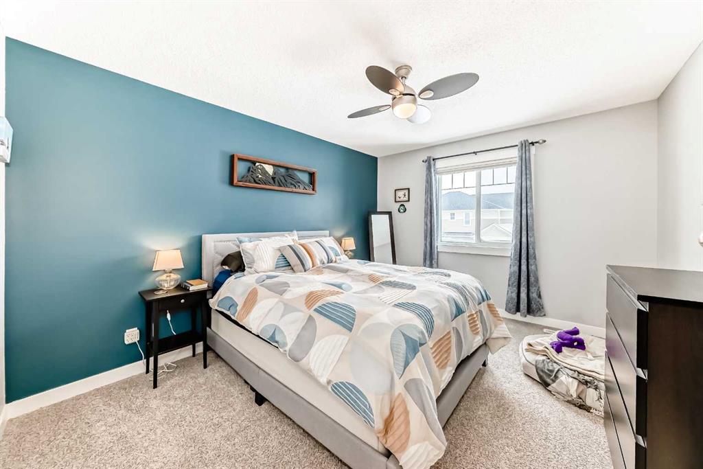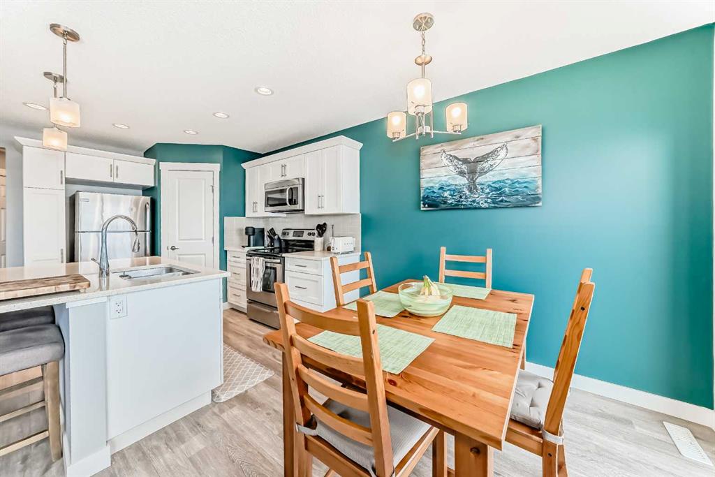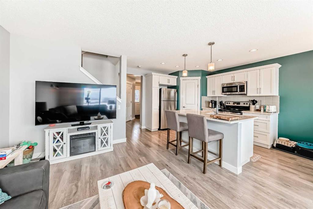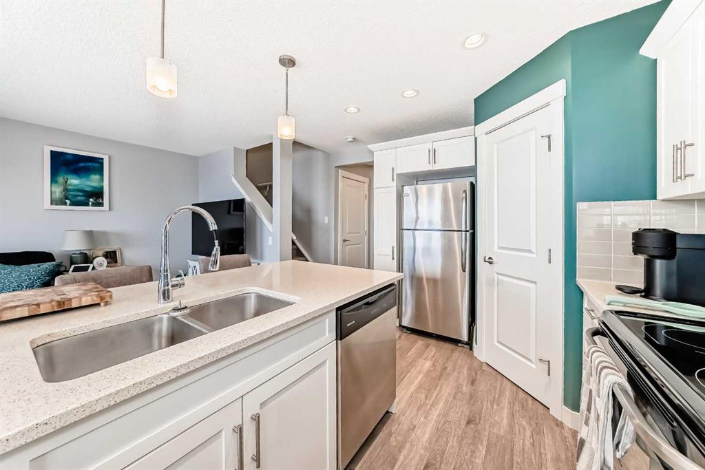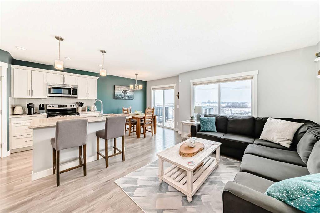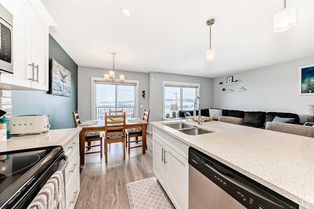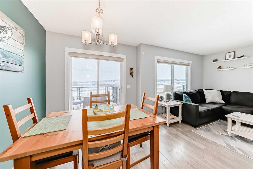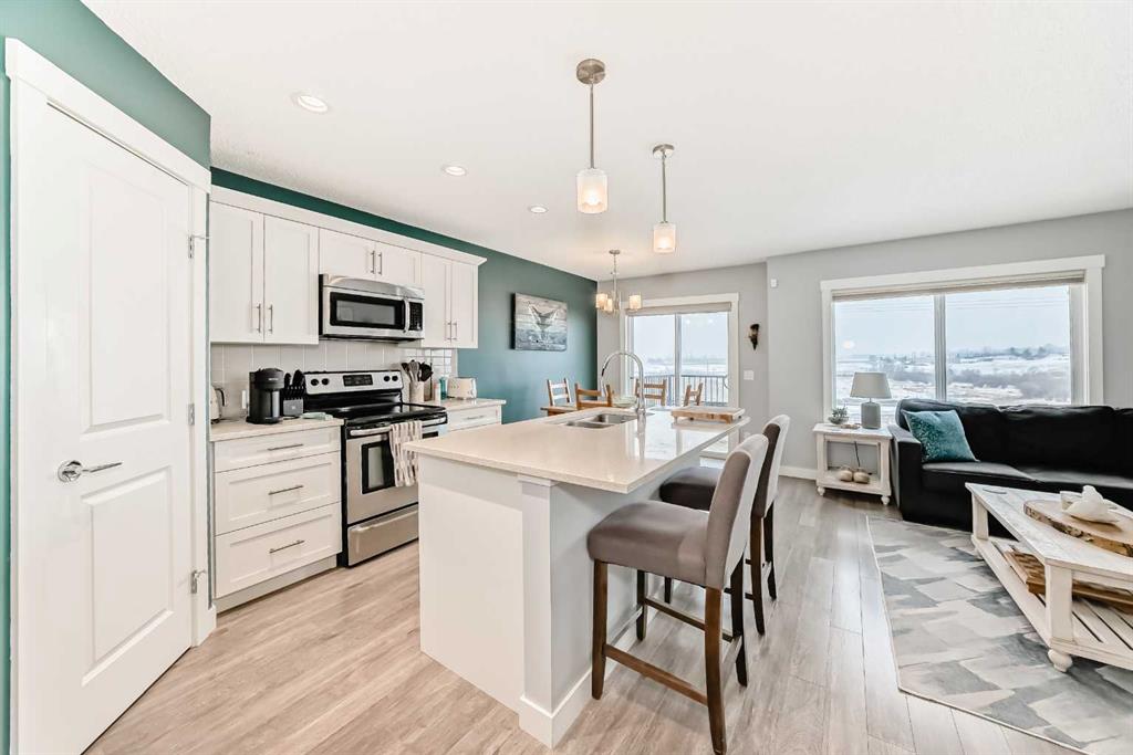 Welcome to this bright & beautifully designed 2-storey half duplex in the family-oriented community of Sunset Ridge! Featuring an open-concept main floor filled with natural light from large windows, this home offers stunning mountain & sunset views you’ll enjoy every evening. The kitchen is both stylish & functional with stainless steel appliances, quartz countertops, a corner pantry, & a seamless flow into the dining & living areas-perfect for everyday living & entertaining. Patio doors lead from the dining room to a west-facing deck, ideal for summer BBQ’s, while a convenient main floor half bath adds extra comfort for guests. Upstairs you’ll find 2 spacious bedrooms plus a den/office that could easily be converted into a third bedroom, along with 2 full bathrooms, a laundry room, & Brand New Carpet. The unfinished walkout basement (separate entrance) with rough-in plumbing for a future bathroom offers endless potential for future development. Outside enjoy a fenced yard with a covered patio & a single attached garage for added convenience. Located in sought-after Sunset Ridge, close to schools, parks, & scenic walking pathways-this home truly offers the perfect blend of comfort, views, & future potential.