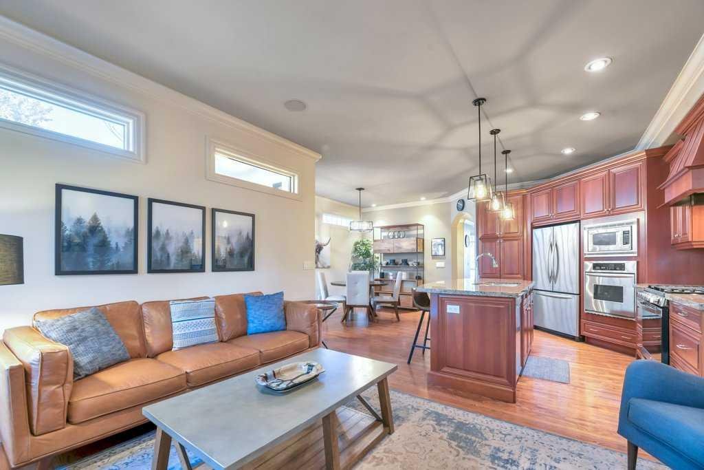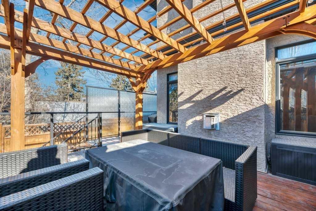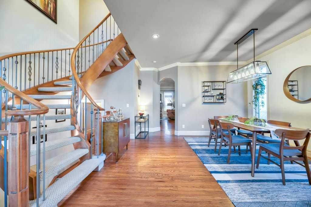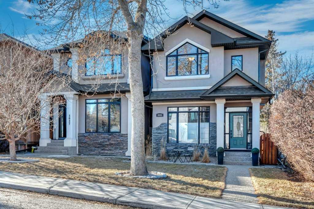 This beautifully crafted custom home showcases timeless architecture, refined finishes, and a highly functional layout, ideally situated on a quiet street with convenient access to schools, parks, and transit. Designed for both elegant entertaining and comfortable everyday living, this residence offers an exceptional balance of style and substance. The inviting foyer opens to formal living and dining areas highlighted by gleaming hardwood floors and soaring 9-foot ceilings, setting a sophisticated tone throughout the open-concept main level. The chef-inspired kitchen is a standout, featuring granite countertops, an oversized central island, stainless steel appliances including a new gas range (2023), wall oven, and tiled backsplash. The kitchen flows seamlessly into the dining nook and family room with fireplace, creating an ideal space for hosting or relaxed evenings at home. A striking curved staircase leads to the vaulted upper level, where the king-sized primary retreat offers a true executive escape. The spa-inspired ensuite features double sinks with granite counters, a soaker tub, a large separate tiled shower, and a three-sided fireplace shared with the bedroom. A generous walk-in closet completes this private sanctuary. Two additional well-appointed bedrooms and a full 4-piece bathroom complete the upper floor. The fully developed basement extends the living space with a bright family and recreation room, an additional spacious bedroom, and a full bathroom—ideal for guests, a home office, or extended living. A newer mudroom addition (2022) leads to a professionally designed deck with pergola, also completed in 2022, offering an elegant outdoor setting for entertaining and relaxation. The landscaped yard, paved lane, and double detached garage provide both functionality and convenience. Meticulously maintained with extensive upgrades, this home reflects true pride of ownership, including new shingles, downspouts, and gutter guards (June 2025), a new electrical panel and wiring (Nov 2025), updated main-floor lighting (Apr 2021), and new upstairs and basement bathroom fixtures (July 2024). A complete list of improvements is available in the Supplements. An exceptional opportunity for the discerning buyer seeking quality, comfort, and quiet sophistication—book your private showing today.