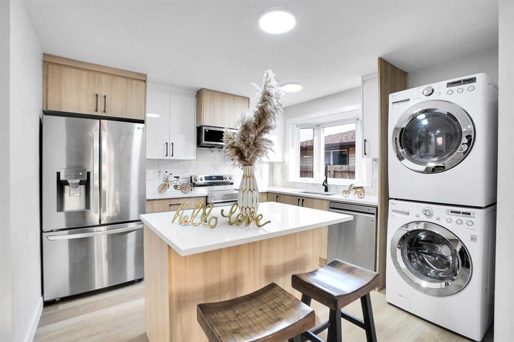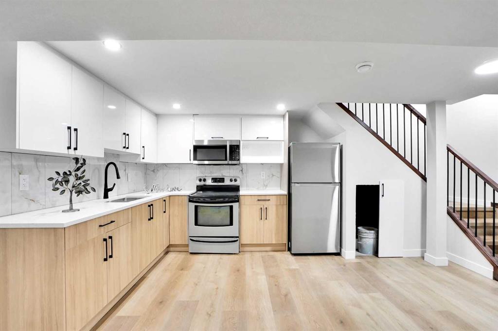 As you step inside, you’re greeted by a spacious foyer that opens into a bright and inviting floor plan. The modern kitchen boasts stainless steel appliances and seamlessly flows into the living and dining areas. A stylish feature wall adds character, while large windows fill the home with natural light, creating a warm and welcoming atmosphere. The main floor is complete with 3 generously sized bedrooms and a 4-piece bathroom.