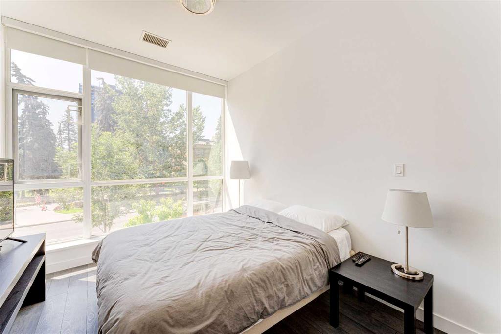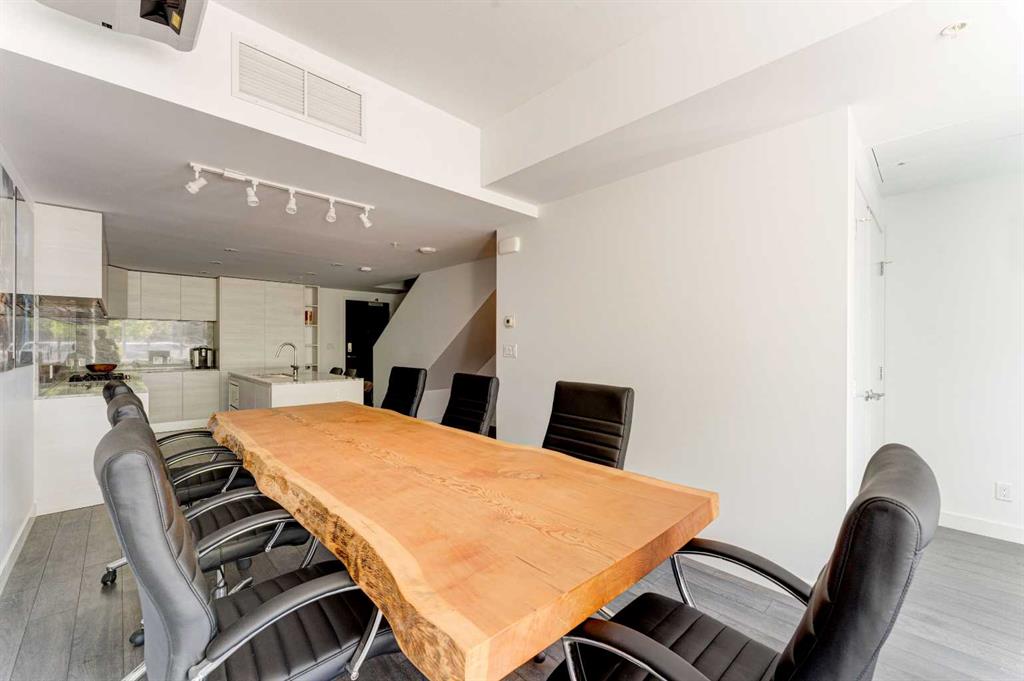 Step into a one-of-a-kind opportunity at Park Point with this concrete built commercial/residential zoned townhome of the complex featuring 1227 sqft, walk up street level. This unique offering is one of only eight units like this in the entire complex. This stunning unit offers the flexibility to combine both living and working areas to suit your needs. This multi-level townhome features 2 bedrooms and 2.5 bathrooms 2 titled parking spaces, storage and more. With street access on and a front patio that leads to an open concept main floor, you have plenty of space for entertaining and enjoying inner city life creating a fantastic floorplan that suits your lifestyle. The kitchen is well-appointed with ample counter space, making it ideal for both entertaining and unleashing your culinary talents. On the second floor, you’ll discover two double primary suites, each with its own private en-suite bathroom on ensuite with double vanities, shower and bath and the other a 4-piece plus upper floor laundry in the hall. This home comes with the added convenience of two titled underground parking stalls and storage. Park Point offers a host of amenities, including a 24-hour concierge, the 2nd floor Zen terrace, a hospitality room with outdoor amenities and a fire pit, and a fully equipped fitness center, providing you with the best of both worlds, whether you’re seeking a business space or a residential home. Centrally located in the heart of the Beltline, with easy access to downtown, 17th Ave, and 1st Street amenities, this property offers the perfect blend of convenience and space. Don’t miss out on this one-of-a-kind opportunity.