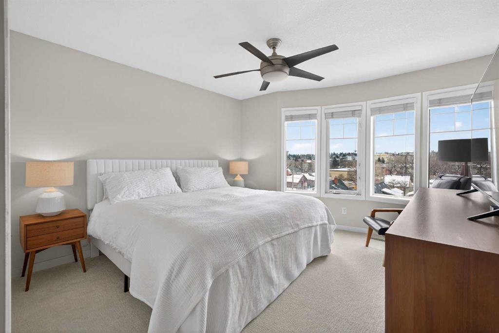 Why settle for an ordinary condo when you can have the space and feel of a townhouse without the townhouse price tag? This rare PENTHOUSE TOP FLOOR two-storey home in the vibrant community of Sunalta delivers the best of both worlds: the lock-and-leave convenience of a condo with the comfort and flow of a multi-level floor plan. This sunlit home blends inner-city convenience with everyday comfort. The main level invites connection and ease, with an open living and dining space featuring brand-new luxury vinyl plank flooring & neutral colour palette. This space is perfectly designed for cozy nights in by the fireplace or hosting friends before heading out to nearby restaurants and nightlife. The kitchen strikes a balance of stylish and practical with granite counters, maple cabinetry, and timeless subway tile – a backdrop equally ready for quick weekday dinners or weekend culinary experiments. Step out onto the south-facing balcony for your morning coffee or a glass of wine at sunset. This is the perfect urban retreat. Head upstairs and you’ll find brand new carpet with upgraded 8 lbs underlay that carries through two well appointed bedrooms tucked away from the bustle below, both with skyline glimpses that serve as a gentle reminder the pulse of downtown is just beyond your doorstep. A full bathroom connects the spaces, while smart design details keep the upstairs layout functional and inviting. Unlike most condos, this home surprises with a rare full laundry room – complete with extra storage, plus the peace of mind that comes with an updated furnace and hot water tank. Add in secure, heated underground parking and the exclusive feel of this smaller building, and you’ve got a property that stands out from the crowd. Set in a boutique building, you’re steps from the Sunalta LRT, 17th Avenue dining, shops, parks, and tennis courts. This home isn’t just a condo – it’s a lifestyle, with the urban energy you want and the space you didn’t think you’d find in the city.