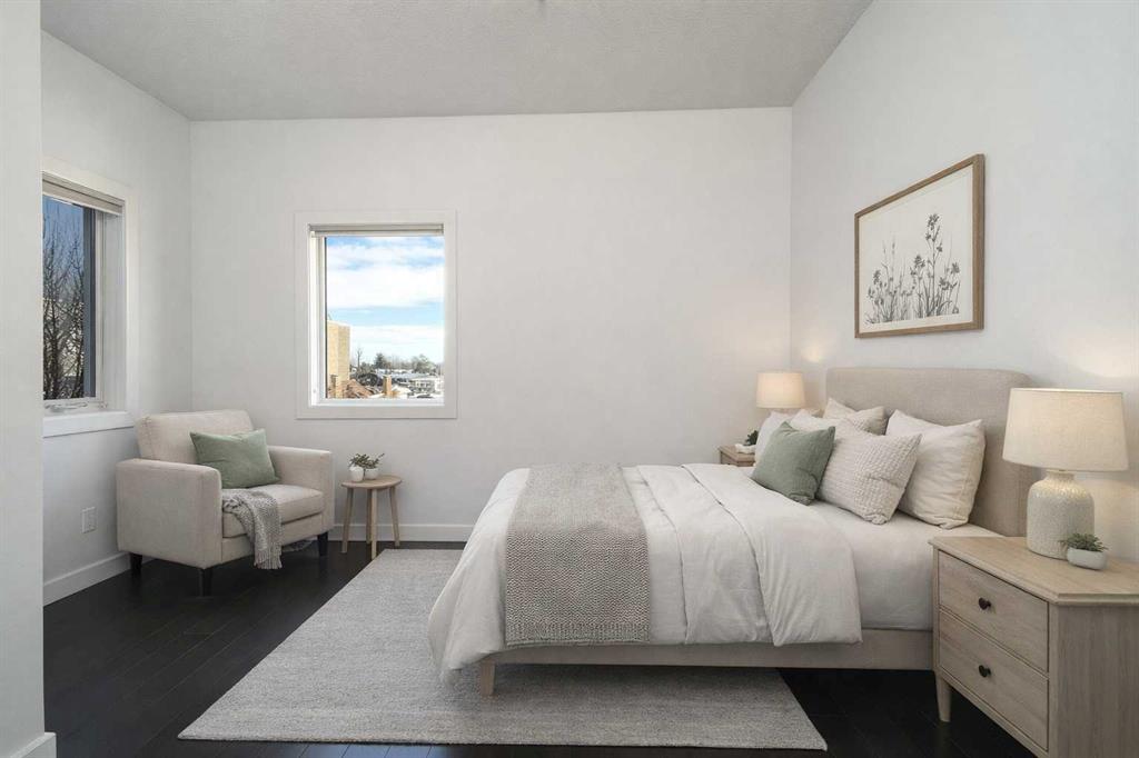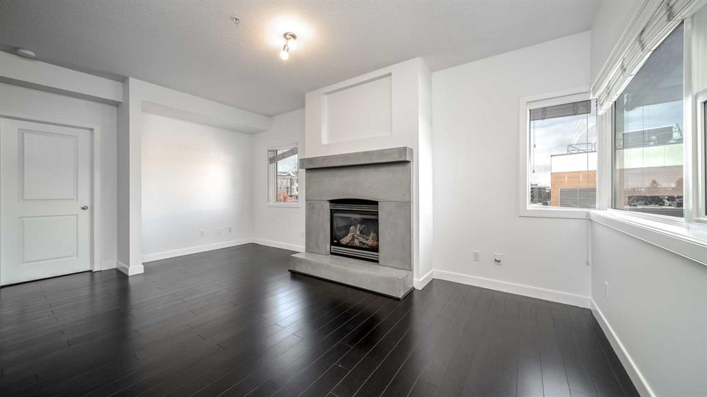 Incredible value in this stylish, urban chic, two bedroom condo, perfectly located in Lower Mount Royal! This lovely unit offers a bright, open plan, completely refreshed in a neutral palette and complimented by contemporary finishings throughout. The kitchen provides a sophisticated, yet functional vibe and includes granite counters, stainless appliances, large pantry and opens to a comfortable living/dining room with striking, concrete gas fireplace. The master bedroom comes complete with a large 4 piece ensuite bath and walk-in closet. The second bedroom is located on the opposite side of the unit, providing privacy and ease of access to main bath. Enjoy a spacious, NE facing balcony with spectacular downtown views, convenient in-suite laundry, luxurious in-floor heating, a huge, designated storage locker and one titled, underground parking stall. Inner city living at its best! Just steps to shopping, restaurants, transit and quick walk to the downtown. Welcome home!
