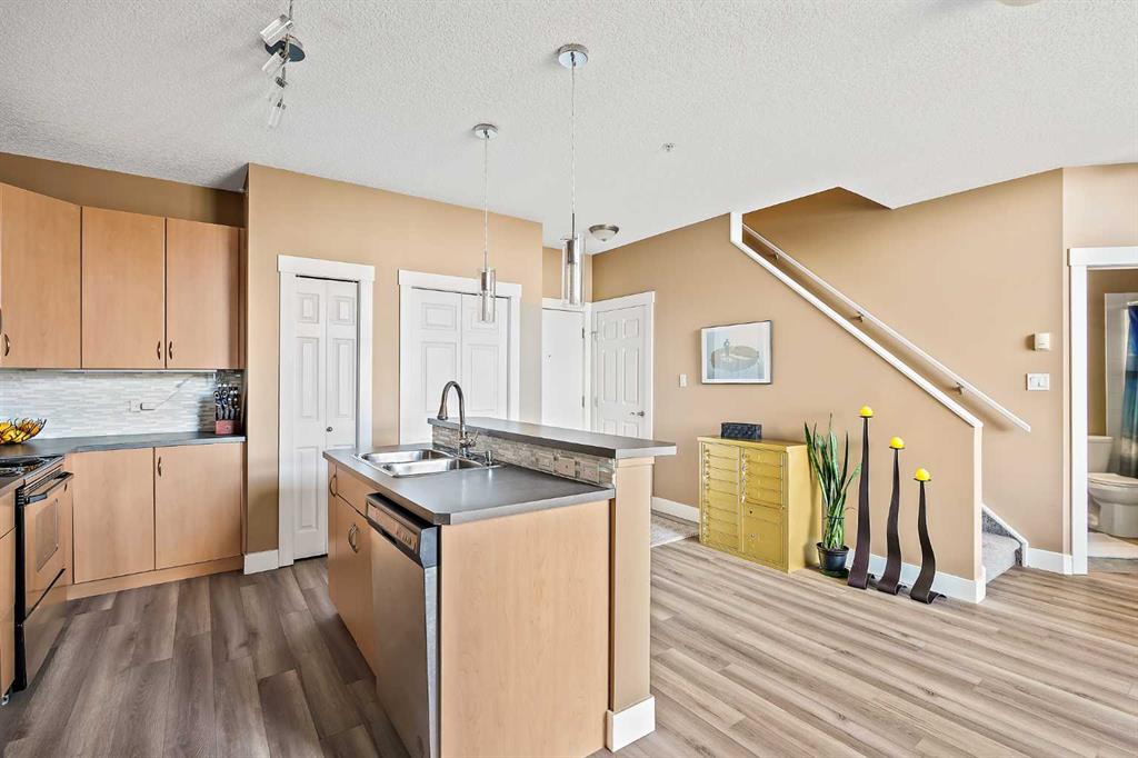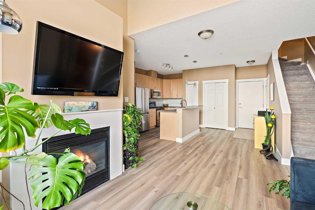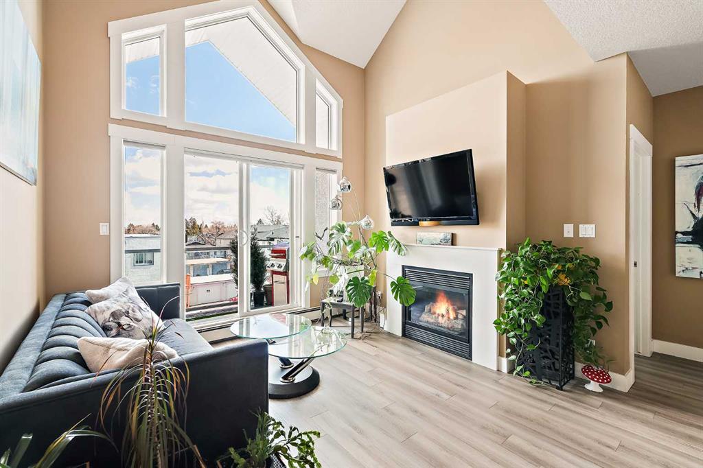 Welcome to loft living at its finest in the heart of Altadore. Perched on the top floor of the sought-after Copa Complex, this spacious 2-bedroom, 2-bathroom loft offers 1,162 sqft of elevated urban style, perfectly blending comfort, character, and an unbeatable location. Step inside and feel the difference soaring vaulted ceilings make, allowing natural light to pour in all day long and create an airy, open atmosphere. The main living space is warm and inviting, complete with a cozy gas fireplace, while the thoughtfully updated kitchen shines with new lighting, under-cabinet illumination, a new fridge, and new dishwasher, perfect for both everyday living and entertaining. The lofted upper level adds versatility and charm, featuring decorative wall cabinetry, making it an ideal space for a home office, lounge, or creative retreat. Both bathrooms are equipped with automatic fans, and practical upgrades like closet storage shelving and patio deck flooring enhance everyday convenience. Step outside to your private balcony and soak in the vibrant energy of Marda Loop… just steps from it all. Enjoy unmatched walkability with Avenue Thirty Four just blocks away, home to local favourites like Dopo, Penny Crown, Tat’s Treats, and Avitus Wine Bar, along with trendy boutiques, cafes, and more. Nature lovers will appreciate being within walking distance to River Park, Sandy Beach, and scenic green spaces. This pet-friendly (with board approval), well-managed building also offers heated underground parking with your own single stall, plus underground visitor parking for guests. As one of the largest units in the complex, this is a rare opportunity to own a standout loft in one of Calgary’s most dynamic communities. This is urban living done right: stylish, spacious, and right in the action.