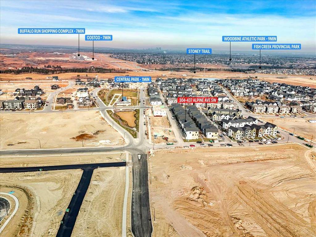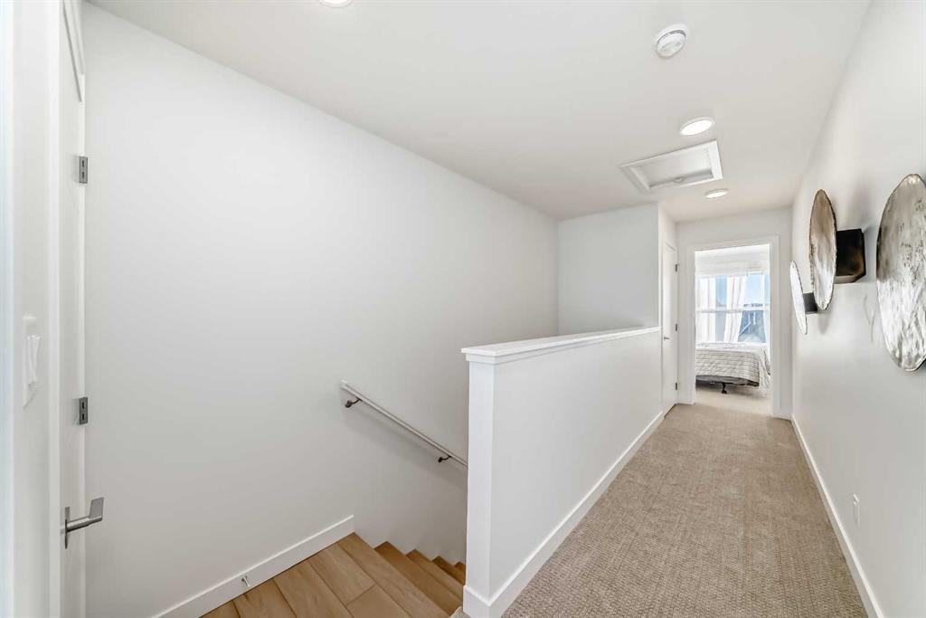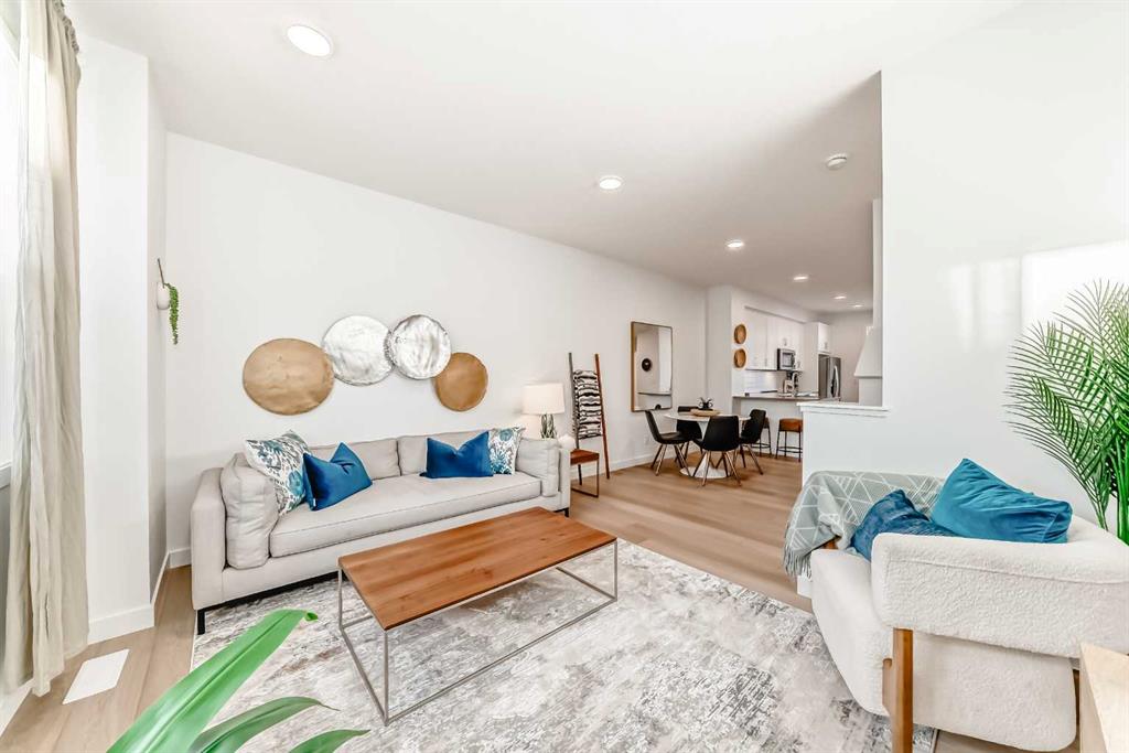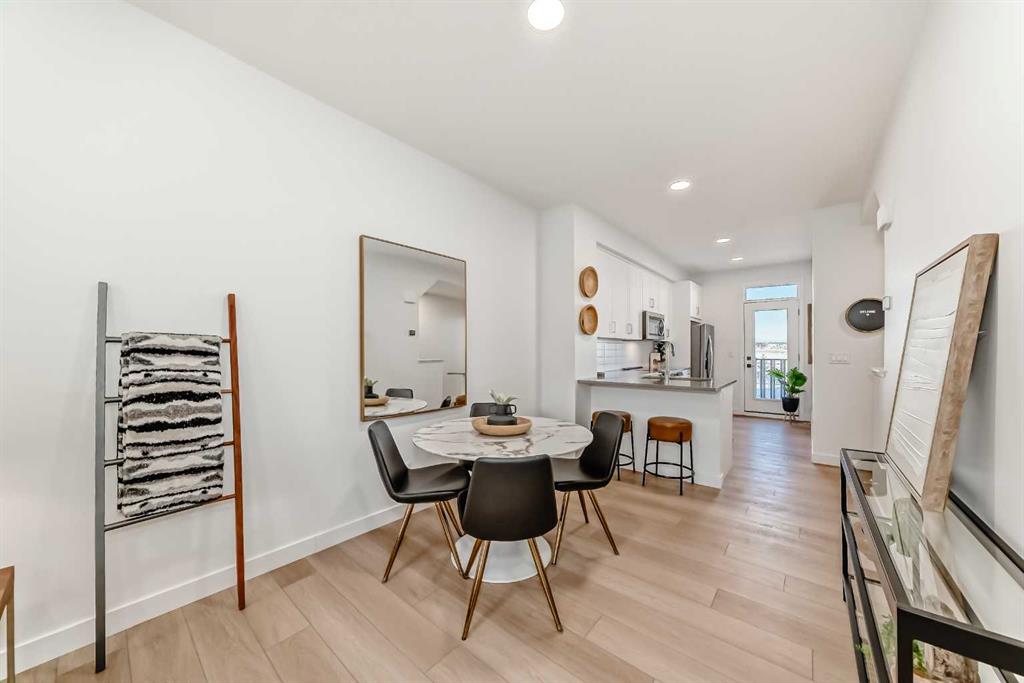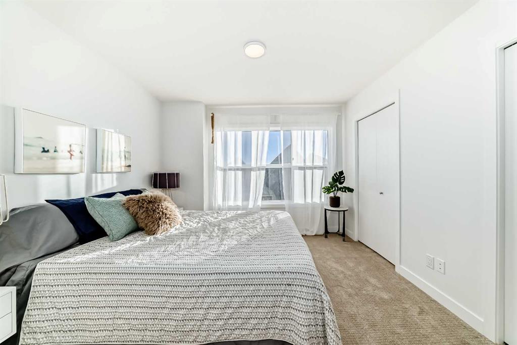 IF YOU’VE BEEN OVERLOOKING TOWNHOMES BECAUSE THEY ALL START TO BLUR TOGETHER, THIS ONE IS WORTH A SECOND LOOK. What sets it apart isn’t flash—it’s how intentionally the space is divided and how well it actually lives. This THREE-STOREY PLAN in Alpine Park is especially strong for buyers who want separation without wasted square footage. The entry level offers a FULL-SIZED DEN that truly functions—ideal for working from home, a bedroom for hosting guests, or creating space that doesn’t compete with daily living. A LARGE STORAGE ROOM and direct access to the SINGLE ATTACHED GARAGE quietly solve the practical pieces many townhomes gloss over. The main living level is open, calm, and well-proportioned. The kitchen anchors the space with warm white cabinetry, charcoal quartz, and a BREAKFAST BAR PENINSULA that handles real life without bottlenecks. Kitchen, dining, and living areas connect in a way that feels easy rather than compressed, and the FULL-WIDTH BALCONY adds genuinely usable outdoor space. Upstairs, DOUBLE MASTERS **TWO BEDROOMS—EACH WITH ITS OWN ENSUITE BATHROOM AND FULL-WIDTH CLOSET—**create flexibility that works for couples who don’t need a third bedroom, roommates who value privacy, or buyers thinking ahead to resale. Laundry is located on this level, right where you want it. With approximately 1,449 square feet above grade, modern construction, and the BALANCE OF THE BUILDER WARRANTY still in place, this home offers a low-maintenance entry into one of Calgary’s most design-forward west-side communities. Alpine Park continues to attract buyers who care about architecture, walkability, and long-term livability—and this plan fits that mindset precisely. This is a well-planned townhome, designed for buyers who want space to work, host, and unwind without compromise. If that sounds like you, THIS IS ONE YOU SHOULD SEE.