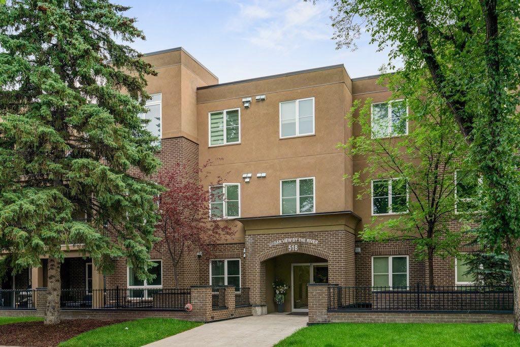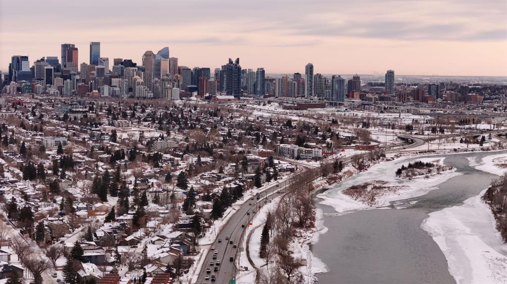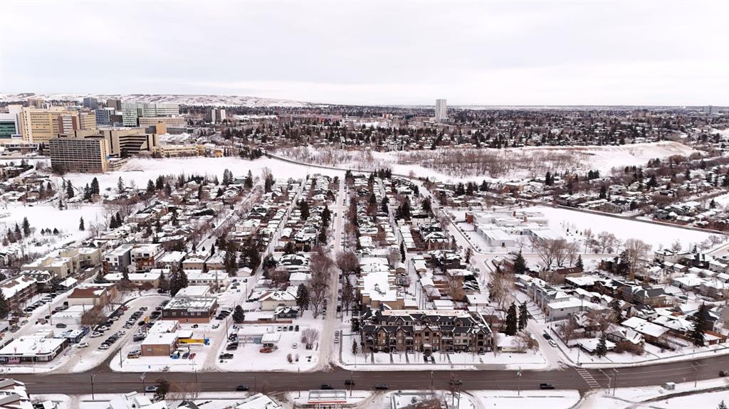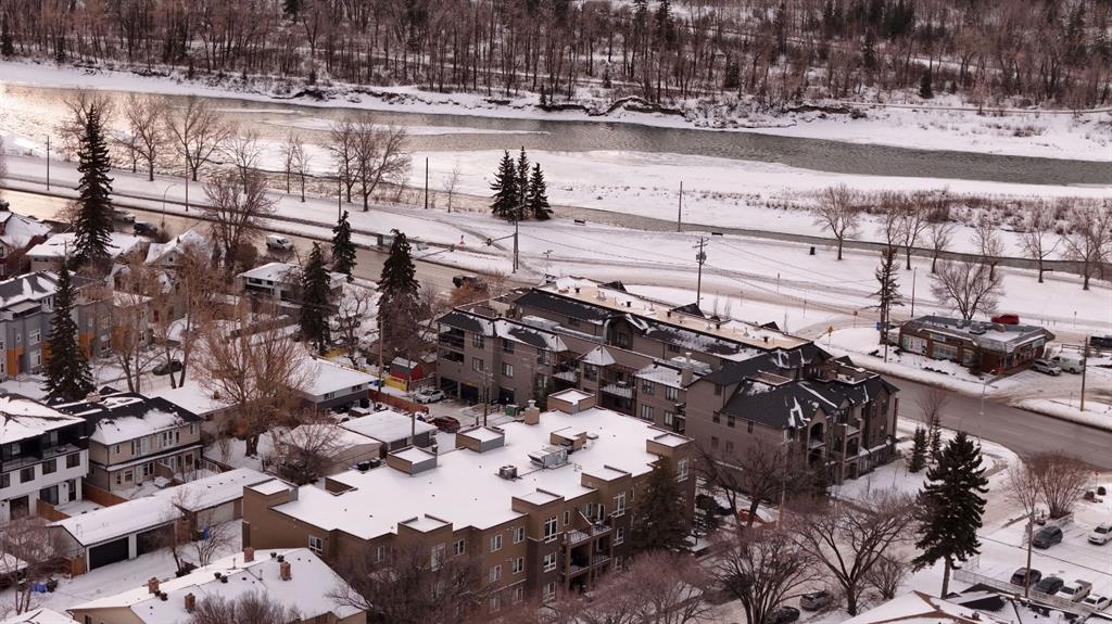 An exceptional penthouse residence in the heart of Parkdale. Positioned on the top floor, this rare offering spans over 1,000 sq. ft. and features two bedrooms, two bathrooms, two titled parking stalls, and a titled storage locker—a premium combination seldom found. Designed for both comfort and sophistication, the home showcases vaulted ceilings in the living room—a distinctive architectural feature exclusive to the penthouse level, creating an airy, light-filled atmosphere. In-floor heating, air conditioning with dual wall units, and full-size front-load in-suite laundry ensure year-round comfort and convenience. The kitchen and bathrooms are finished with double-slab granite countertops, refreshed white cabinetry, custom tile backsplashes, and LG stainless steel appliances, including a new electric range with air-fry functionality. Thoughtful upgrades such as added kitchen drawers for enhanced organization, modern vinyl plank flooring, a tiled fireplace surround, and freshly painted walls elevate the overall aesthetic. Neutral zebra blinds throughout and a motorized blind in the primary bedroom add a polished, contemporary touch. Step outside to a rare, east-facing, double-length patio, exclusive to this unit, complete with a gas BBQ hookup—perfect for morning coffee or entertaining. Additional amenities include secure underground guest parking, a car wash bay, and nearby free short-term street parking zones. The building is also outside the floodway and flood fringe zones and remained dry during the 2013 floods, offering peace of mind. Ideally located just one block from the Bow River Pathway system, and within walking distance to Foothills Medical Centre, the Cancer Centre, and major transit routes, this home is perfectly positioned for professionals. Enjoy effortless commutes to the University of Calgary, Children’s Hospital, Downtown, and Market Mall, with quick westbound access to Highway 1 for weekend mountain escapes. This is a rare penthouse opportunity that seamlessly blends elevated design, premium upgrades, and an unbeatable lifestyle location.