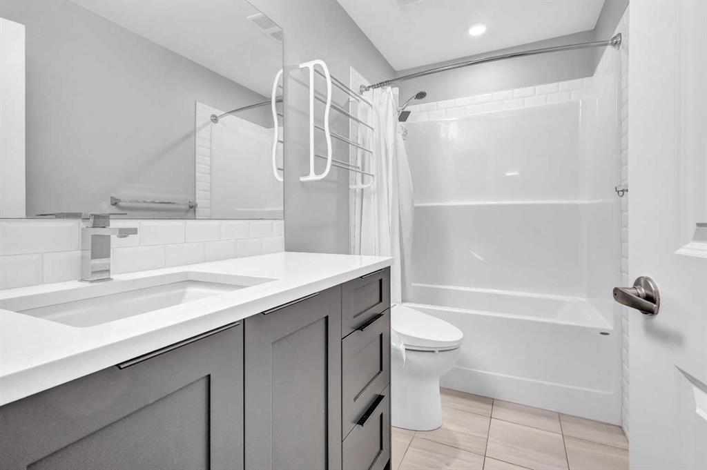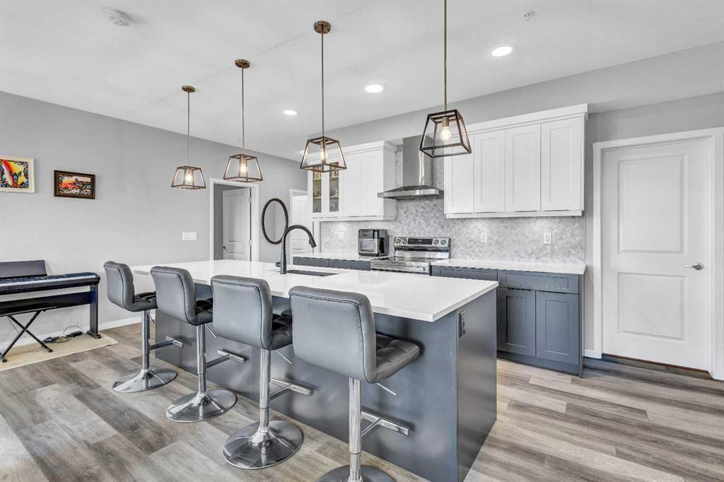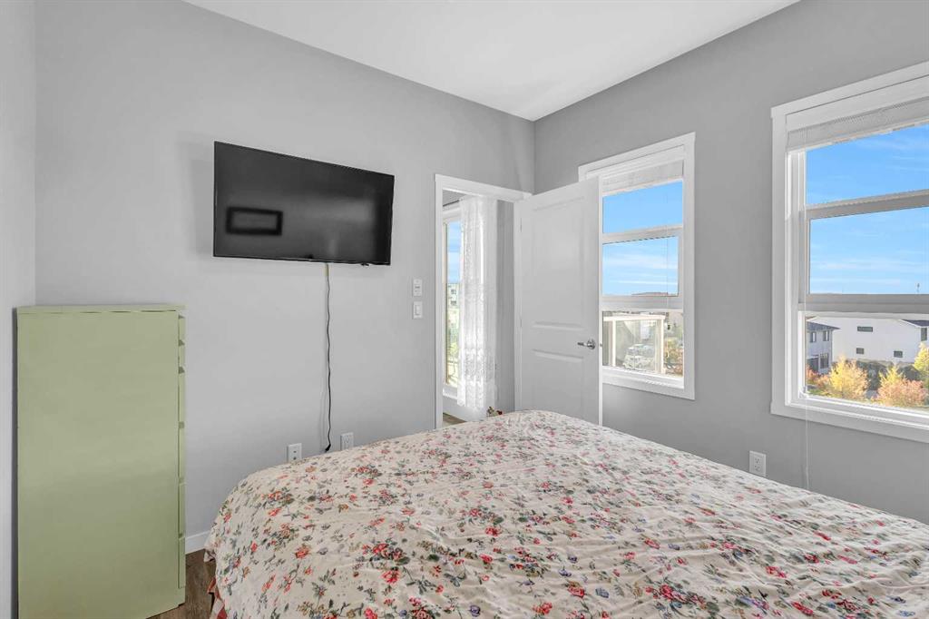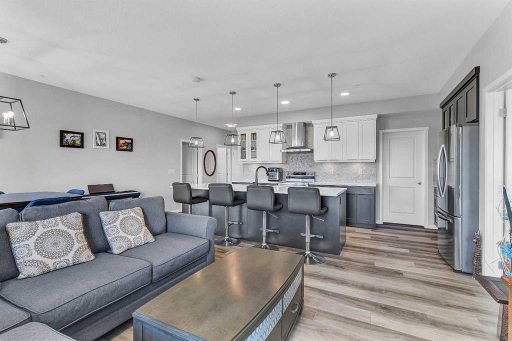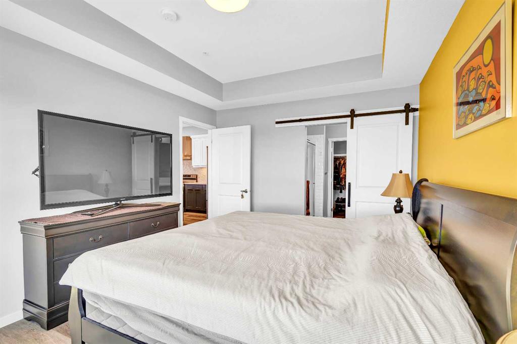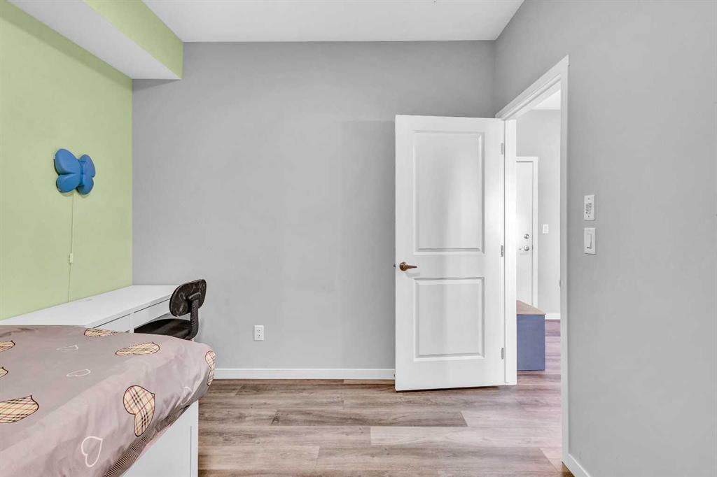 Welcome to this immaculate, like-new condo in The Rise, an award-winning building by Cedarglen Living.Offering THREE bedrooms, TWO bathrooms, and 1,165 sq. ft., this thoughtfully designed home combines modern finishes, functional living, and a low-maintenance lifestyle.The open-concept gourmet kitchen is a true highlight, featuring soft-close doors and drawers cabinets with sleek quartz countertops, a spacious pantry, and an oversized quartz island that’s perfect for entertaining. Modern stainless steel appliances—including a full-size fridge, stove, dishwasher, and built-in microwave—complete this well-appointed space. From the kitchen, the layout flows seamlessly into the bright and inviting living room, where nine-foot ceilings and expansive SOUTH-facing windows fill the space with natural light. The living area extends to a covered balcony with a BBQ gas line and scenic views, providing the perfect setting for morning coffee or evening relaxation.The primary suite is designed as a private retreat, complete with a generous walk-in closet and a spa-inspired four-piece ensuite. The secondary bedroom and versatile den offer flexibility for guests, a home office and are complemented by another full four-piece bathroom. A spacious laundry room with a handmade shelf and countertop adds both convenience and extra storage.This home is filled with upgrades, including luxury vinyl plank and tile flooring throughout, extended height cabinetry in the bathrooms and kitchen island, quartz countertops in both the kitchen and bathrooms, central air conditioning, and wall-mounted medicine cabinets in both bathrooms. A separate storage room and a TITLE underground parking stall with secure bike storage further enhance the convenience of this property.The Rise is surrounded by lifestyle amenities, including scenic walking paths, a pedestrian bridge, and a stormwater pond that create a peaceful setting for daily walks. The Harvest Hills community also offers HOA-managed amenities such as tennis courts and recreational spaces, while schools, playgrounds, parks, and the public library are just minutes away. Nearby shopping and dining options include Country Hills Towne Centre and Harvest Hills Crossing, with grocery stores, restaurants, a movie theatre, VIVO Recreation Centre, and T&T Supermarket all within easy reach. Quick access to Stoney Trail, Country Hills Boulevard, and Deerfoot Trail, along with just a 10-minute drive to Calgary International Airport, make this location as convenient as it is desirable. Meticulously maintained by the original owner, this home shows like new and offers a functional layout designed for both comfort and efficiency. With its blend of luxury finishes, vibrant community lifestyle, and prime location, this condo presents a rare opportunity in one of Calgary’s most sought-after neighbourhoods.Schedule your private showing today to experience the comfort, style, and convenience it has to offer.