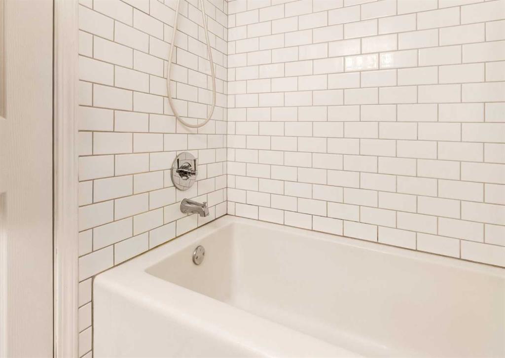 The spacious bedroom offers a peaceful retreat, located next to a well-maintained four-piece bathroom. One of the standout features of this home is the south-facing balcony, which runs the full length of the unit looking onto mature trees and great views—perfect for enjoying sunny mornings, evening sunsets, or simply relaxing outdoors. Generous four piece bathroom has been updated with a deep soaker tub and updated shower head.