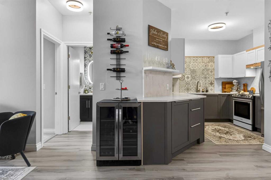 Welcome to this fully renovated top floor corner unit in the sought after community of Cedarbrae—arguably one of the best locations in the complex. With soaring vaulted ceilings and an east-facing exposure, this home is flooded with natural light, creating a bright, open, and airy feel throughout. Extensively updated with over $50,000 in renovations, this 2-bedroom, 2-bathroom home showcases a completely redesigned kitchen. Featuring two tone cabinetry, thick quartz countertops with matching quartz backsplash, a granite sink complemented by a convenient hot water on demand, and ALL brand new stainless steel appliances. The entire unit has been refreshed with luxury vinyl plank flooring throughout with premium acoustic underlay for enhanced soundproofing, fresh paint, and all new modern light fixtures, creating a cohesive, elevated aesthetic. Both bathrooms have been fully renovated with a clean, contemporary, spa-inspired feel, while the primary suite offers a walk-through closet with custom built-ins and a beautifully updated ensuite. The open concept living area is elevated by soaring vaulted ceilings, professionally refinished to a sleek flat finish, and centers around a cozy fireplace and flows seamlessly to the private east facing balcony, perfect for enjoying your morning coffee in the sun. Additional features include brand new washer and dryer, newly installed air conditioning , underground parking, storage, plus access to building amenities including a party room, exercise room, and bicycle storage. Located in the established community of Cedarbrae, residents enjoy convenient access to Southland Leisure Centre, Rockyview Hospital, shopping at Chinook Centre and Southcentre Mall, major grocery stores, parks, and scenic pathways. With quick connections to Stoney Trail and nearby transit options, commuting throughout the city is effortless. This is a true turnkey opportunity in a well-managed complex offering exceptional value with nothing left to do but move in and enjoy.