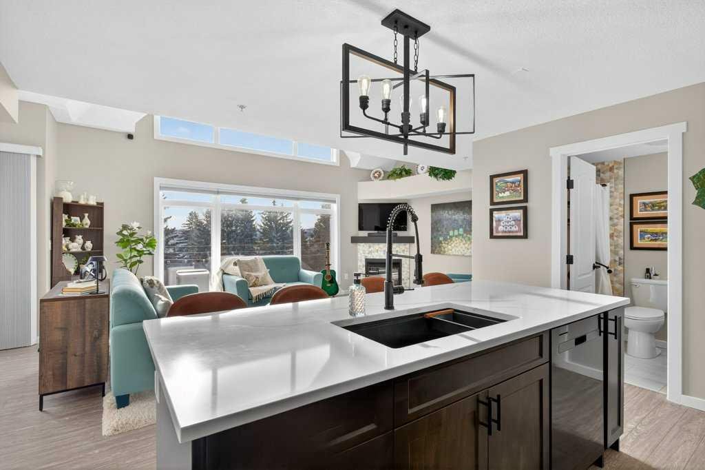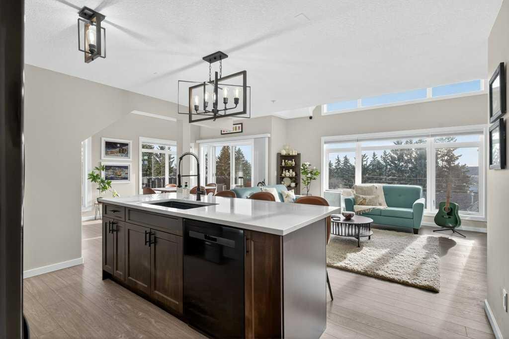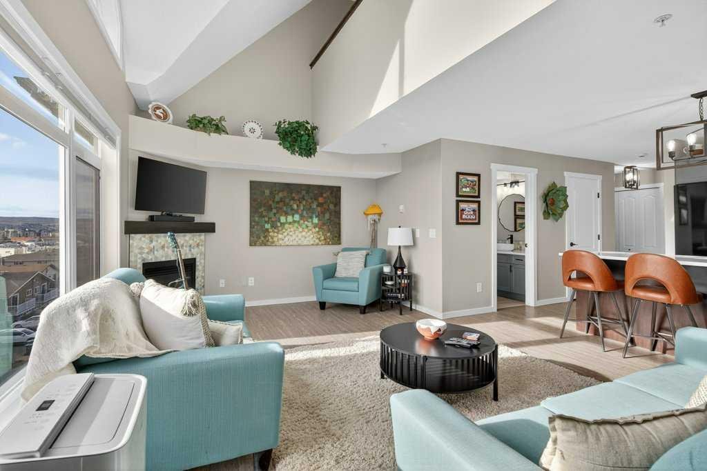Experience exceptional condominium living in this incredible multi-level residence at 141 Mountain Street—one of the largest layouts in the entire building. Set in a quiet corner on the south side of the building, this unique unit comes with two titled parking stalls and offers an impressive level of privacy and natural light. Vaulted ceilings and massive windows draw your eyes to a view to Cochrane, while the expansive wrap-around balcony provides a relaxing spot to enjoy a hint of the mountains.