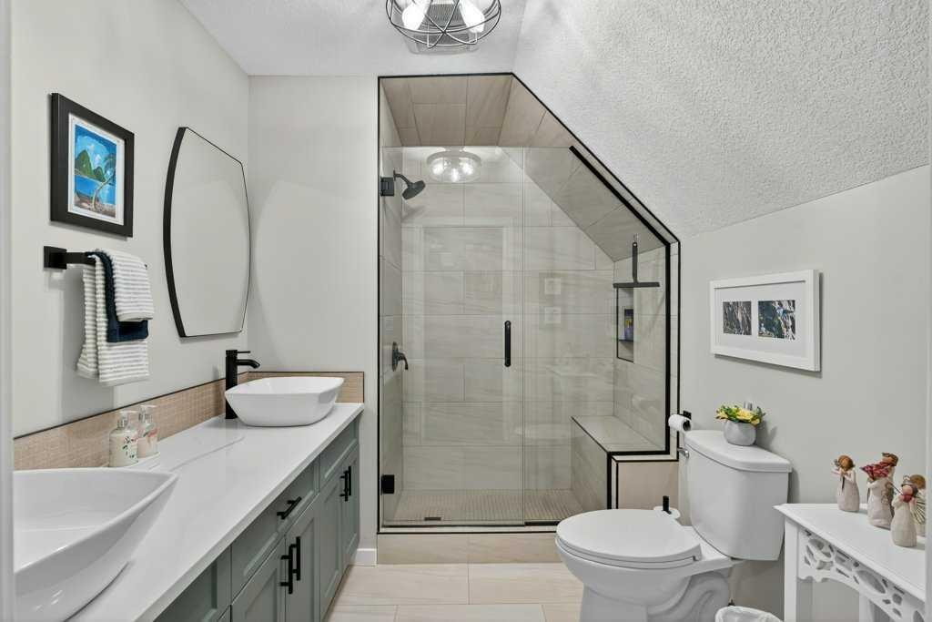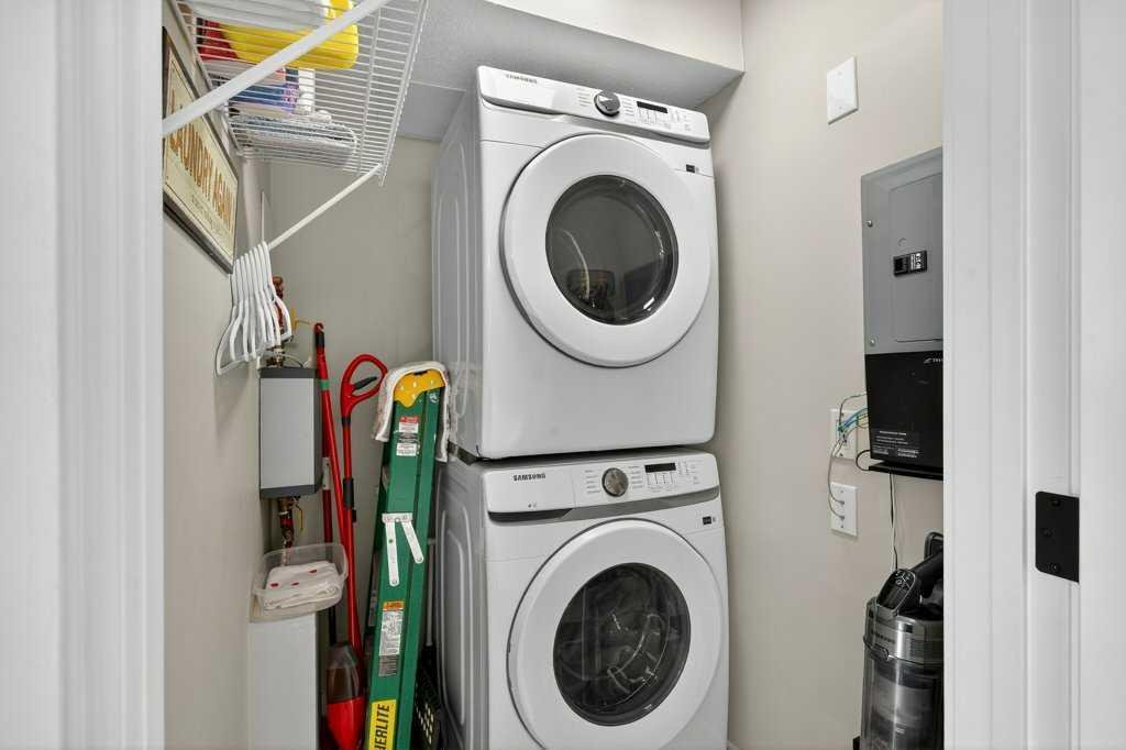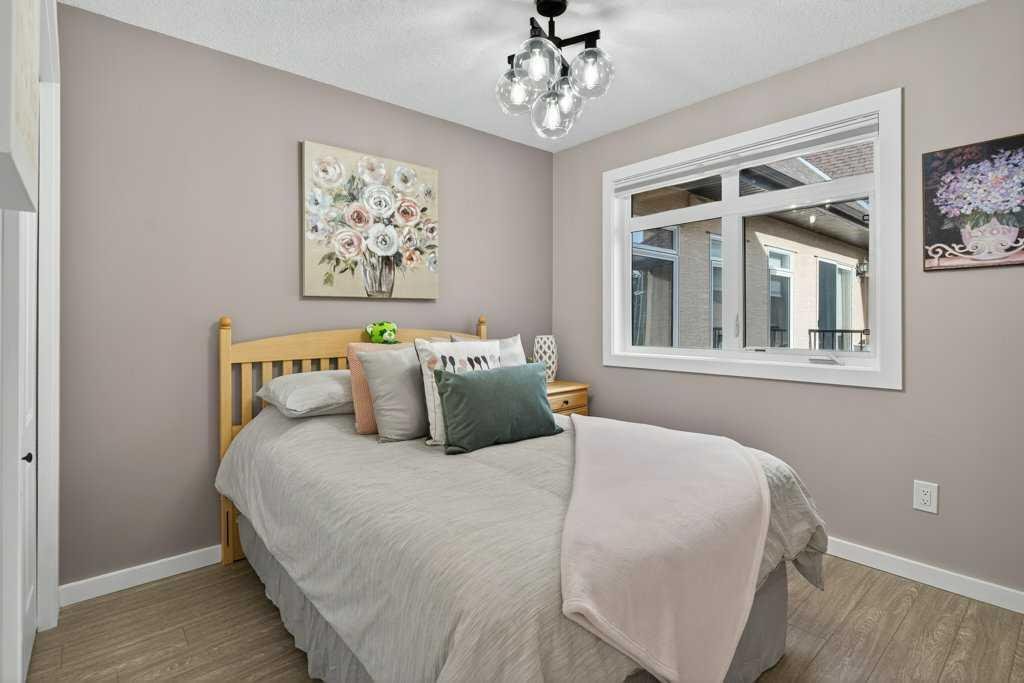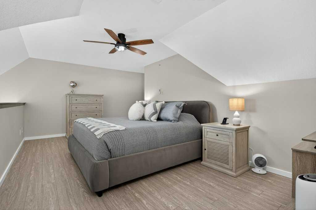 This level also includes a comfortable second bedroom, a 4-piece bathroom, and convenient in-suite laundry. Upstairs, the loft-style primary suite offers a peaceful escape with room for large furniture, a walk-through closet with exceptional storage, and a private 4-piece ensuite with dual quartz vanities.