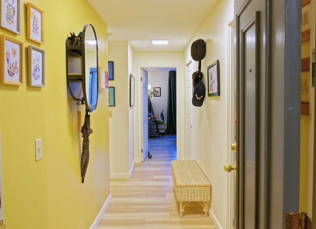 Check the 3D TOUR! One of Calgary’s most vibrant communities is home to this generously sized, sought-after CORNER UNIT in the fabulously refreshed CLASSIC Riverscape Condominiums. This 2-bedroom, 2-bath abode offers just under 1,100 sq. ft. of stylish, feel-good living space. Redesigned in 2023, it features a designated modern kitchen with white cabinetry, quartz countertops, and sleek stainless steel appliances—a dream setup for anyone who loves to cook. Overlooking the dining area, the layout flows nicely into a spacious living room that opens onto an immense wrap-around balcony tucked among the trees—perfect for morning coffee, evening liqueur, or those quiet, special moments in between. Wide-plank vinyl flooring runs throughout. The primary suite feels wonderfully spacious, with a walk-through closet leading to a 4-pc ensuite featuring a striking Travertine marble countertop. Down the hall, a second 4-pc bath with matching finishes complements the additional bedroom. A surprisingly large laundry/storage area adds welcomed convenience. This unit includes one assigned underground parking stall and separate storage. Residents enjoy a fitness room adjacent to a shared outdoor patio, while landscaped grounds lead to the Elbow River pathways and the lively 4th Street corridor—home to cozy cafés, brunch spots, restaurants, and boutique shops. With nearby transit, river pathways, and quick access to 4th Street, 17th Avenue and Downtown, this location truly has it all ( get yer steps in!). Experience living in one of Calgary’s most iconic and walkable communities. Don’t miss this—the VIBE is real. :)