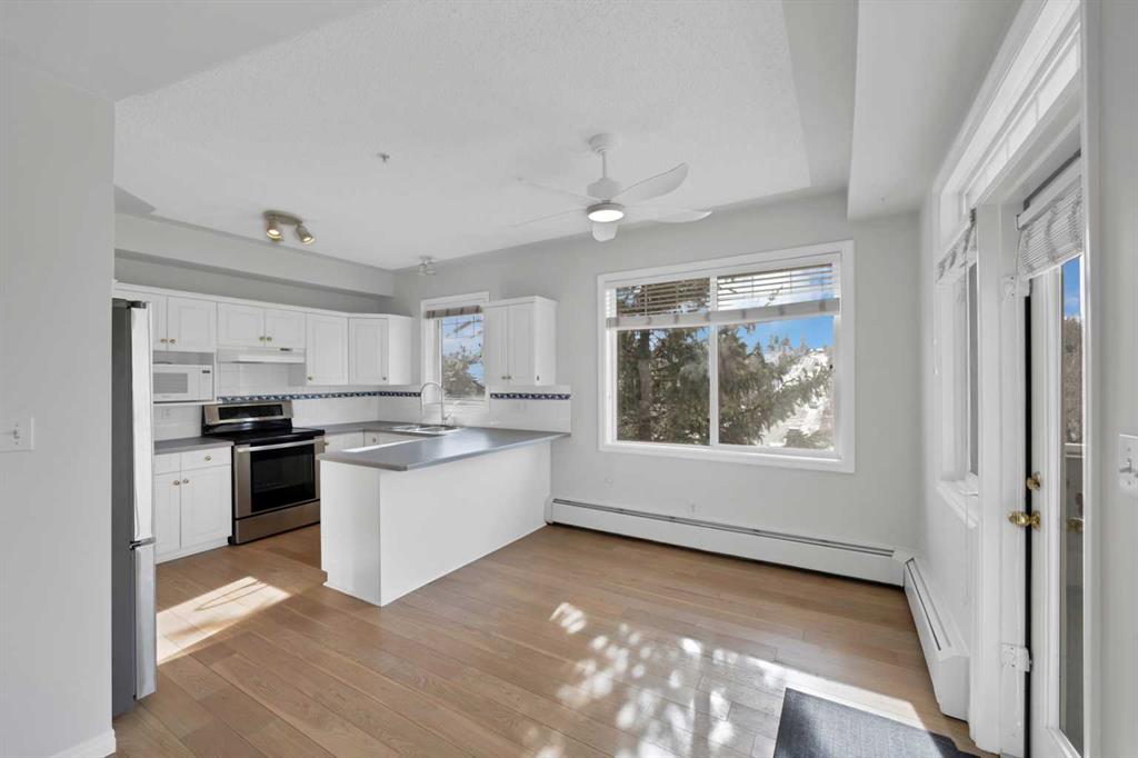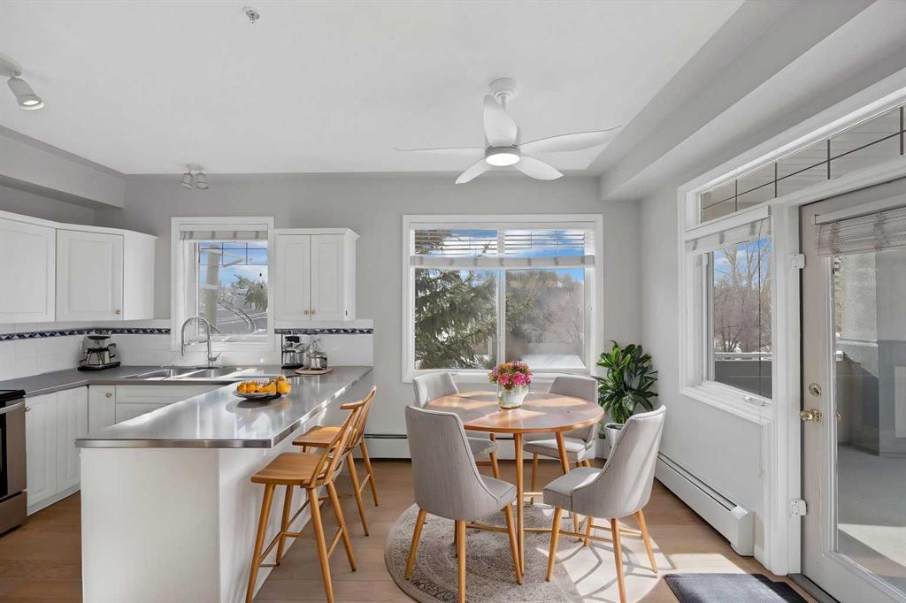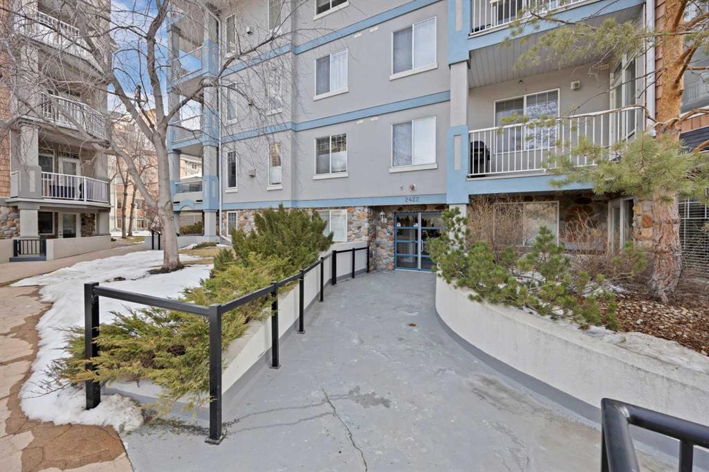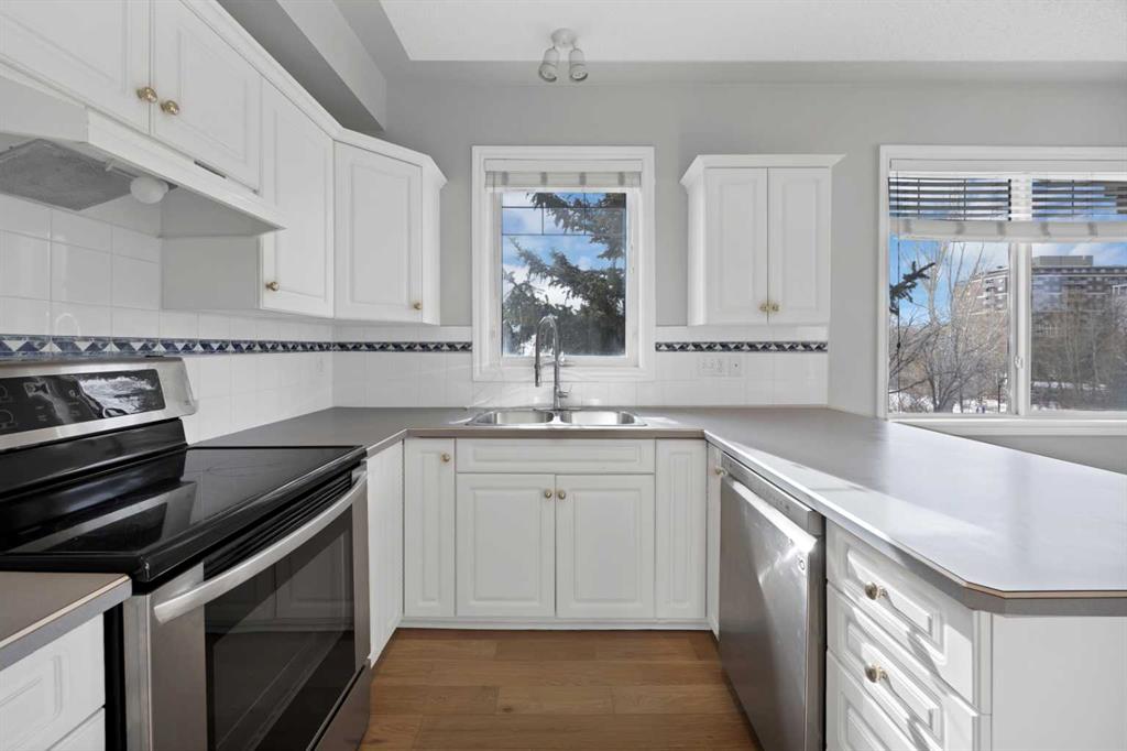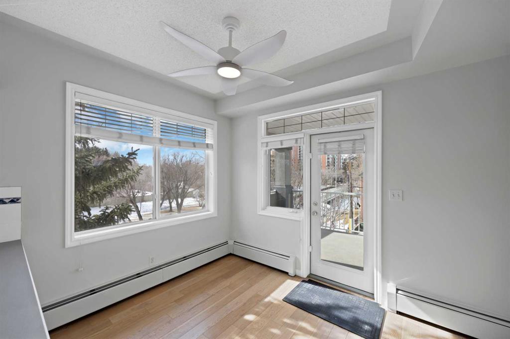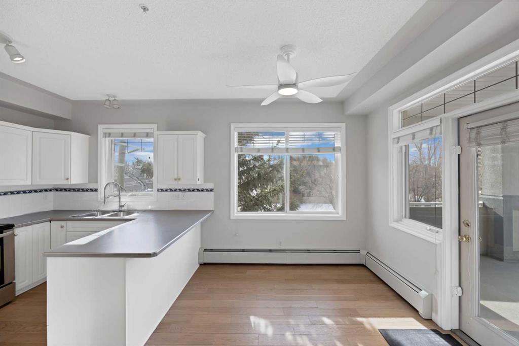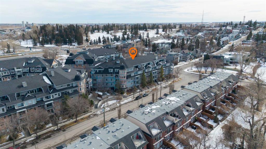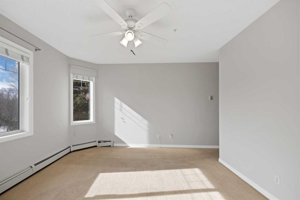 Welcome to this corner unit with River and skyline views from this spacious two bedroom, two bathroom condo in The Waterford of Erlton, offering over 1,100 sq. ft. of living space on the third floor featuring 2 titled underground parkings. The open concept layout features 9 ft. ceilings, updated hardwood flooring, and a bright living area with a gas fireplace. The kitchen is equipped with upgraded stainless steel appliances and ample cabinetry. Both generously sized bedrooms include their own ensuite bathrooms and large walk-in closets. Additional features include a large covered balcony with separate storage overlooking the Elbow River, as well as a dedicated in-suite laundry room with washer and dryer. The unit also comes with two heated underground parking stalls. Building amenities include bicycle storage, a car wash bay, visitor parking, and a reservable courtyard pavilion with a party room for larger gatherings. Ideally located within walking distance to the MNP Community & Sport Centre, the Saddledome, Mission District restaurants, 17th Avenue, East Village, and downtown. Convenient access to public transit with the Erlton LRT Station located directly across the street.