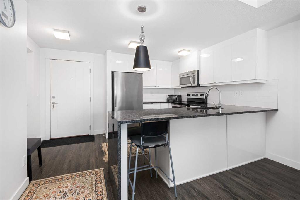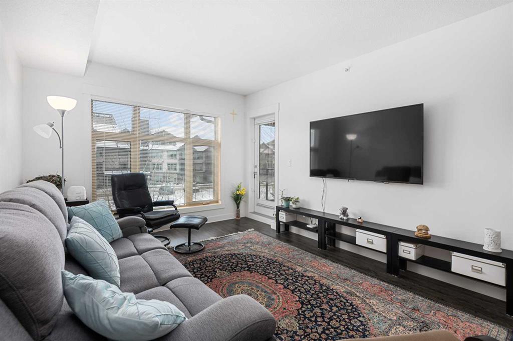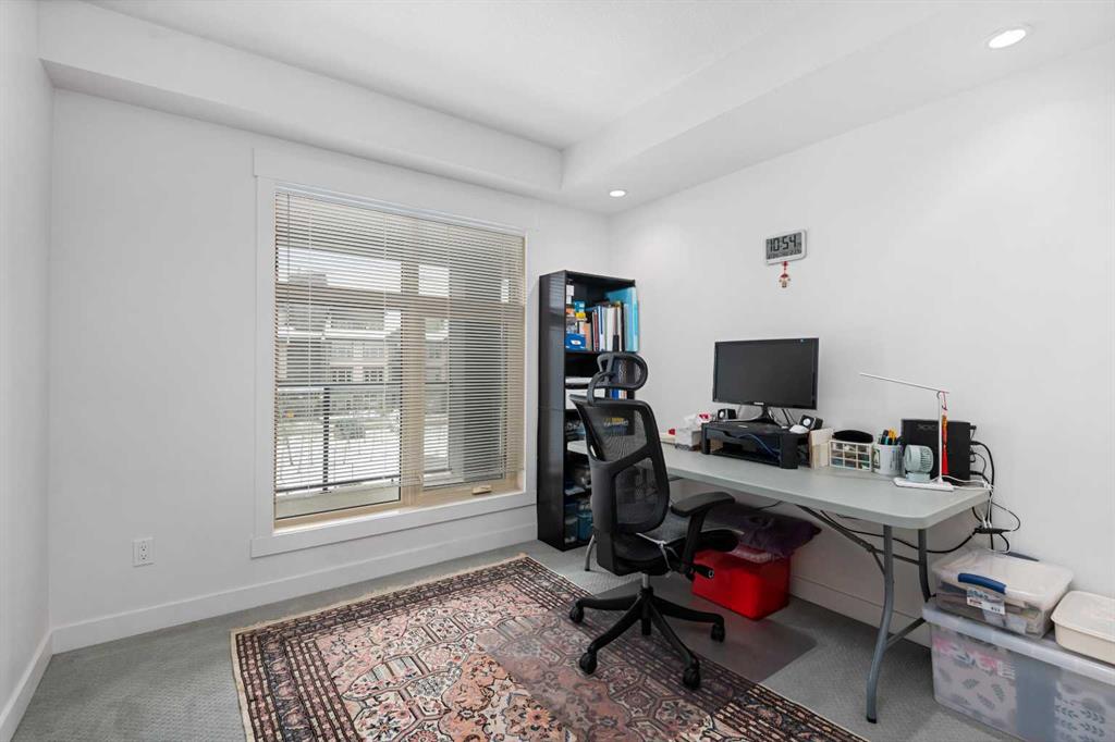 Welcome to Valmont at Aspen! This bright spacious 2 bedroom – 2 bath unit faces SW allowing for plenty of natural light and afternoon/evening sun year around. The well appointed kitchen has plenty of cabinets, stainless appliances, granite counters with waterfall feature and a unique breakfast bar table-top island with seating for 2 and overlooks your large living room. The living room has a door leading to your covered SW facing balcony which overlooks the central green space. There are 2 good sized bedrooms perfect for sharing or guests. The primary bedroom can accommodate a king sized bed and has a walk-through closet leading to the ensuite which has 2 sinks, granite counters, soaker tub and separate shower. The second bedroom is adjacent to the main bath which also has 2 sinks and granite counters. The insuite laundry room has plenty of storage space, plus you have an assigned storage locker. You also have 2 titled parking stalls, 1 in the underground heated parkade and 1 surface stall. The Valemont has a fitness gym and secured bike storage plus is a pet friendly building (with board approval). Just a few steps and you are accessing the walking and bike paths around Aspen Woods Lake. You are also within walking distance of shopping, transit and LRT stop, not to mention you have great access to major throughfares making commuting around the city a breeze. Don’t miss out on this amazing home!