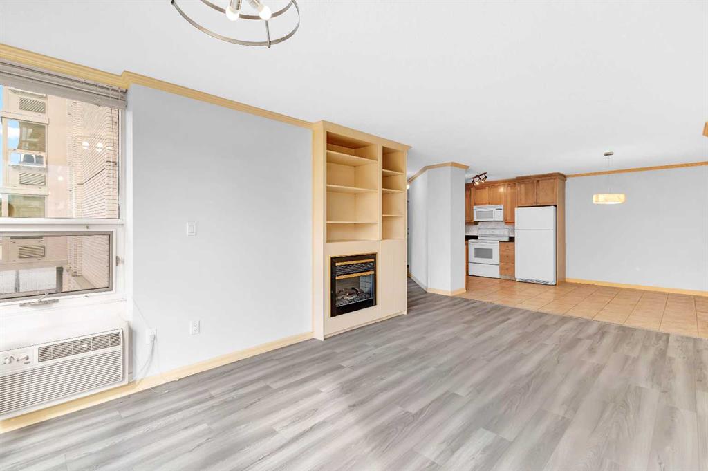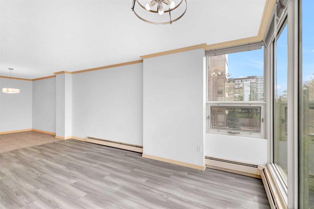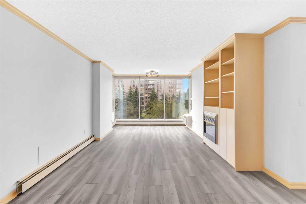 Large condo with A/C and Condo Fees that include everything (including electricity, hot tub, pool and steam room!) in the sought-after Varsity offers bright, south-facing views and a beautifully maintained open-concept layout. Recently painted and featuring brand-new flooring, this 2-bedroom, 1-bath home includes a spacious living room with a cozy fireplace and built-in window air conditioning, a welcoming dining area, and a well-appointed kitchen with a full appliance package. Enjoy the convenience of in-suite laundry with a storage area, plus a heated underground parking stall and an additional storage unit. The amenities here are exceptional. Residents enjoy access to an underground car wash, indoor pool, sauna, fitness centre, greenhouse, and outdoor mini-golf. The entertainment lounge includes card tables, a pool table, shuffleboard, and darts, perfect for social gatherings. When the weather is nice, there are also plenty of outdoor spaces throughout the complex to relax and enjoy. Varsity Towers is ideally located near Market Mall, the University of Calgary, Foothills Hospital, the Children’s Hospital, and the new University District with shops, restaurants, and major roadways just minutes away. Condo fees include all utilities, including electricity. This is a beautiful condo in a very well-maintained complex, located in one of the most desirable parts of the city. Rarely available, so call your favourite Realtor® today and come see this one!