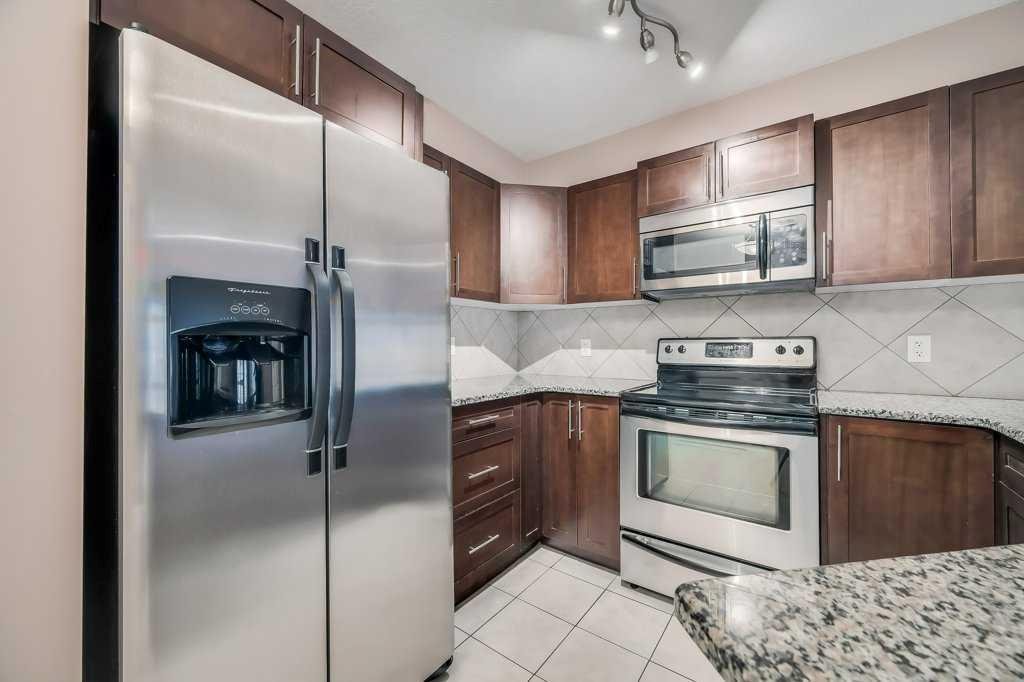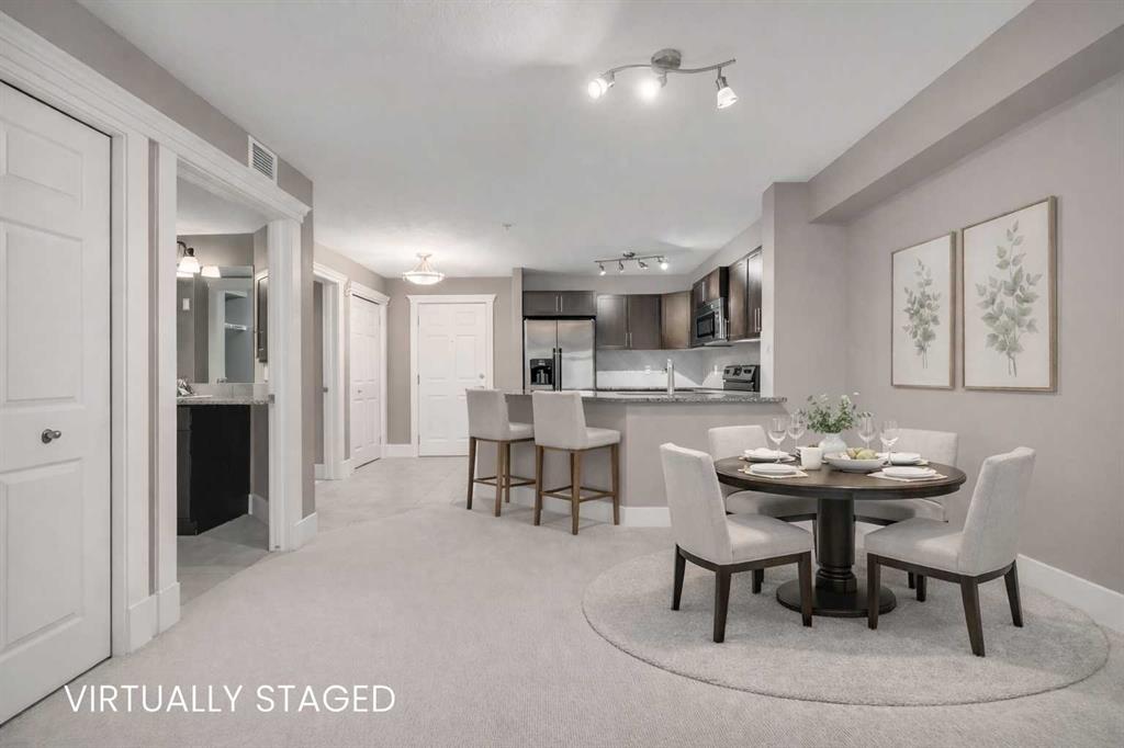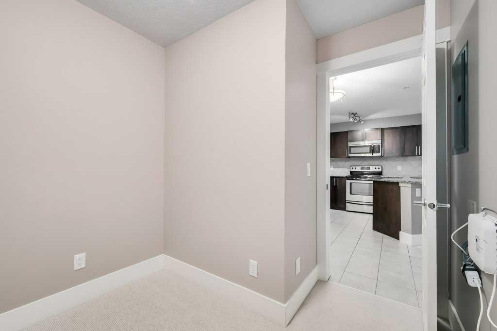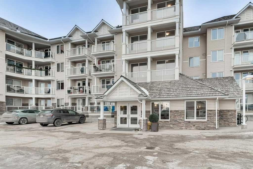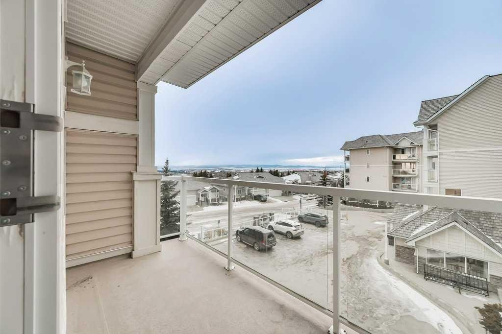 Welcome to this 3rd-floor condo in the desirable community of Rocky Ridge with unobstructed west-facing views of the Rocky Mountains. This well-maintained 1-bedroom plus den unit features a functional open-concept layout, ideal for first-time buyers, downsizers, or investors. The pet-friendly complex offers secure underground resident parking along with ample visitor parking. The kitchen is finished with granite countertops, upgraded cabinetry, stainless steel appliances—including a new dishwasher, sink, and faucet, opening into a spacious living and dining area filled with natural light. Step onto the private balcony to enjoy stunning Rocky Mountain views and evening sunsets. The primary bedroom features a walk-through closet and a 4-piece ensuite with a new toilet, while the versatile den works well as a home office or additional storage. Added conveniences include in-suite laundry, an assigned underground parking stall, and a separate storage locker. Residents enjoy access to on-site amenities including a fitness centre and entertainment room, plus Rocky Ridge Ranch membership with year-round amenities such as a lake, splash park, skating, tennis courts, and basketball. Walking distance to the Tuscany LRT station with quick access to Crowchild Trail, Stoney Trail, shopping, schools, and the YMCA. Move-in ready and easy to show.