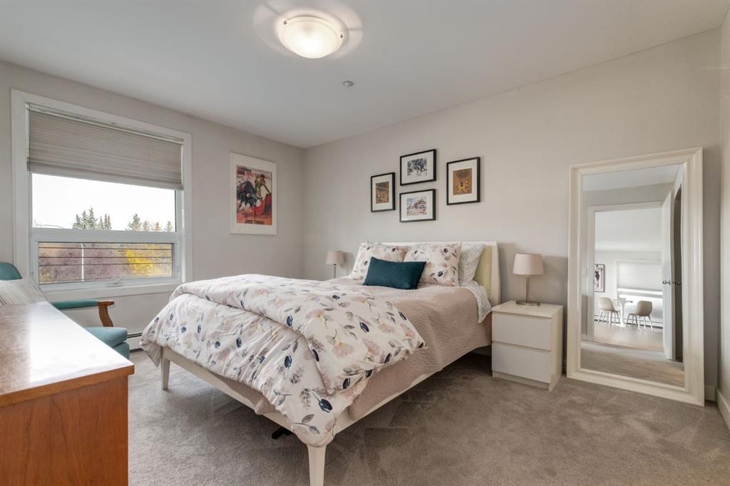 Welcome to The Ellington, a beautiful 2 bedroom, 2 bathroom condo on the 3 floor, perfectly located in the heart of the city. Enjoy the best of urban living with parks, restaurants, shops and scenic bike paths just steps away- all while overlooking a peaceful green space. Step inside to an open-concept living and dining area with large windows that fill the space with natural light. Patio doors lead out to your private balcony from the dining area – the perfect spot for morning coffee or evening relaxation. The kitchen features laminate countertops, stainless steel appliances and kitchen bar. The spacious primary bedroom includes a walk-in closet and full ensuite for your comfort. Additional features include In-suite laundry, heated titled underground parking and extra storage locker. This well maintained condo offers the ideal mix of comfort, style and convenience in a vibrant inner-city location.