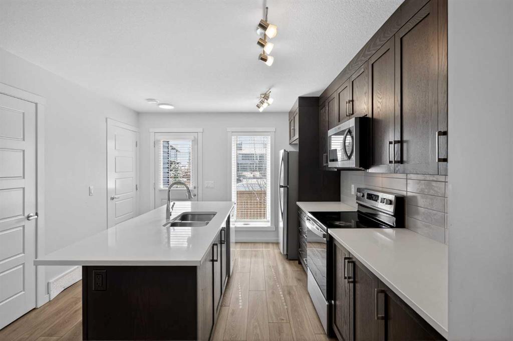 Welcome home to this bright and beautifully maintained two-storey townhome in the highly sought-after and vibrant community of Seton, boasting over 1,268 sq. ft. of smart, open-concept living space that perfectly balances everyday comfort with an unbeatable lifestyle. Step inside and be greeted by gorgeous flooring and an abundance of natural light leading to the thoughtfully designed kitchen featuring a central island with a breakfast bar—ideal for casual dining, meal prep, or entertaining. The kitchen flows seamlessly into the airy living and dining spaces, complemented by a convenient main-floor powder room. Unlike many units in the area, this townhome features a fully fenced backyard that backs directly onto a peaceful small greenspace, providing added privacy and a beautiful view while you host summer BBQs or unwind with an evening drink. Upstairs, the layout truly shines with two generously sized primary suites, each boasting its own private ensuite bathroom, making this dual-master setup fantastic for roommates, guests, or simply enjoying your own dedicated space. You’ll also find smartly located upper-level laundry with a stackable washer and dryer, plus extra linen storage. Enjoy the perks of low-maintenance condo living with professional management and one assigned parking stall. Seton’s world-class amenities are right at your doorstep, as you are just minutes from the South Health Campus, fantastic shopping and dining, and the massive Brookfield Residential YMCA, plus “The Block” nearby offering pickleball, splash parks, and skating, making this a true four-season playground right in your neighbourhood. This is modern, turn-key living in one of Calgary’s most dynamic communities, so don’t miss out—book your private showing today!