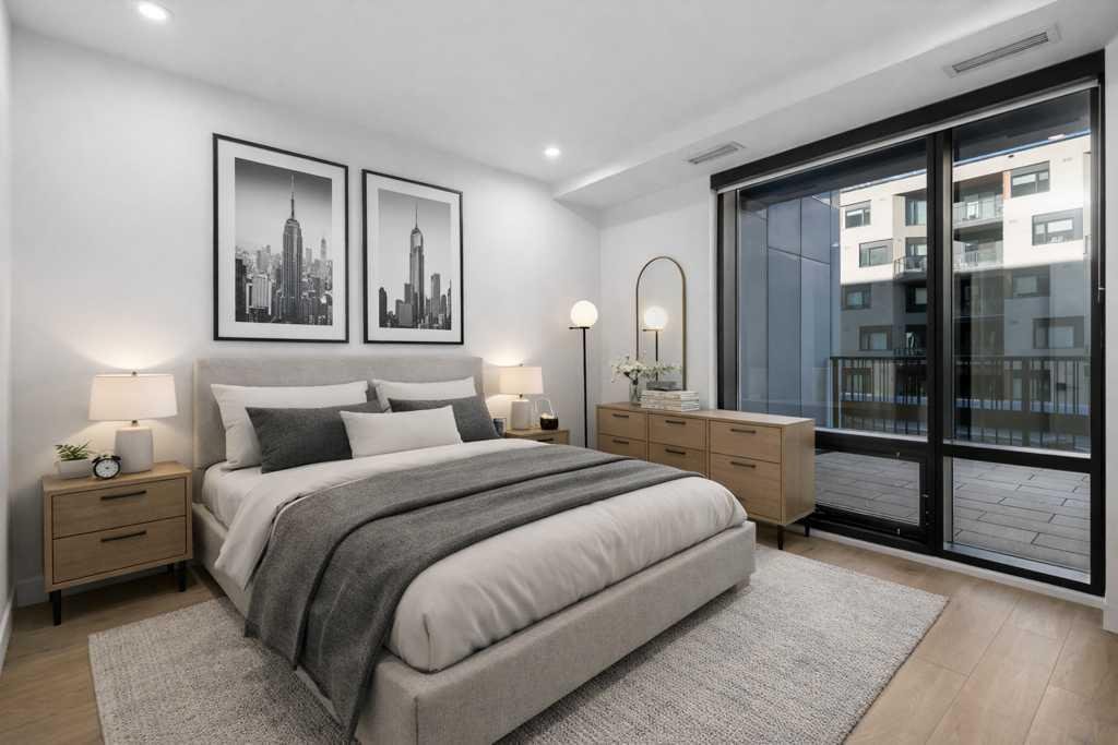 Experience sophisticated urban living at West Plaza. Brand new and never occupied, this beautifully appointed 2 bedroom, 2 bathroom condo showcases interiors curated by Truman’s award-winning design team. What truly sets this home apart is the huge balcony that lives like a private patio—an incredible outdoor extension of your living space, perfect for entertaining, summer BBQs, or creating your own outdoor lounge. Inside, comfort meets style with air conditioning, a smart Wi-Fi thermostat, and roller-shade window coverings throughout. The open-concept layout features 9-foot ceilings, abundant natural light, and custom contemporary LED fixtures that keep the space bright and inviting. You’ll also appreciate the dedicated office/flex area, ideal for working from home, a reading nook, or extra storage and organization. The kitchen is a showpiece, offering floor-to-ceiling ergonomic cabinetry, polished quartz countertops, deep drawers, a full-height contemporary backsplash, and a gas range—built for both daily living and hosting. The primary suite is a true retreat with a spa-inspired ensuite featuring quartz countertops, a sleek glass-enclosed shower, and environmentally conscious fixtures for a clean, elevated finish. The main 4-piece bathroom is finished with polished quartz countertops, a modern square-edge tub, and sleek contemporary fixtures for a clean, spa-inspired feel. Additional highlights include in-suite laundry, titled underground parking, and a dedicated storage locker. Residents also enjoy premium amenities including a fully equipped fitness centre, an inviting owners’ lounge, and a 5-star hotel-style lobby with designer-inspired common spaces. All of this, just steps to boutique shopping, some of Calgary’s best dining and cafés, and the greenery of Radio Park. ** Some images have been virtually/digitally staged to illustrate possible furnishings and layout.