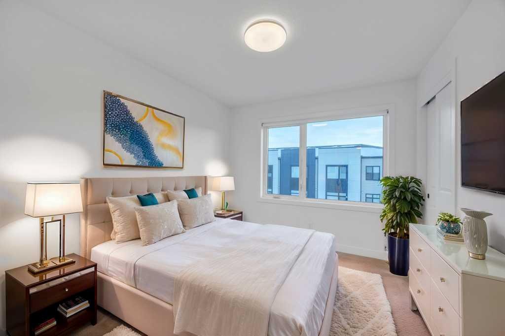 ?Welcome to Unit 306 a rare find featuring 4 bedrooms, 3.5 bathrooms, with Low condo fee at SouthTowns in East Hills Crossing, nestled in the highly accessible community of Belvedere. This stunning townhome offers breathtaking views of Downtown Calgary and the mountains from its expansive second-floor balcony. Boasting 4 spacious bedrooms, 3.5 bathrooms, and a single tendem-car garage to accomodate 2 cars, this home is designed for comfort and convenience. At the entrance on the lower level, there is a full bedroom and a bathroom, perfect to be used as a “Guest bedroom”, an office area for parents who like to stay at the main floor. Main level offers a large kitchen, a huge living area with a lot of windows, a separate dining area, a 2pc bathroom and a balcony for your summer barbeque parties. Upstairs, the primary bedroom offers a 4-piece ensuite and a walk-in closet. Two additional bedrooms, a 4-piece bathroom, a laundry area, and a large linen closet complete the upper level. Situated close to a variety of amenities, this home is just steps from a playground, basketball court, restaurants, Costco, Walmart, and numerous other retailers.