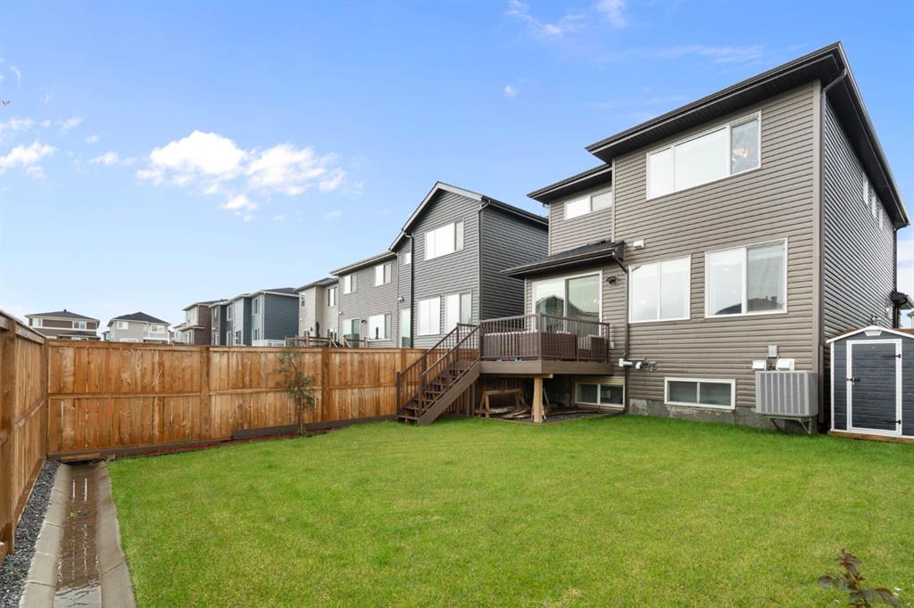 Welcome to this beautifully appointed 2-storey home with a legal basement suite in the vibrant community of Cornerstone perfect for families, multi-generational living, or those looking for an income opportunity. Offering over 3,300 sq ft of living space, this home combines thoughtful design, stylish upgrades, and energy-efficient features for a truly exceptional lifestyle. From the moment you step inside, you’re greeted by a bright, open main level with soaring ceilings and large windows that fill the space with natural light. The executive kitchen is the heart of the home, showcasing a massive upgraded quartz island, premium cabinetry, stainless steel appliances, and a walk-through pantry. Whether you’re hosting family dinners or casual get-togethers, this kitchen is designed for connection. The main floor also features a bedroom with full bath, ideal for guests or extended family, plus easy access to the maintenance-free composite deck perfect for summer BBQs and quiet evenings outdoors. Upstairs, you’ll find three spacious bedrooms, including a serene primary retreat with a walk-in closet and spa-inspired ensuite. A generous den offers the perfect spot for movie nights or playtime, while the laundry room adds convenience to daily life. The legal basement suite is a standout feature, complete with its own private entrance, open kitchen and living area, 2 bedrooms, full bath, and separate laundry, ideal for generating rental income or offering comfortable space for extended family. This home is loaded with builder-installed upgrades, including centralized air conditioning, triple-pane windows with low-e and argon fill, a 220-volt/30-amp electric vehicle charging outlet in the garage, an HRV (heat recovery ventilation) system, and a UV-C ultraviolet air purification system installed in the furnace. Additional features like builder-installed solar panels, a Navien tankless water heater, and a centralized water softener help you save on utilities while enjoying modern comfort. Located in the family-friendly community of Cornerstone, you’re close to parks, pathways, schools, shopping, and have easy access to major routes, making every day effortless and enjoyable. You don’t want to miss your chance to see this one!