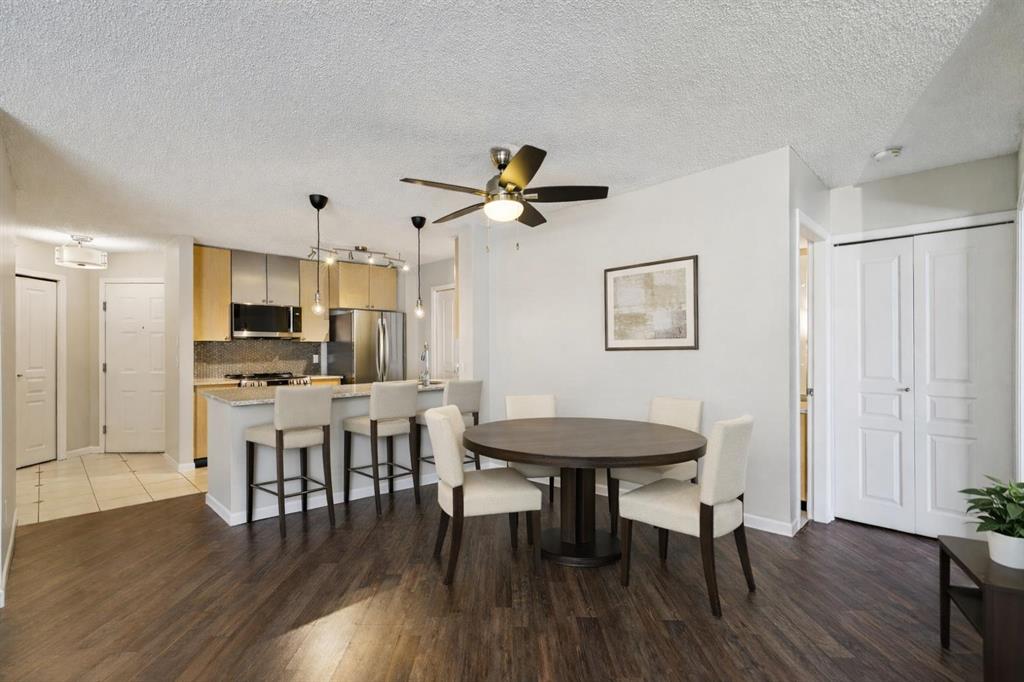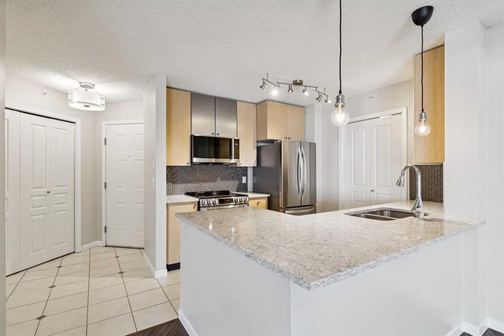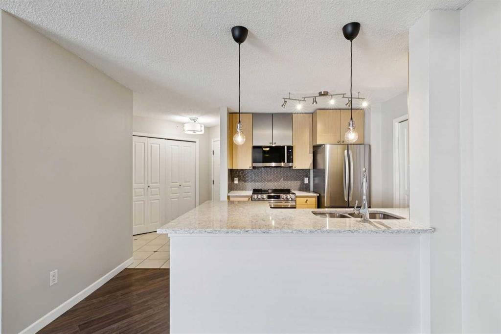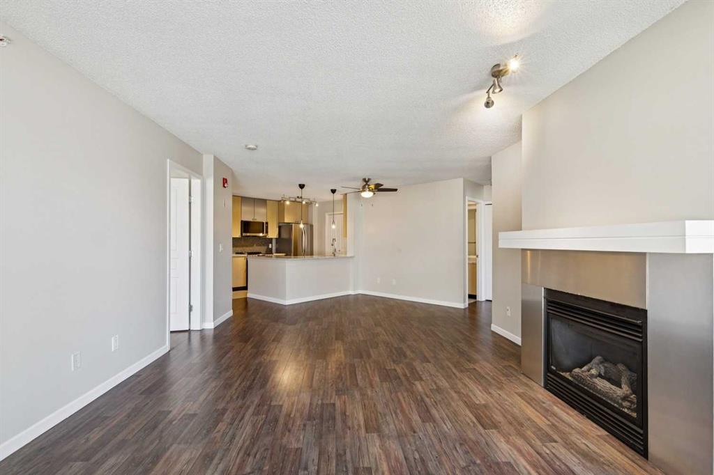 BRIGHT, MOVE-IN READY, TOP FLOOR, 2 BEDROOM CONDO ACROSS FROM MOUNT ROYAL UNIVERSITY! beautifully updated top, corner unit offers an open-concept floorplan filled with natural light, creating a warm and inviting space perfect for both everyday living and entertaining. The kitchen is a true standout, featuring brand new, never-used LG appliances, sleek quartz countertops, and ample cabinetry, ideal for cooking and hosting. Fresh paint, quartz countertops in both bathrooms, and durable laminate flooring throughout give the home a clean, modern feel. The layout includes 2 spacious bedrooms and 2 full bathrooms, providing flexibility for roommates, guests, or a home office setup. The primary suite offers comfort and privacy with its own ensuite, while the second bedroom is perfectly positioned near the additional full bath. Enjoy cozy evenings by the gas fireplace in the living room, or step out onto the covered balcony for fresh air year-round. Added conveniences include in-suite laundry, titled underground parking, and an assigned storage locker. Located directly across from Mount Royal University, this home is perfect for students, professionals, or investors. The well-maintained building also offers great amenities including a social room, bicycle storage and fitness centre, adding even more value to this exceptional opportunity.