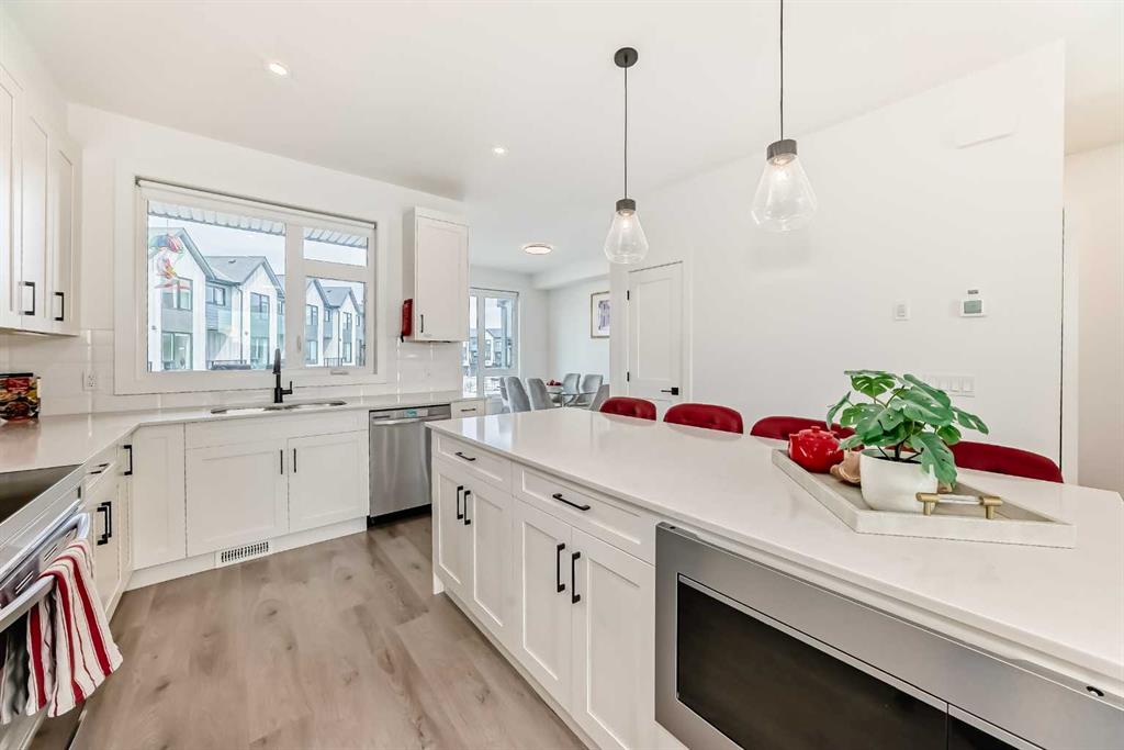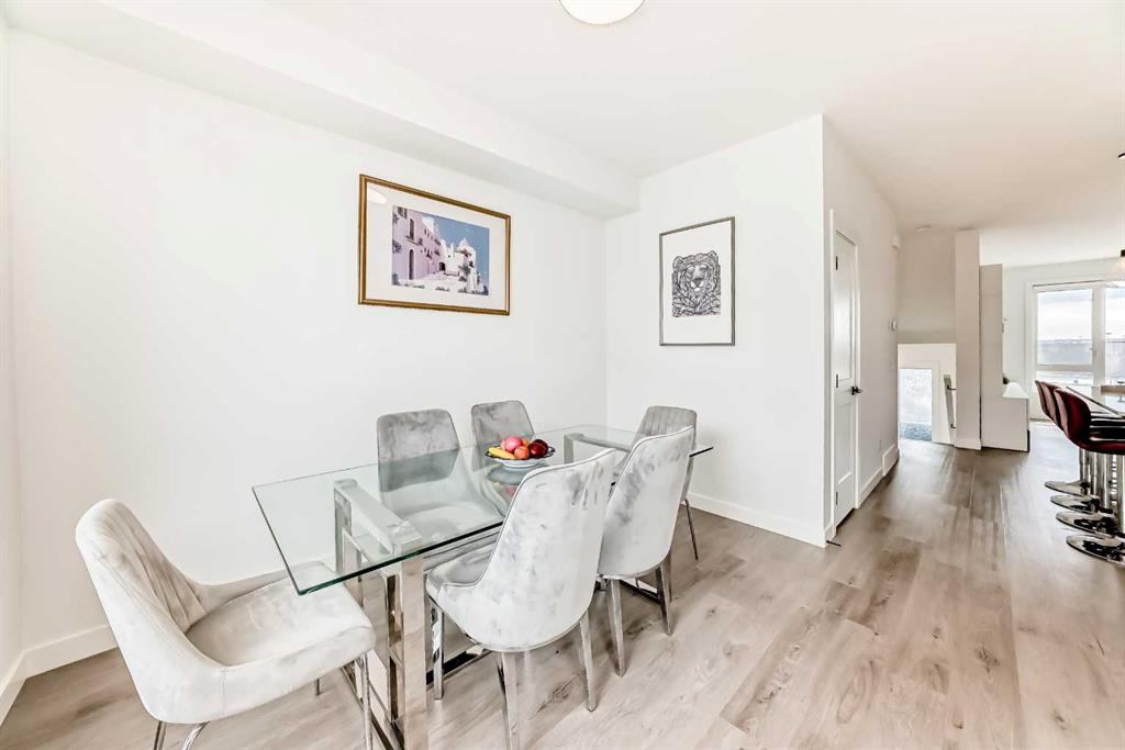 From the moment you step inside, you’ll appreciate the thoughtful design and luxury finishes throughout. The main floor boasts an incredibly functional and inviting layout, highlighted by a rare, dedicated dining area—perfect for hosting family dinners or entertaining guests, a feature seldom found in townhome living. The open-concept design flows seamlessly into the bright and stylish kitchen and living space, creating a warm and welcoming atmosphere.