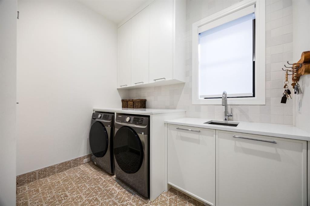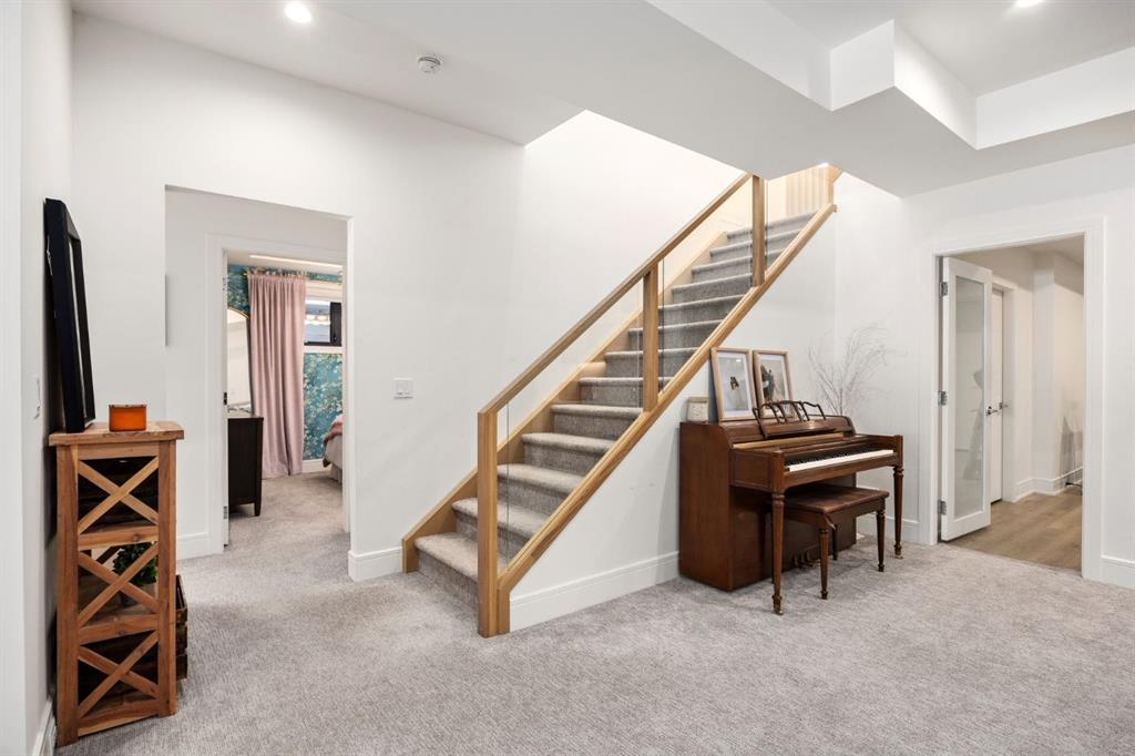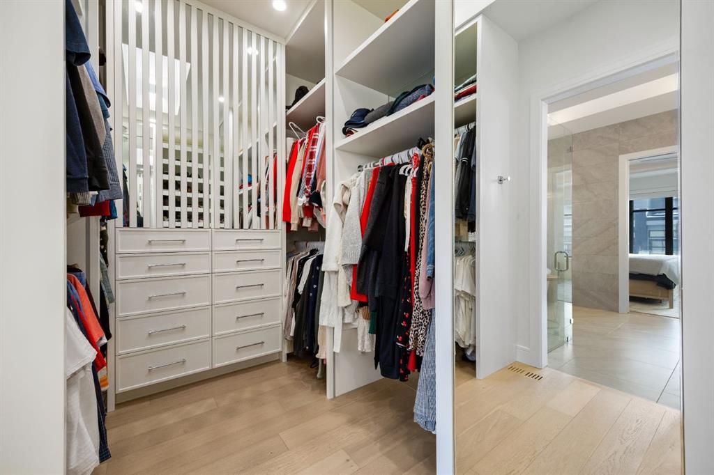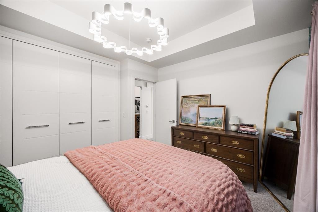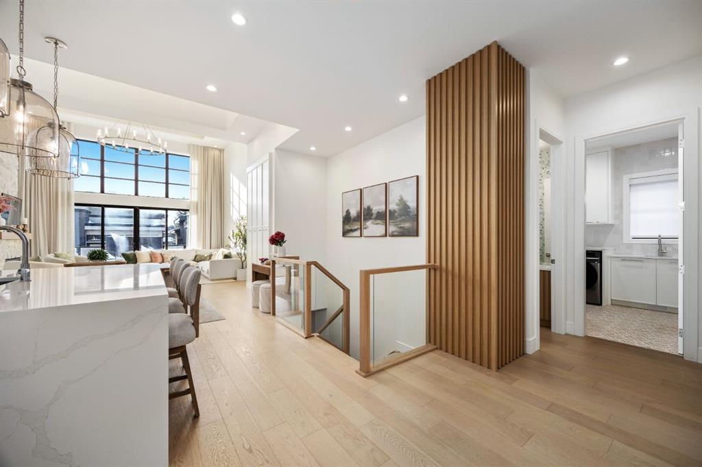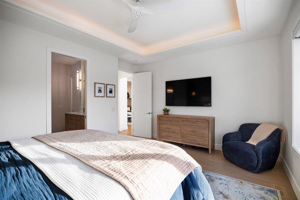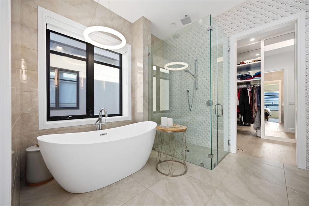 Open House Saturday March 14th 12-2pm. Introducing a rare offering in the sold out luxury bungalow community of Elveden Court on Calgary’s coveted west side, made up of only 26 units. This refined residence represents the pinnacle of lock-and-leave living, designed for discerning homeowners who appreciate exquisite craftsmanship paired with the ease of a low-maintenance, lock and leave lifestyle. This unit is elegantly finished with tile, flooring, millwork, wallpaper and stone upgrades from an already elevated build quality to create a serene, warm and inviting atmosphere. Builder owned, rest assured, every detail has been carefully executed! The open-concept main level is warm and inviting, with light oak hardwood flooring, soaring ceilings, ample skylights and expansive windows that flood the entire living space with natural light. A striking hand built stone fireplace anchors the great room under 16’ ceilings, while large doors open to a west facing patio with a built-in gas fireplace, perfect for indoor-outdoor entertaining. The kitchen is a true showpiece, appointed with a premium Wolf & Sub-Zero appliance package. Custom cabinetry including an enhanced walk up pantry design is complemented by an upgraded quartz backsplash and a waterfall island creating both visual impact and exceptional functionality. The main level primary suite offers a tranquil retreat, featuring a spacious bedroom, walk-in dressing room, and a spa-inspired ensuite with in-floor heat, upgraded tile selections, dual vanities, a freestanding soaker tub, and an oversized 10mm glass shower. Custom, elegantly exciting wallpaper feature walls adorn many of the tranquil spaces throughout the home. A beautifully appointed den with custom millwork, a powder room and a well appointed laundry area complete the main floor. The fully developed walk-up level with 9’ ceilings is designed for entertaining and lifestyle flexibility. A spacious recreation area is highlighted by an upgraded gas fireplace and a wet bar. Two additional bedrooms with custom closets and a full three-piece bath provide ideal accommodation for guests or older children. This lower level also has a thoughtfully upgraded home gym, and additional storage in the mechanical room. The oversized double attached garage features a heated slab, epoxy flooring, transom windows for natural light, and a custom storage mezzanine. Built to an exceptional standard, the home was constructed with full Insulated Concrete Forms (ICF) to the soffit line, including the party wall, delivering superior thermal efficiency, sound attenuation, and long-term durability. Triple-glazed windows and skylights enhance comfort and natural light further exemplifying the quality of construction. Minutes to Aspen Landing, Westside Recreation Centre, Stoney Trail, and the Rocky Mountains, this villa community offers an un offers an unparalleled blend of privacy, quality, and convenience.