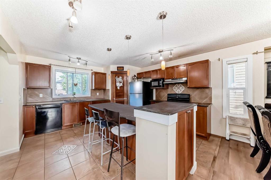 Welcome to this stunning detached house in Saddlebrook, boasting over 2,300 square feet of living space. The property features 3 bedrooms and 2.5 bathrooms upstairs, as well as a 2 bedroom illegal suite in basement. The main floor is designed for comfort and entertainment with a spacious living area with a cozy fireplace. The adjacent kitchen is equipped with ample storage space, a huge island and a convenient pantry. The kitchen flows seamlessly into a spacious dining area, illuminated by a beautiful chandelier. Beside the kitchen is a door leading to the backyard and a large closet serves as a practical mudroom. The upper floor is home to three generously sized bedrooms, each boasting large windows that flood the spaces with natural light. The master bedroom is complete with a 4-piece ensuite bathroom and a spacious walk-in closet. The two additional bedrooms also feature roomy walk-in closets and share a full bathroom. A convenient laundry area add to the floor’s functionality. The basement illegal suite is perfect for guests or extended family, offering a spacious living area, large kitchen and two bedrooms with ample closet space. A separate laundry area is conveniently located in the basement. Stepping outside, the expansive landsacped backyard is a haven for outdoor enthusiasts, complete with a patio and a 10×10 storage shed. To add on, the roof has class 4 Nordic shingles (with 30 year warranty) which are designed for impact resistance, designed to withstand hail and high winds. The house has hardie at the front and two sides of the shed which is known for their durability and ability to withstand extreme weather conditions. Located in the desirable community of Saddleridge, this property is just moments away from all the amenities you need. Enjoy easy access to shopping, dining, schools, public transportation and recreational facilities, making this house the perfect choice for those seeking a convenient and comfortable lifestyle.