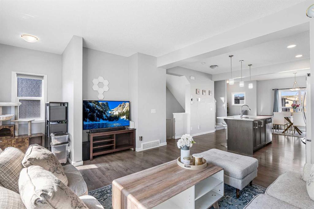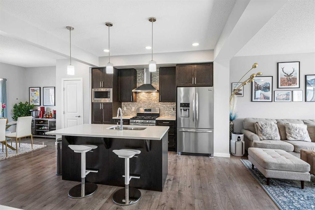 Welcome to this stunning 3-storey semi-detached home offering over 2,000 sq. ft. of beautifully designed living space in the highly desirable community of Walden SE Calgary. This immaculate home features 4 spacious bedrooms, 2.5 bathrooms, and a versatile main floor den—perfect for a home office or gym, and no HOA in the community and no condo fee. The house also has central Air Conditioning. The main floor offers convenient access through the rear-attached double garage, a rear large den/gym room, a room that could be used as extra bedroom or living room, and a generous 4-car extended driveway—ideal for trucks, RVs, or multiple vehicles. The fenced front yard is professionally landscaped, providing excellent curb appeal and a private space to enjoy. The bright and open second level showcases a modern kitchen with stone countertops, a gas stove, upgraded stainless steel appliances, and ample cabinetry. The spacious dining area and living room are filled with natural light, with no homes directly in front, creating open views and a sense of privacy. Step onto the large south-facing balcony, perfect for BBQs and summer gatherings. Upstairs, the primary suite offers a scenic view of the Walden park and pond, complete with a walk-in closet and private 4-piece ensuite. Two additional bedrooms, another full bath, and upper-level laundry complete this floor. Additional upgrades include central air conditioning, pot lighting, and meticulous maintenance throughout. Located just steps away from playgrounds and parks, and within minutes to shopping plazas, schools, restaurants, and major routes, this home combines style, functionality, and an unbeatable location. Don’t miss your chance to own this exceptional 4-bedroom home in Walden—book your private showing today!